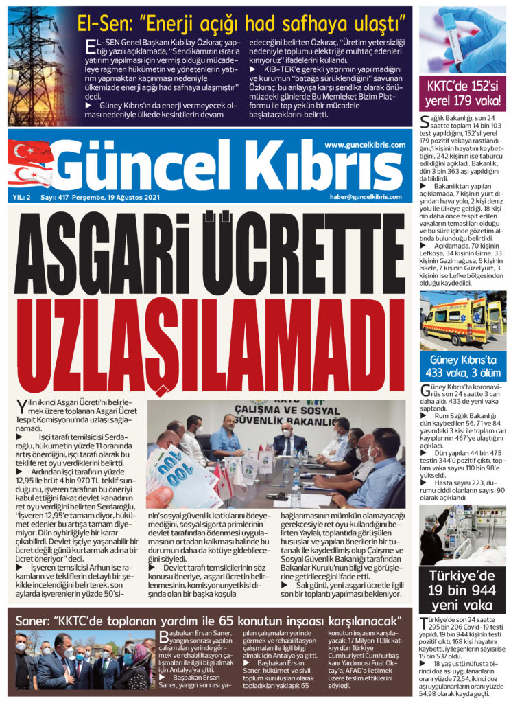 19 Ağustos 2021’de KKTC’de yayınlanan gazete manşetleri