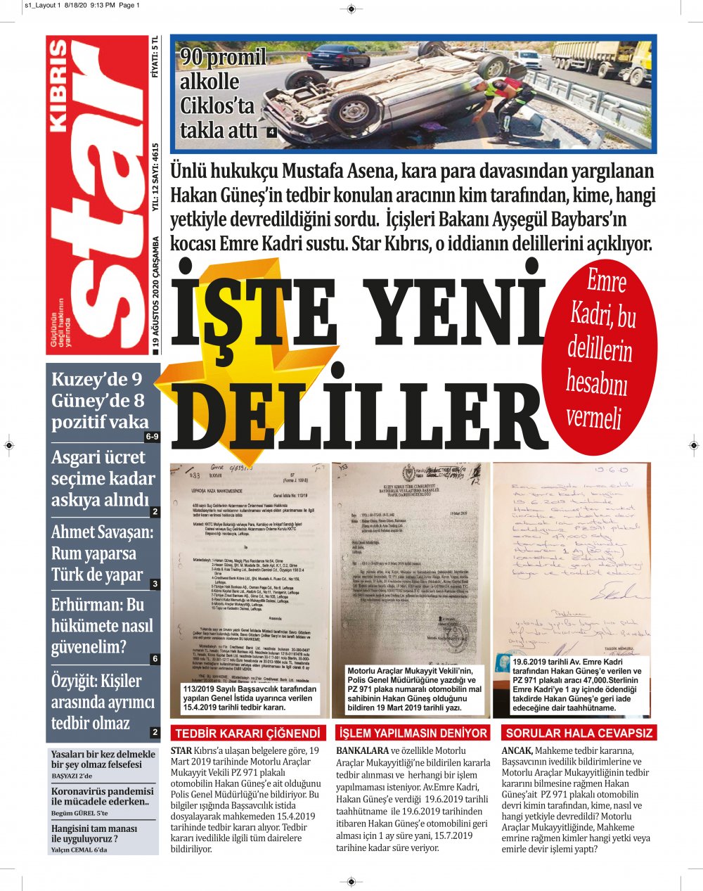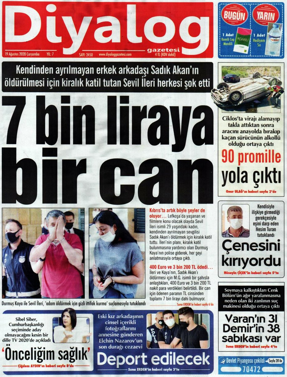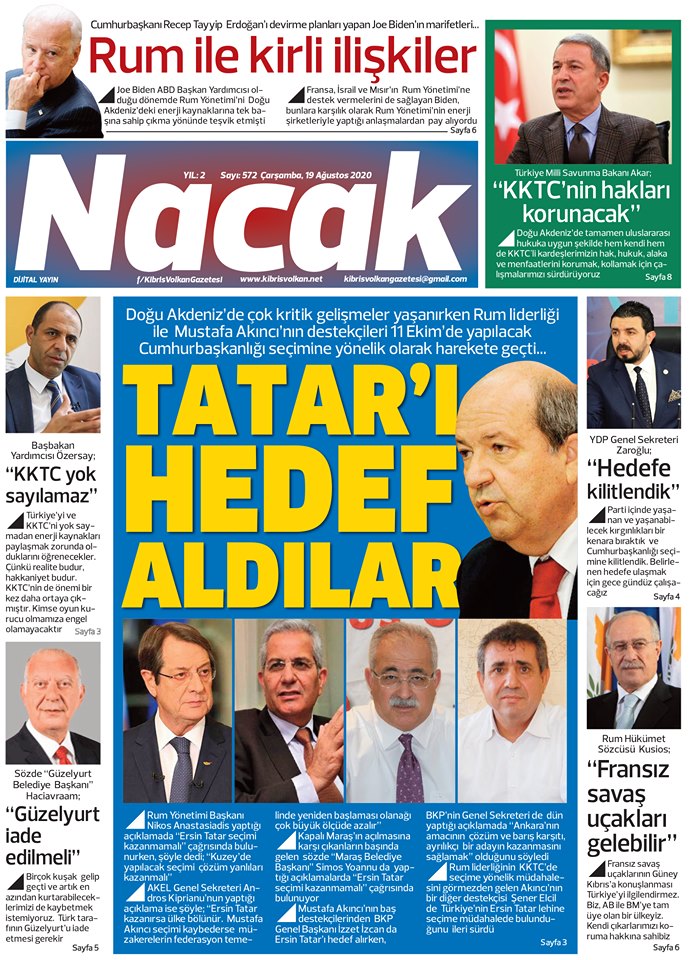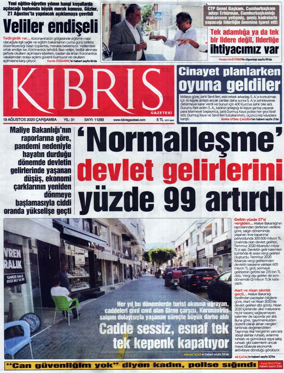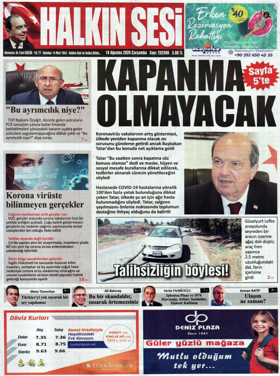 19 Ağustos 2020 tarihinde KKTC yayınlanan gazete manşetleri