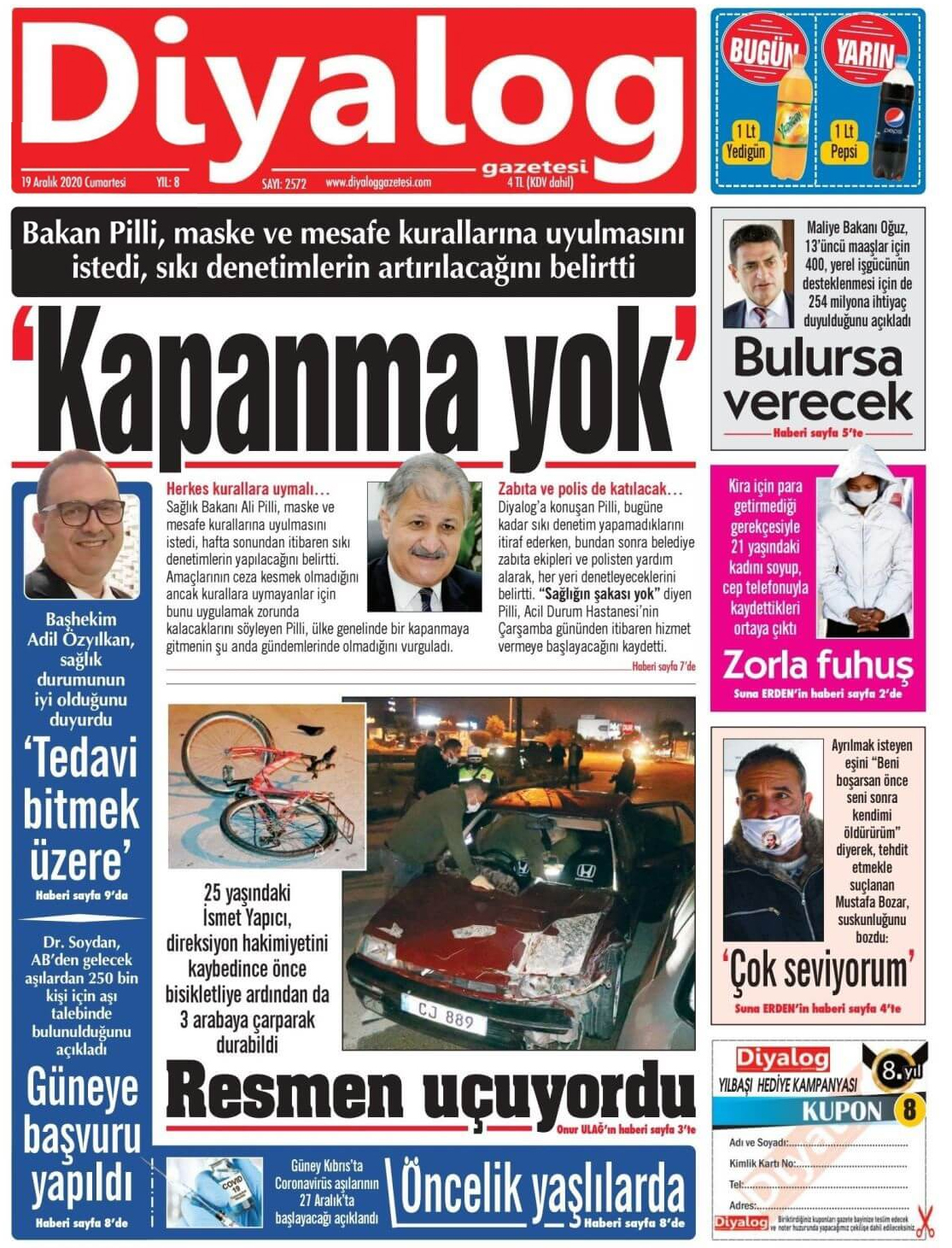 19 Aralık 2020 tarihinde KKTC’de yayınlanan gazete manşetleri