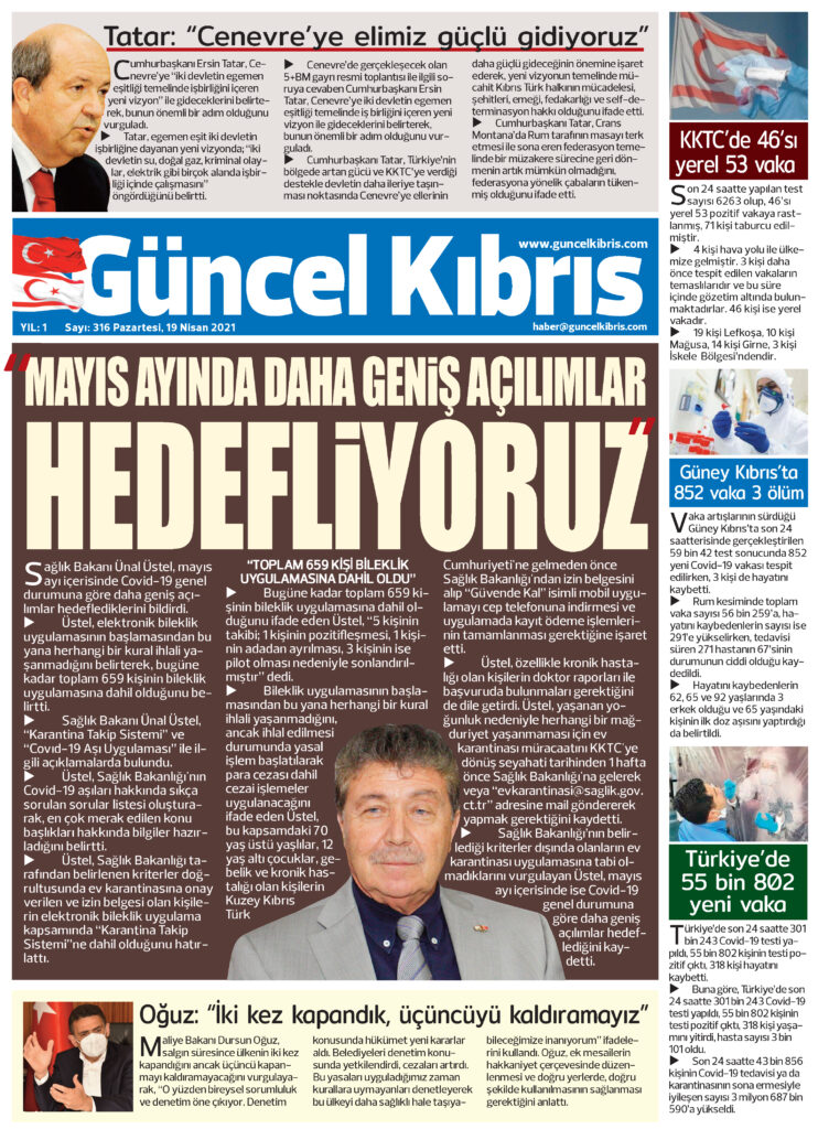 19 Nisan 2021’de KKTC’de yayınlanan gazete manşetleri