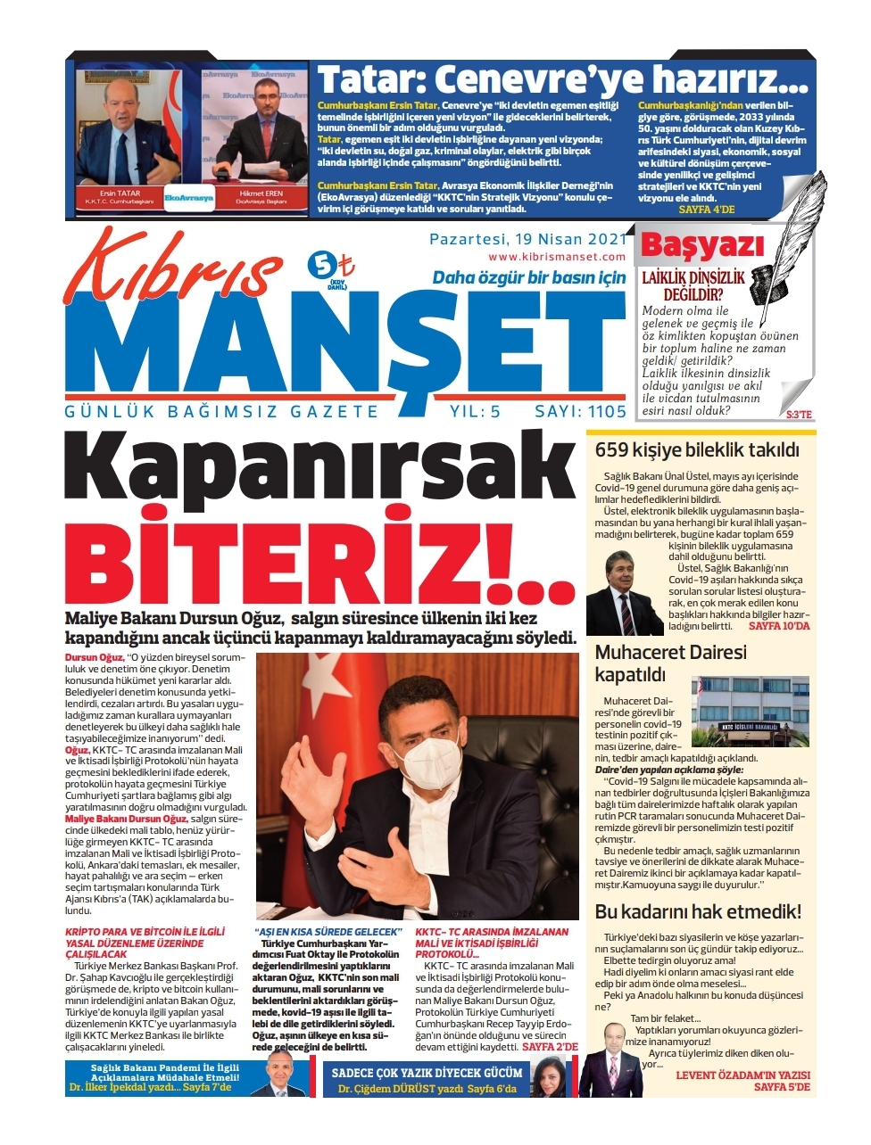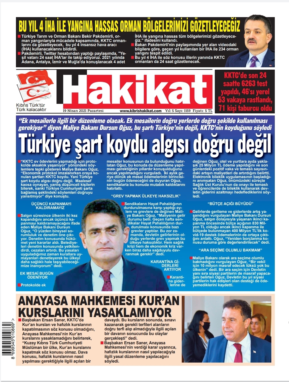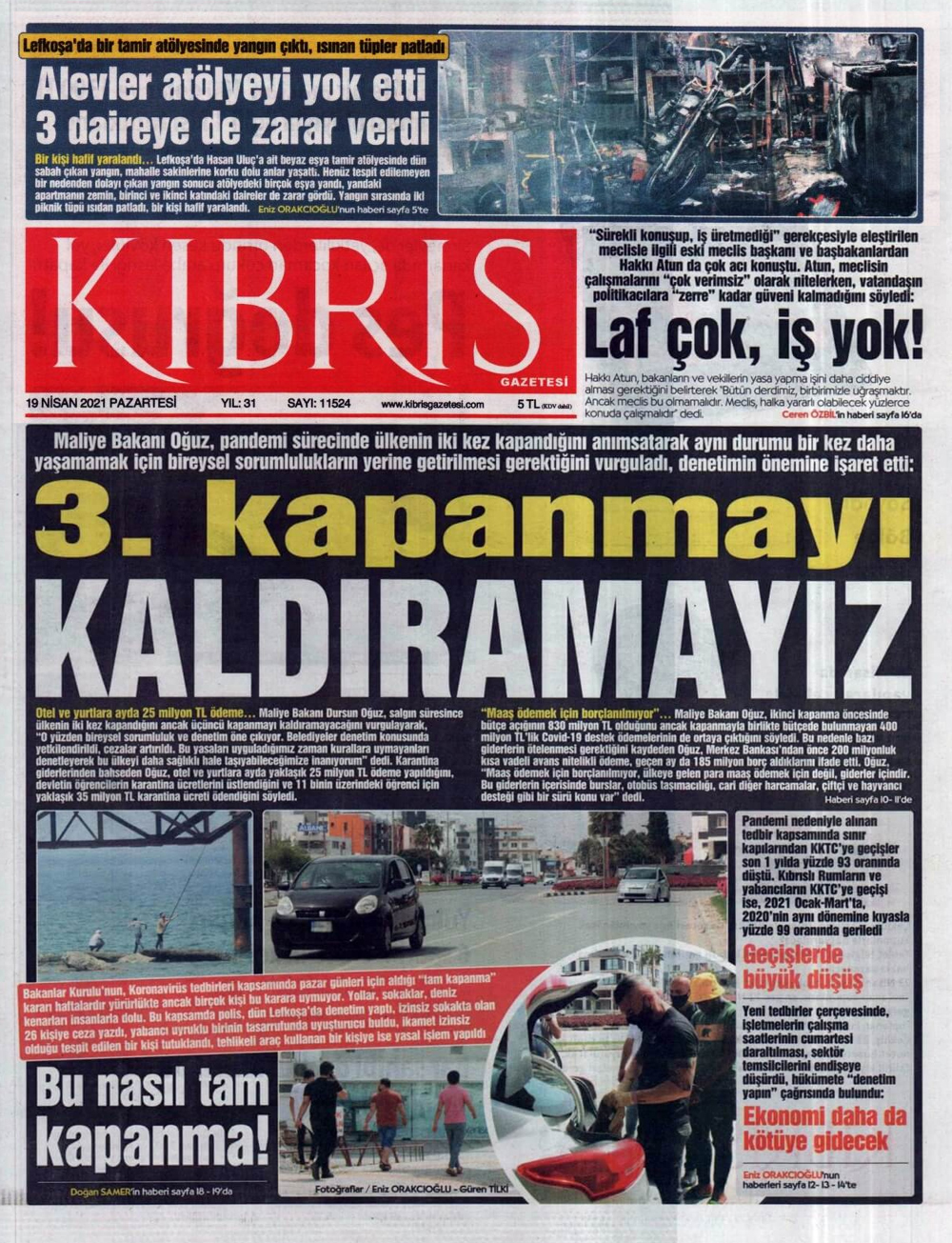 19 Nisan 2021’de KKTC’de yayınlanan gazete manşetleri