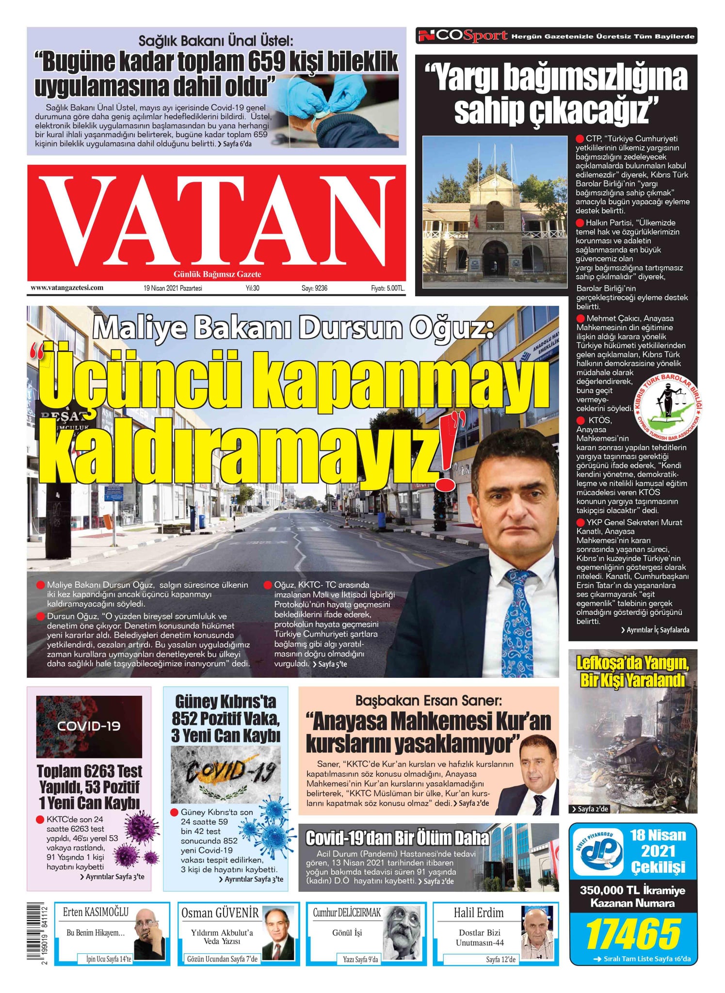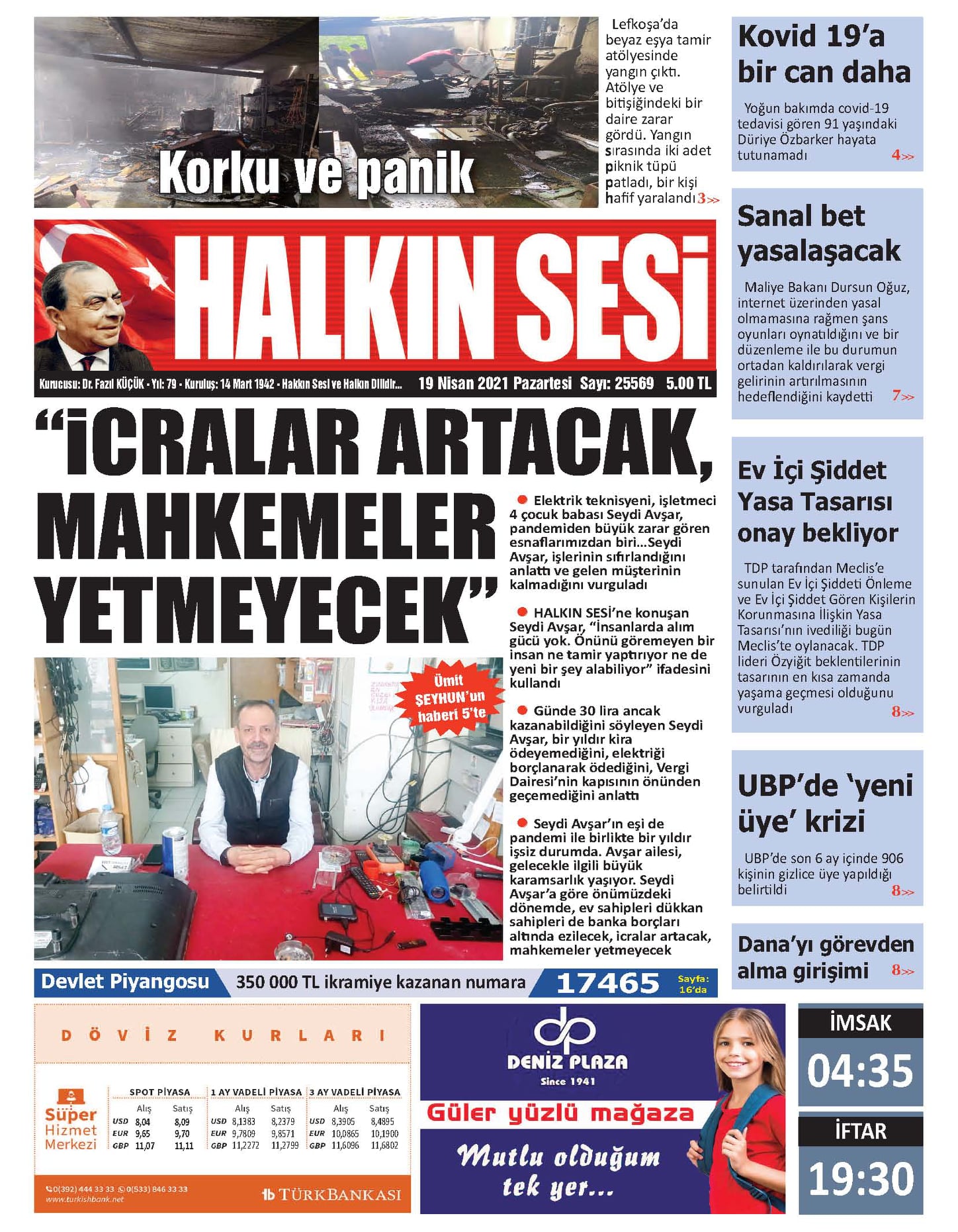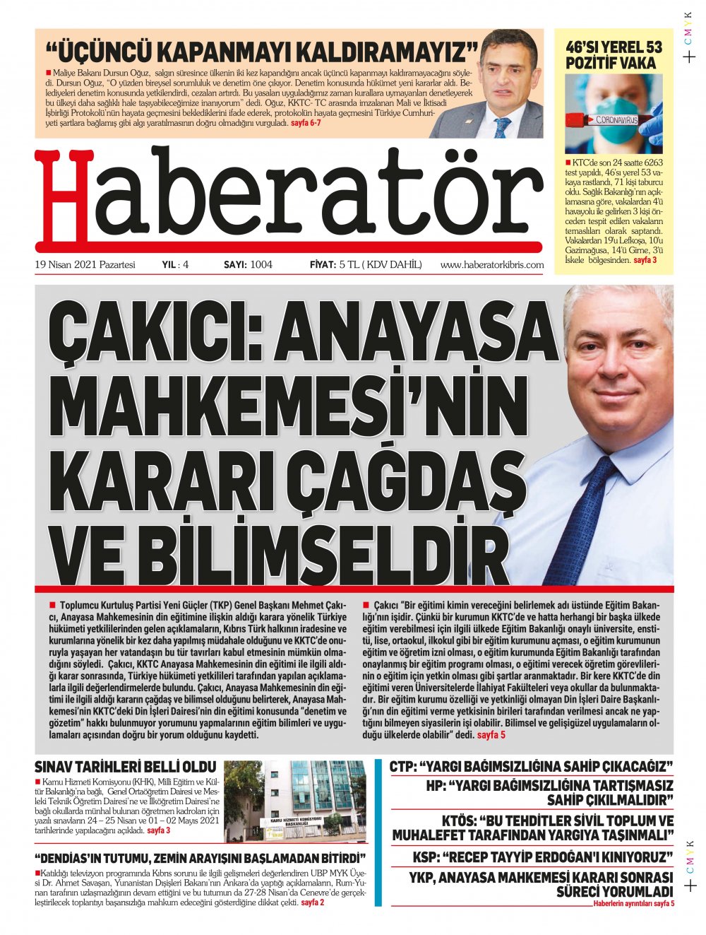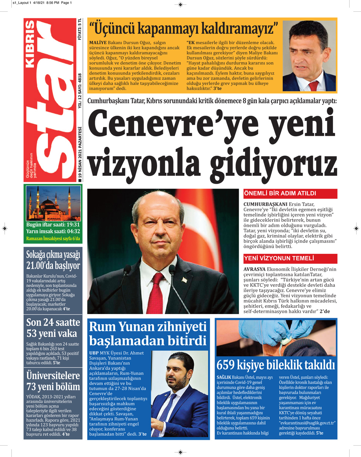 19 Nisan 2021’de KKTC’de yayınlanan gazete manşetleri