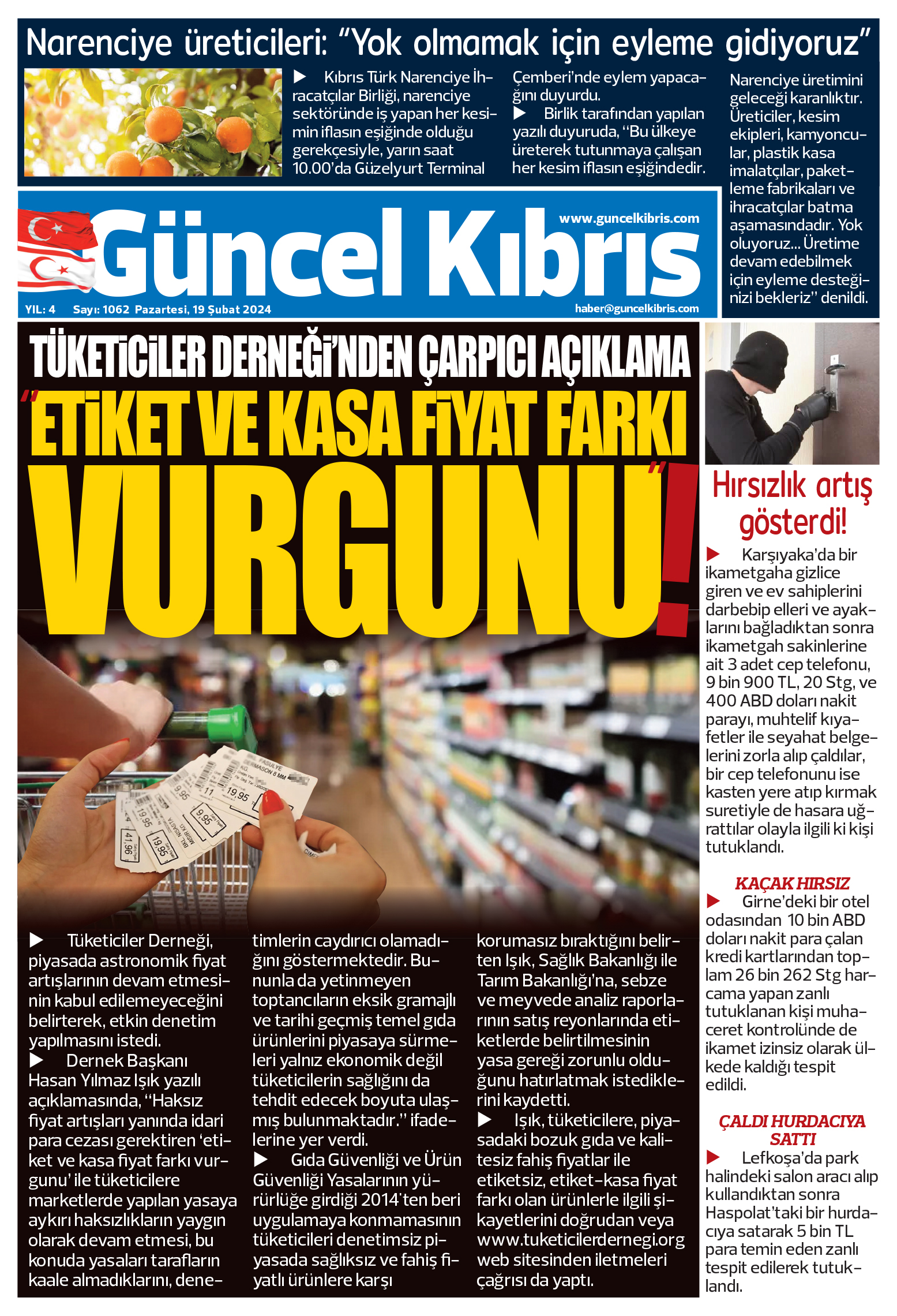 19 Şubat 2024’te KKTC’de yayınlanan gazete manşetleri