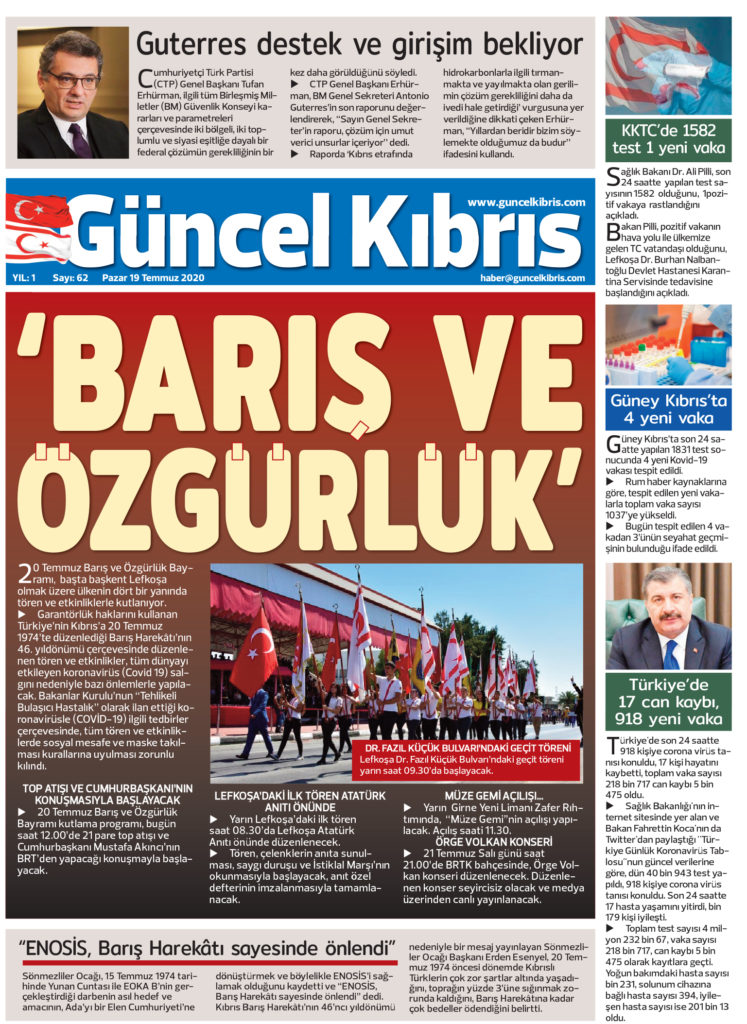 19 Temmuz 2020 tarihinde KKTC yayınlanan gazete manşetleri