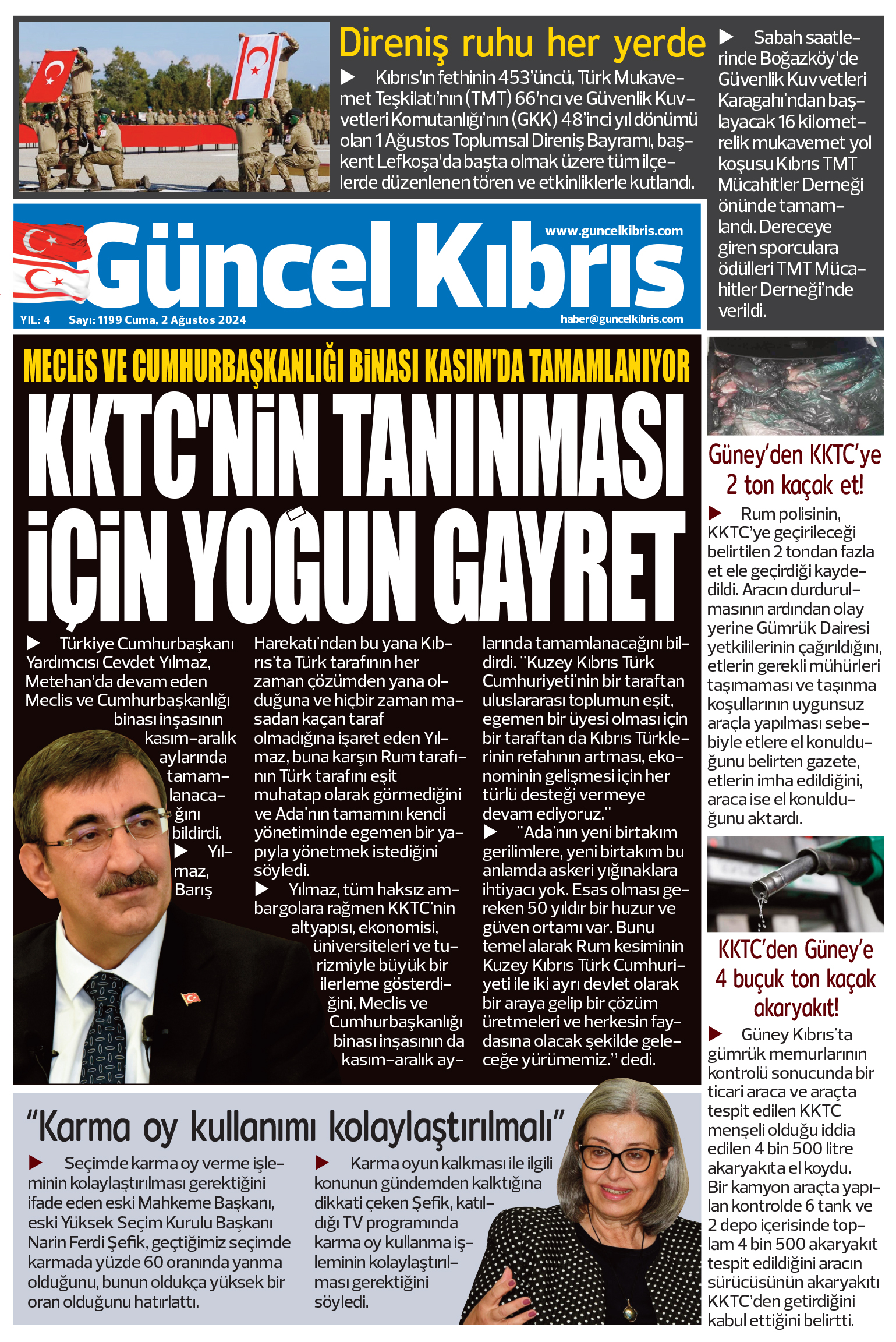 2 Ağustos 2024’te KKTC’de yayınlanan gazete manşetleri