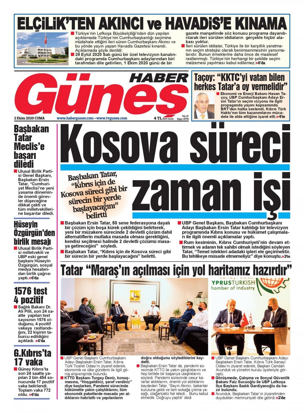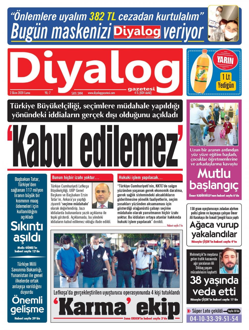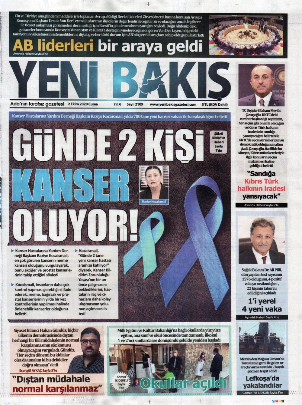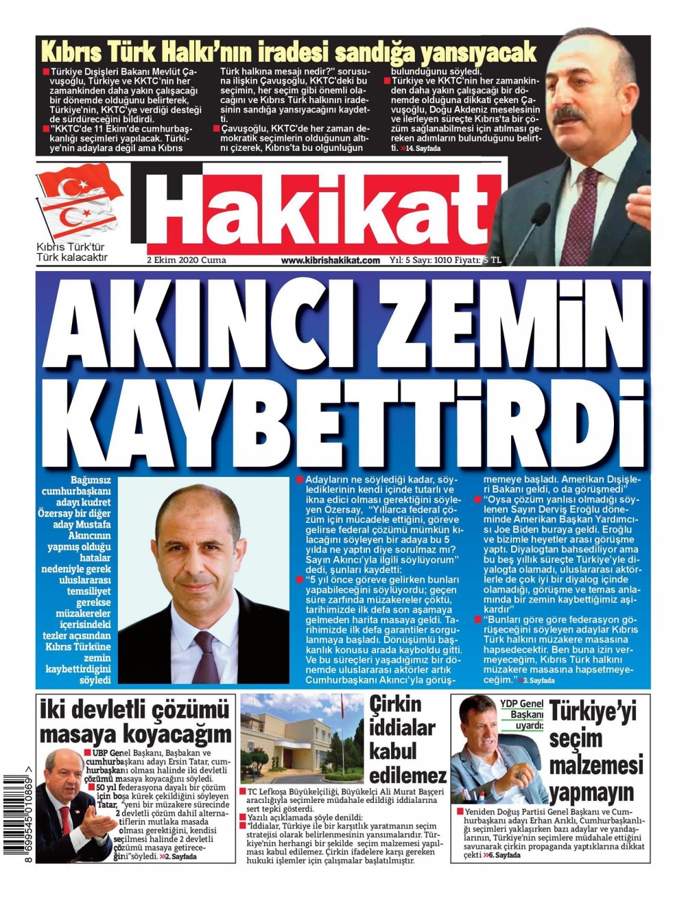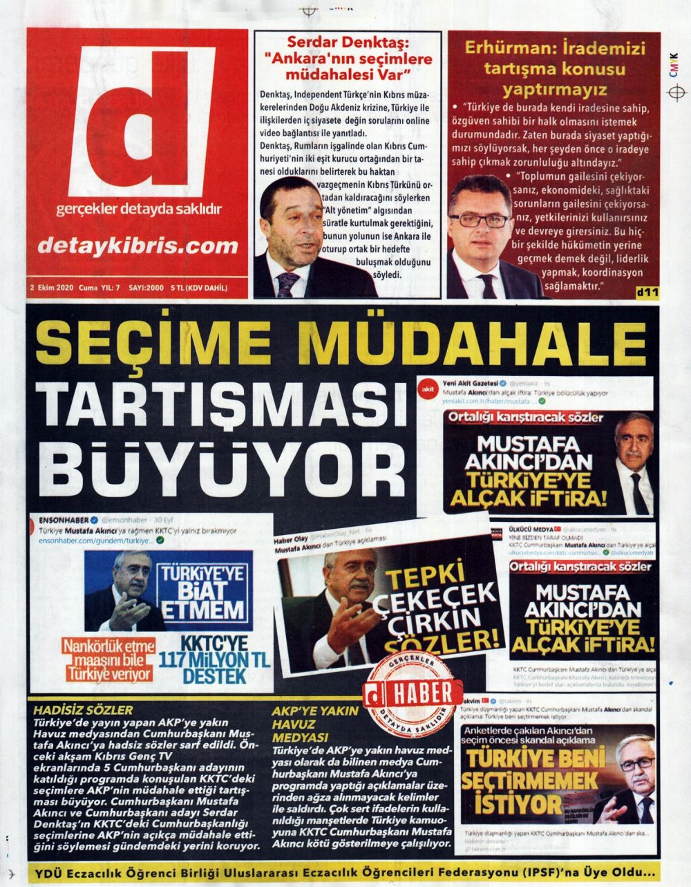 2 Ekim 2020 tarihinde KKTC’de yayınlanan gazete manşetleri