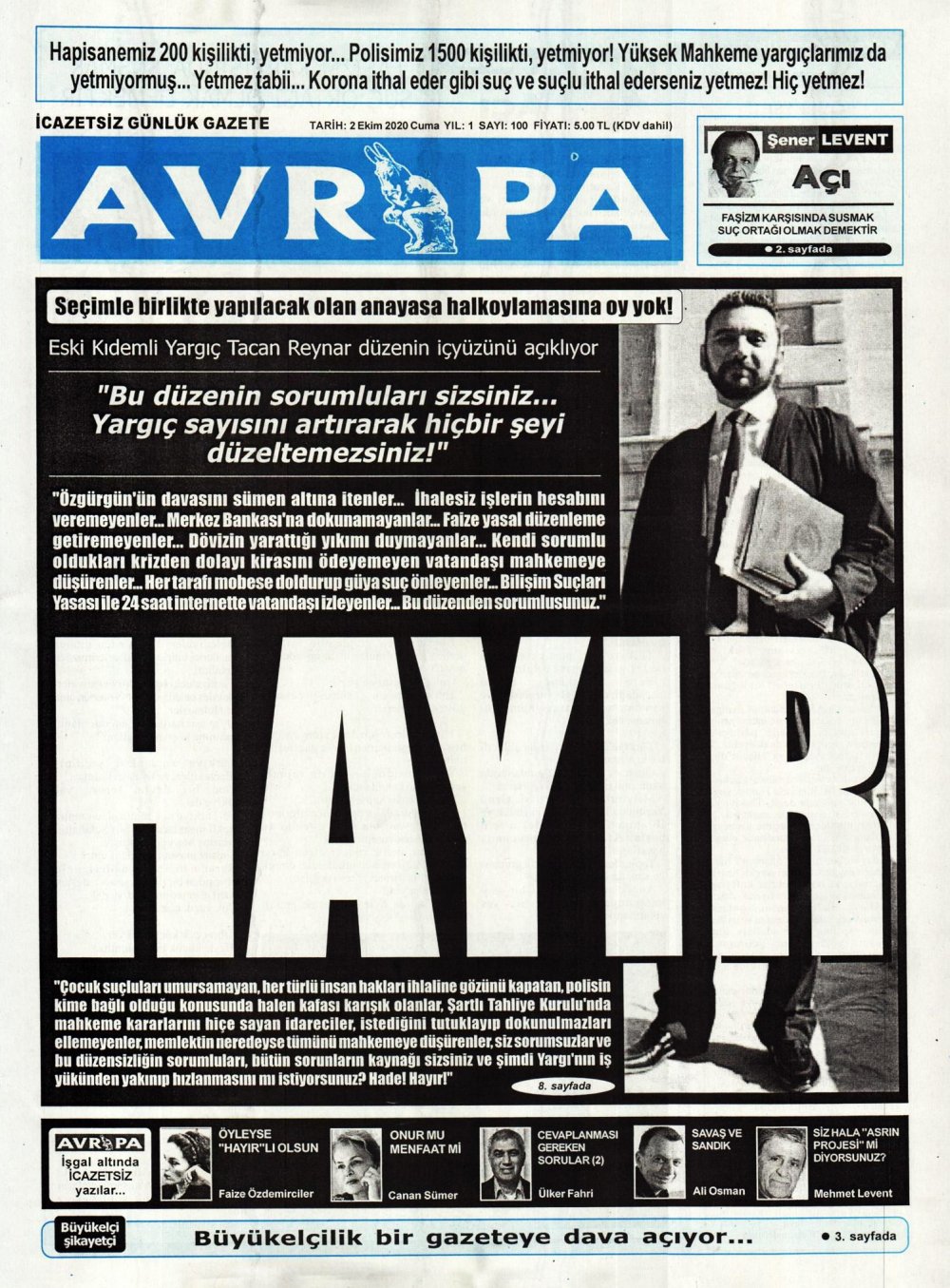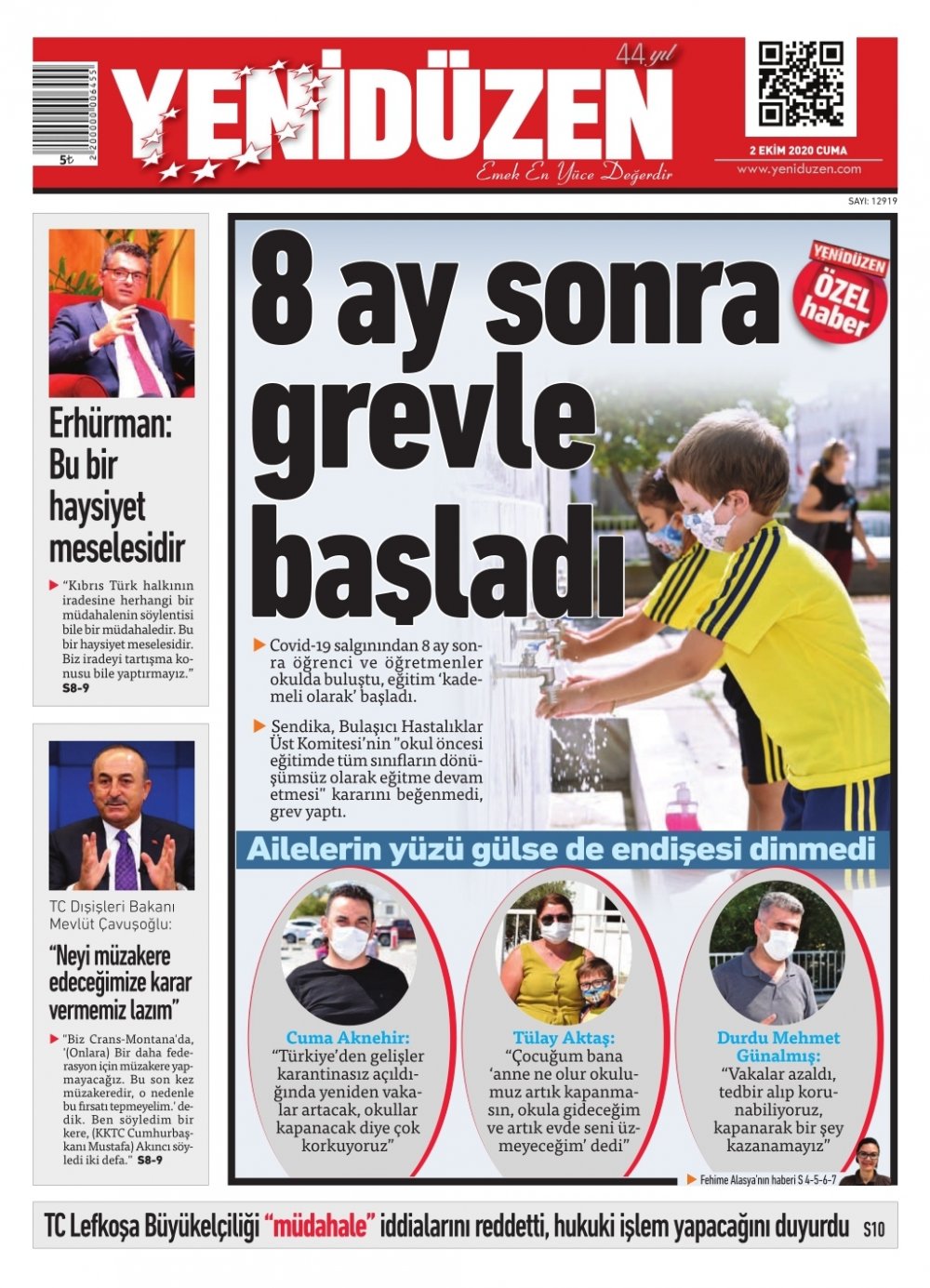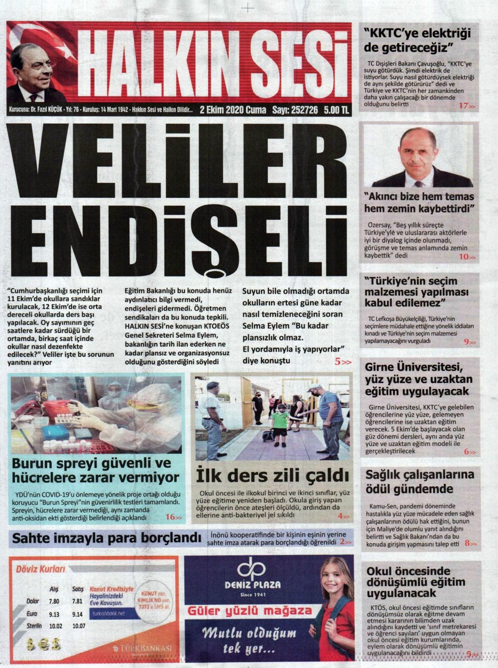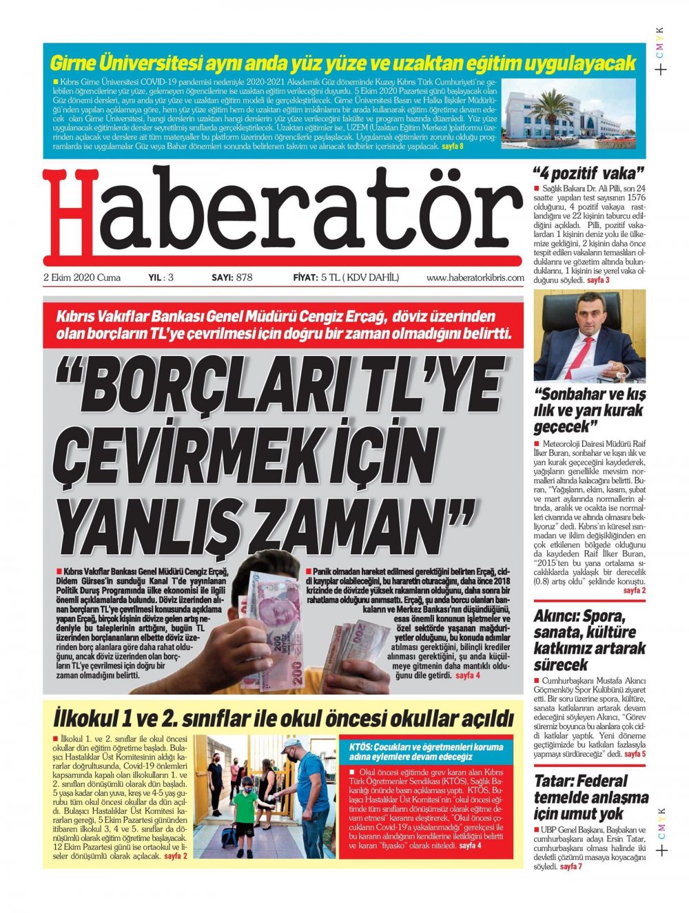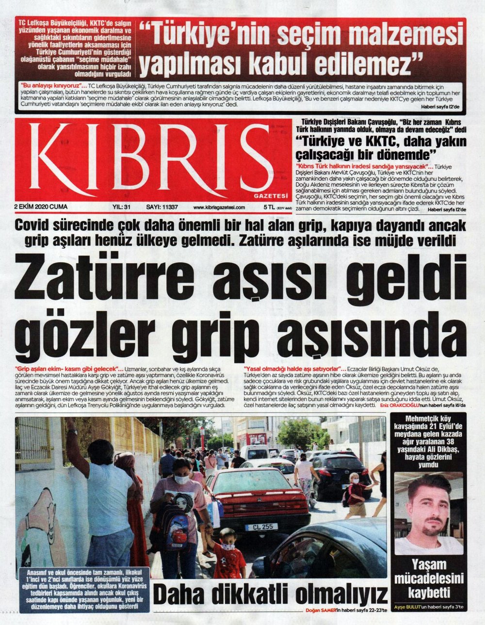 2 Ekim 2020 tarihinde KKTC’de yayınlanan gazete manşetleri
