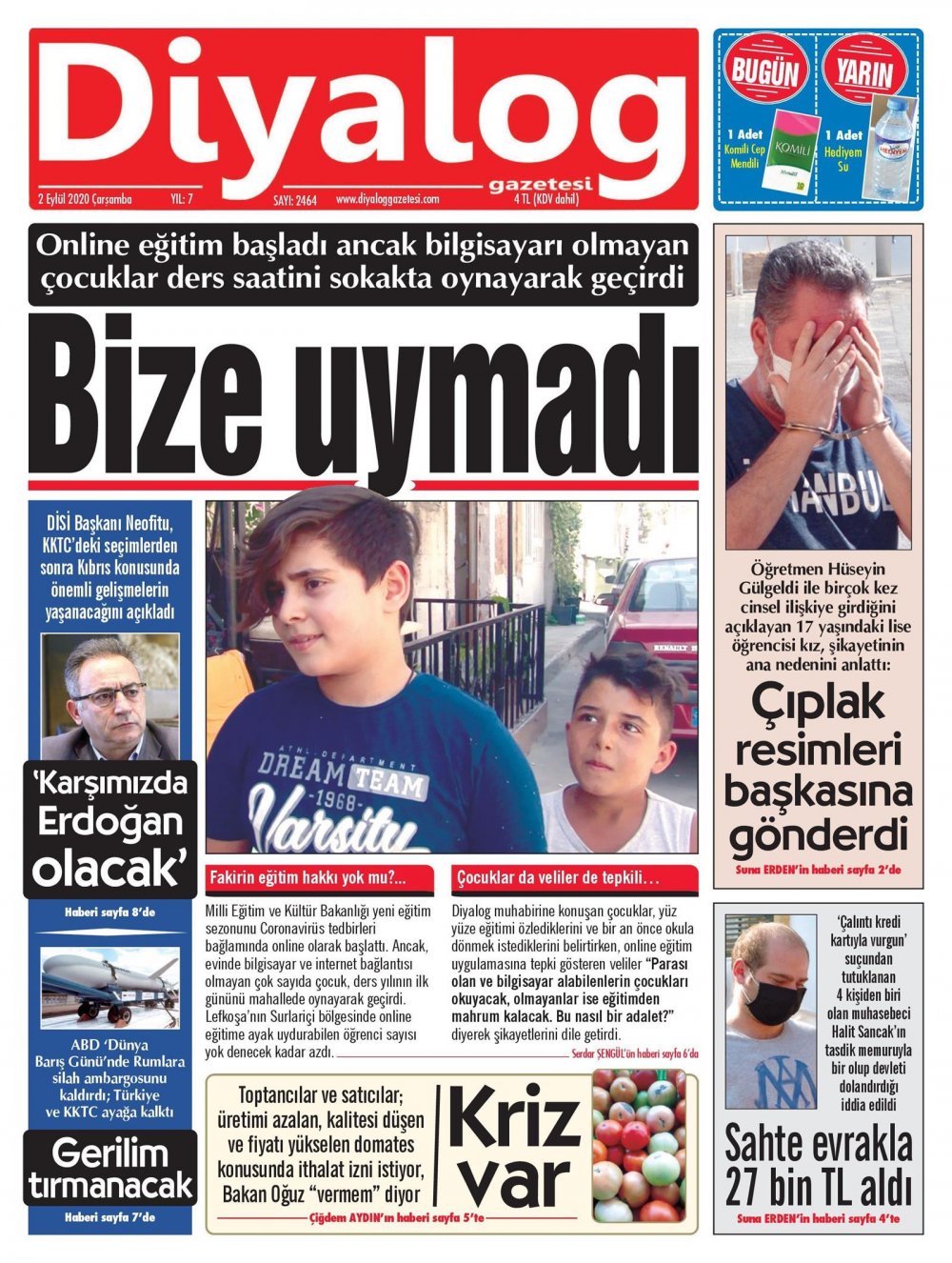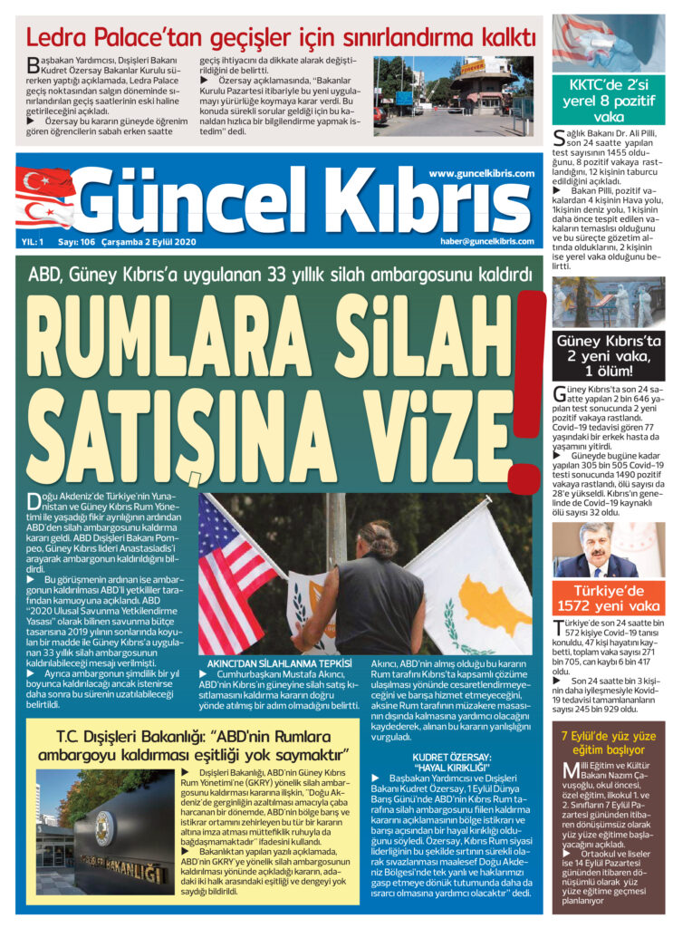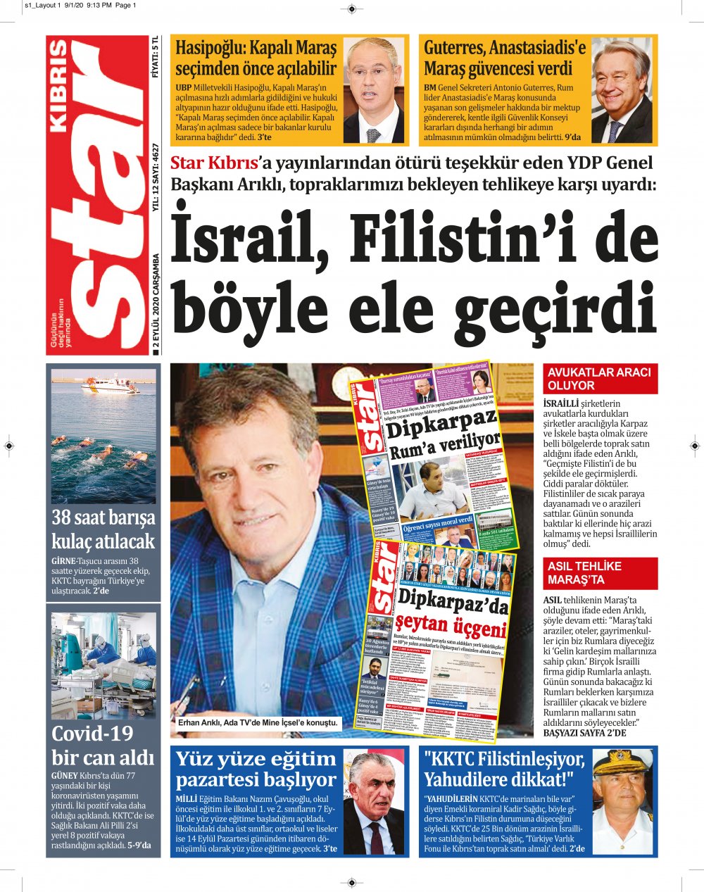 2 Eylül 2020 tarihinde KKTC’de yayınlanan gazete manşetleri