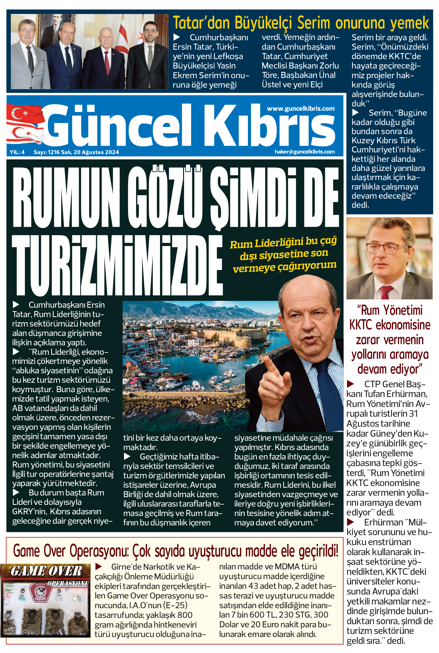 20 Ağustos 2024’te KKTC’de yayınlanan gazete manşetleri