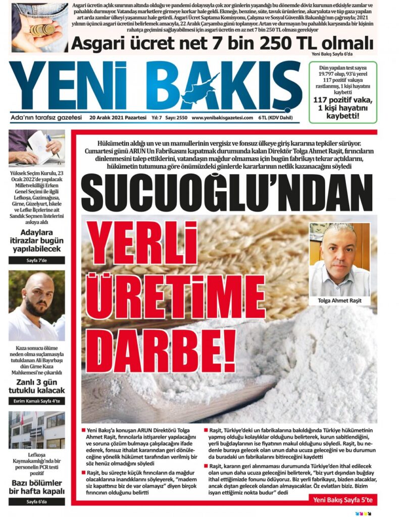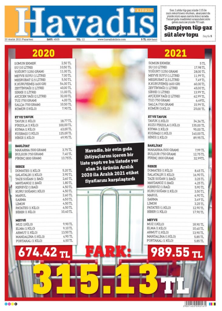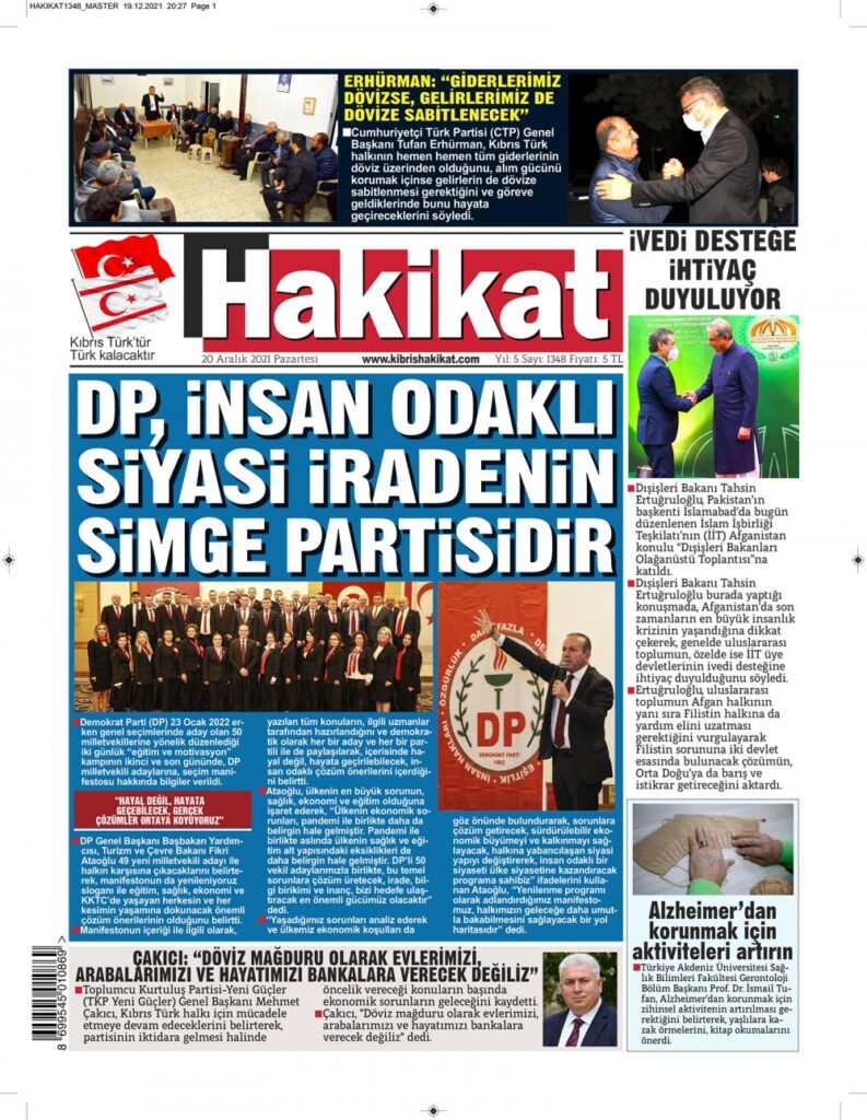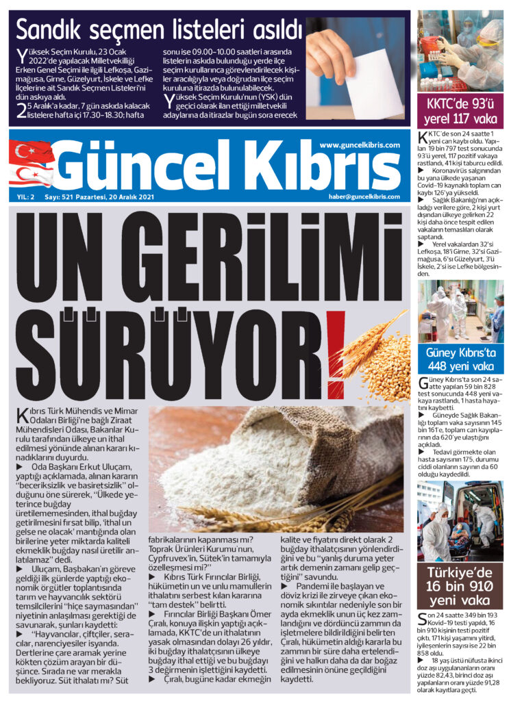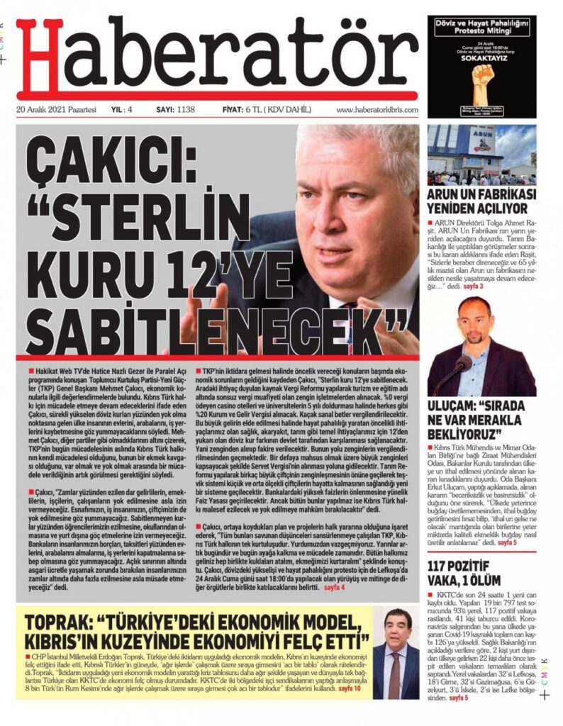 20 Aralık 2021’de KKTC’de yayınlanan gazete manşetleri