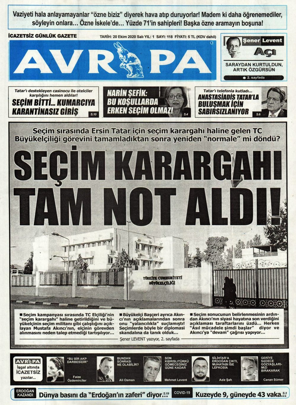 20 Ekim Gazete Manşetleri