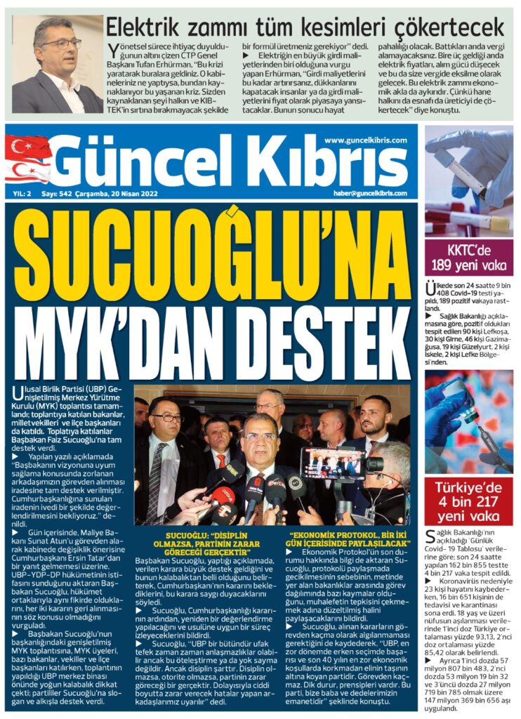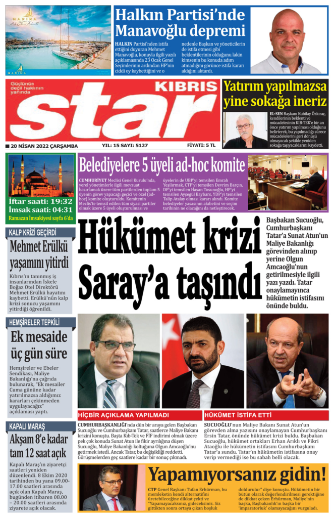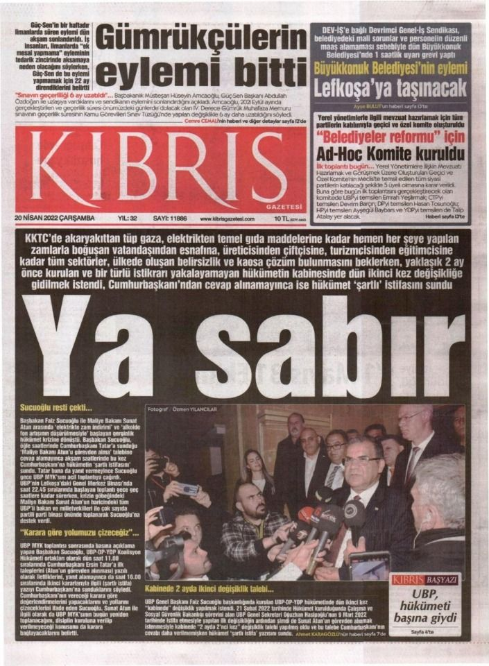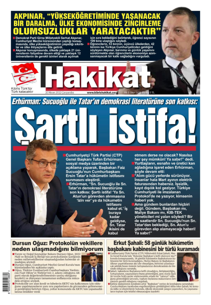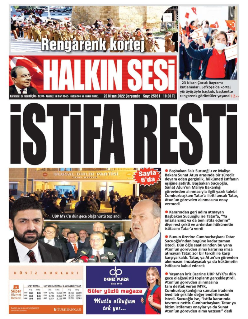 20 Nisan 2022’de KKTC’de yayınlanan gazete manşetleri