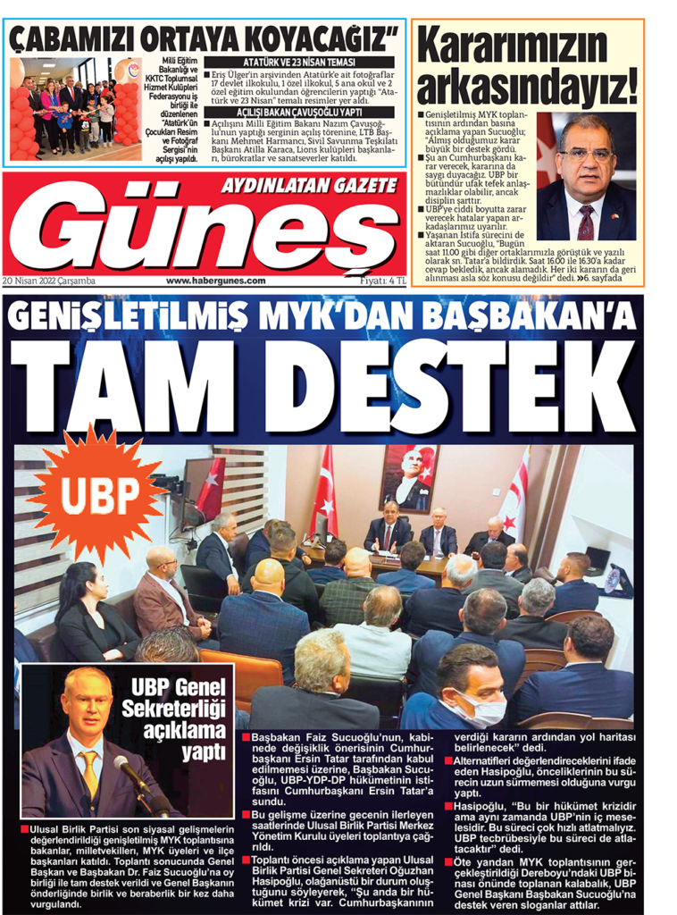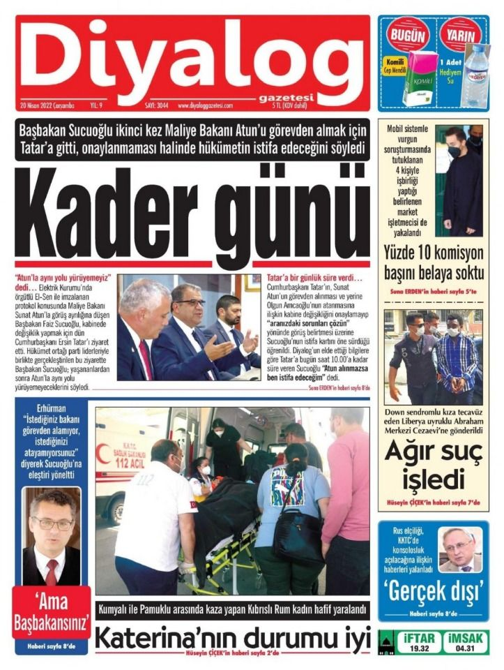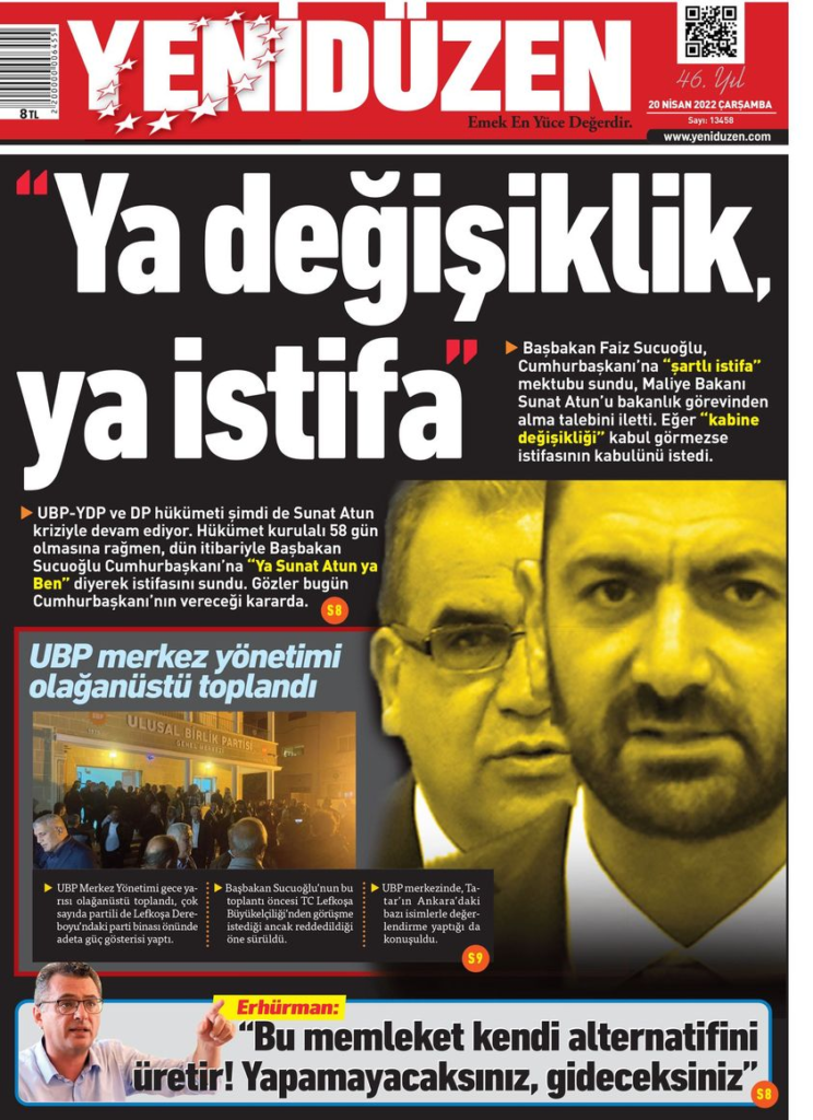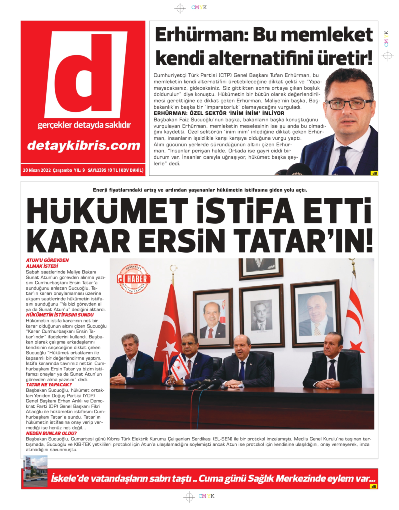 20 Nisan 2022’de KKTC’de yayınlanan gazete manşetleri