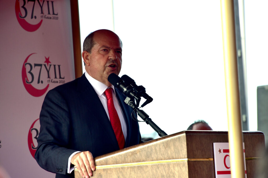 Cumhurbaşkanı Tatar, 15 Kasım Cumhuriyet Bayramı töreninde yaptığı konuşmada, “Artık, egemen eşitliğe dayalı çözüm, yani iki devletli çözüm masaya gelmelidir” dedi.