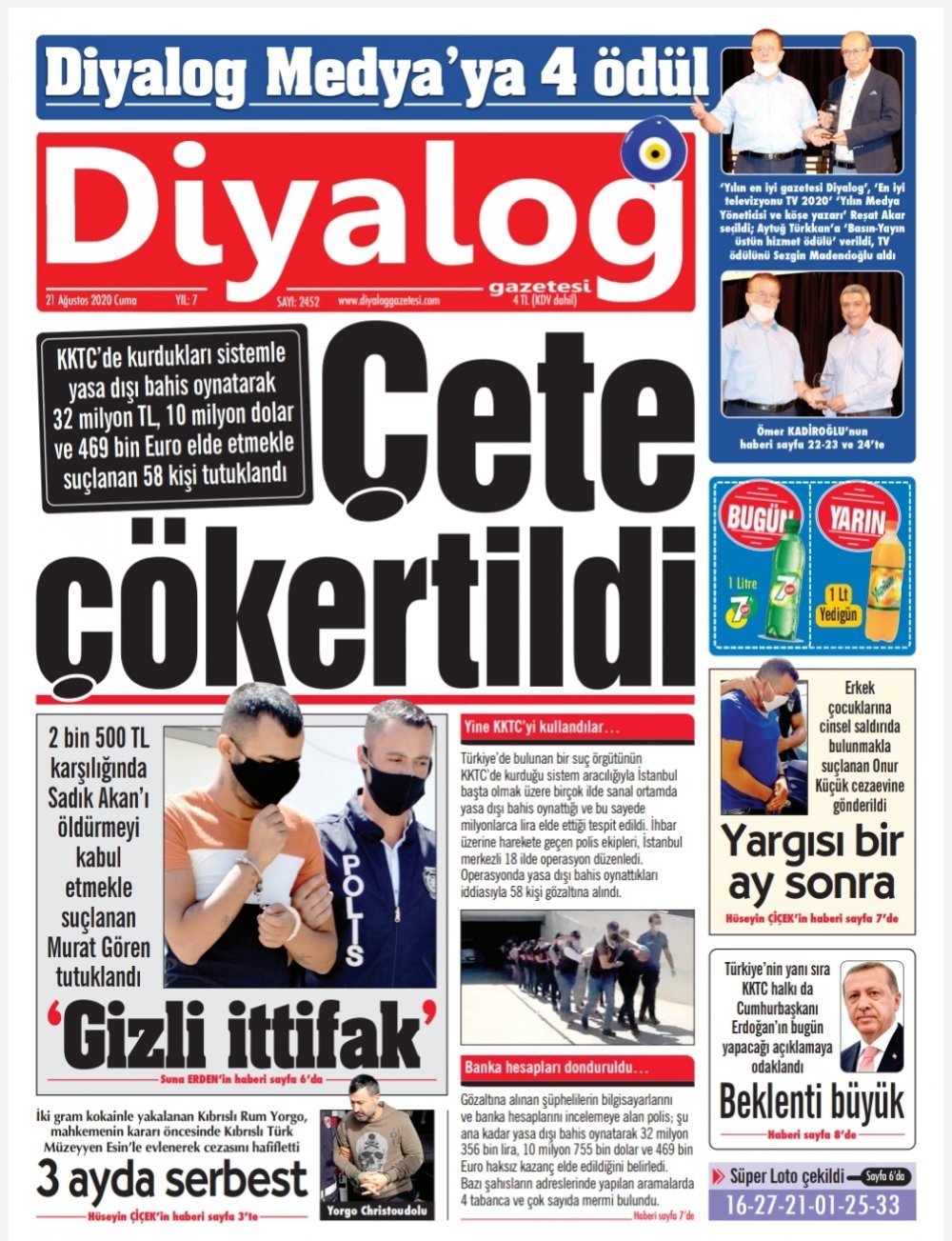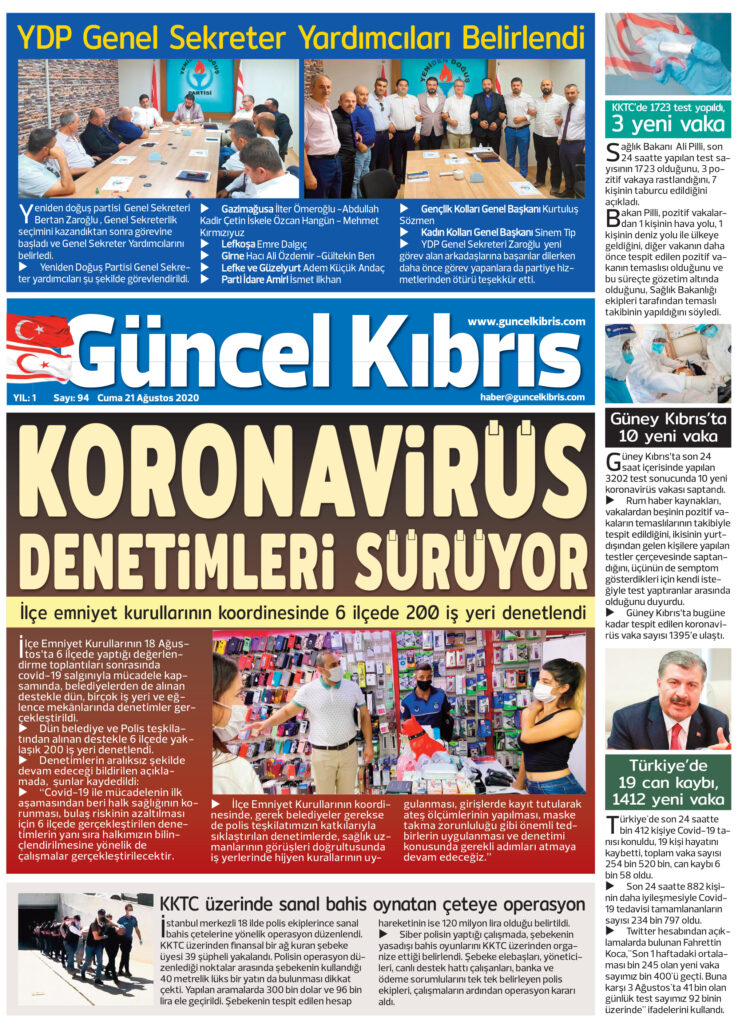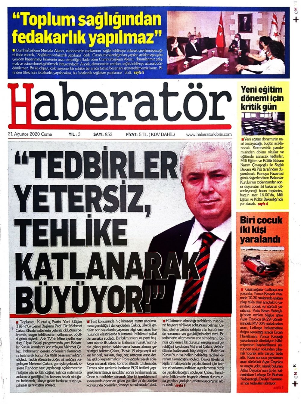 21 Ağustos 2020 tarihinde KKTC yayınlanan gazete manşetleri