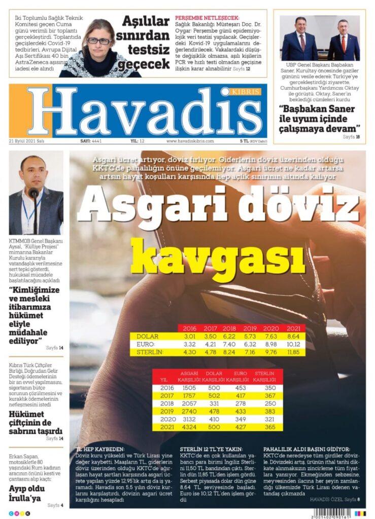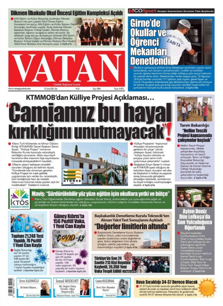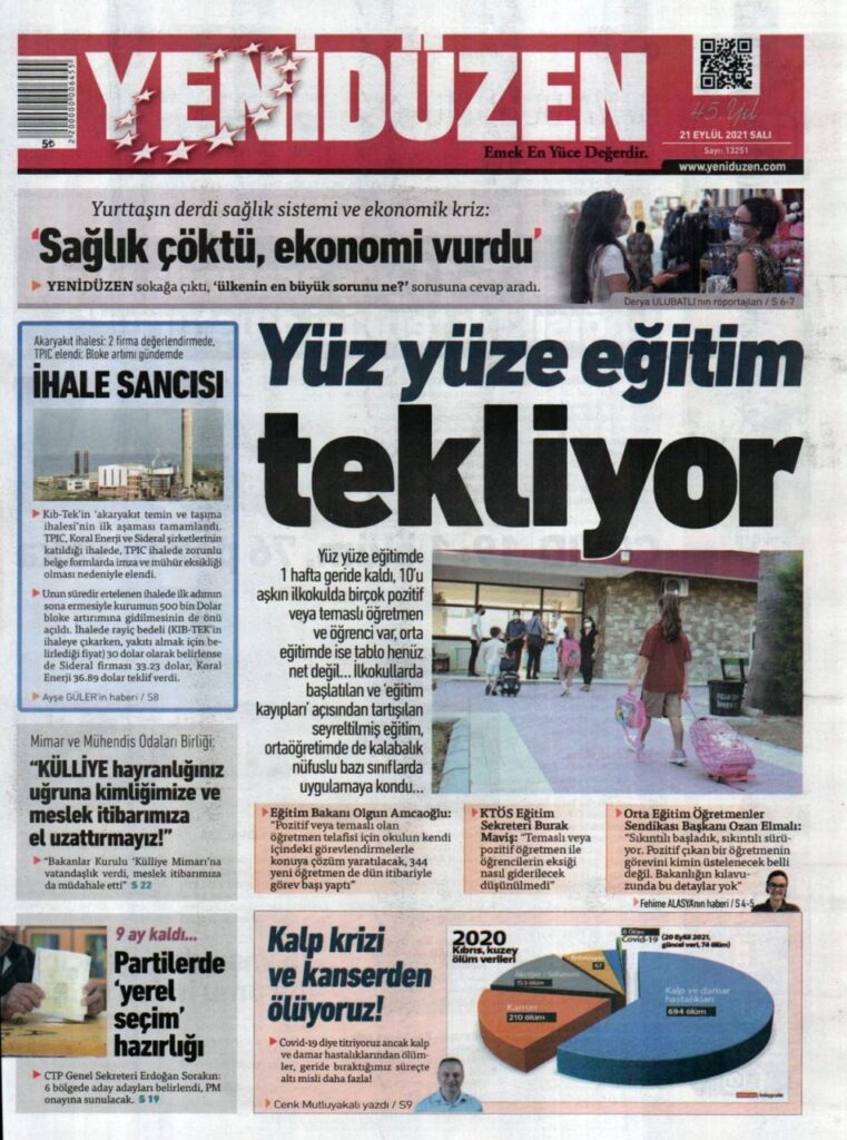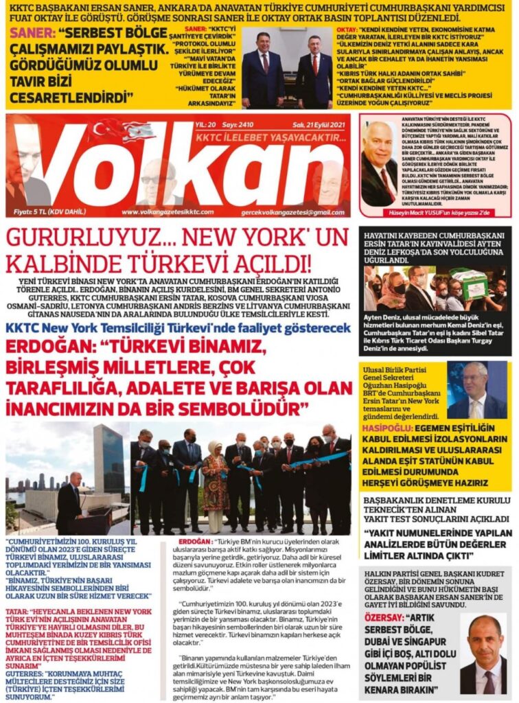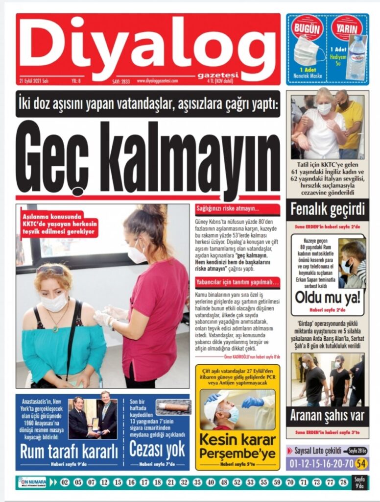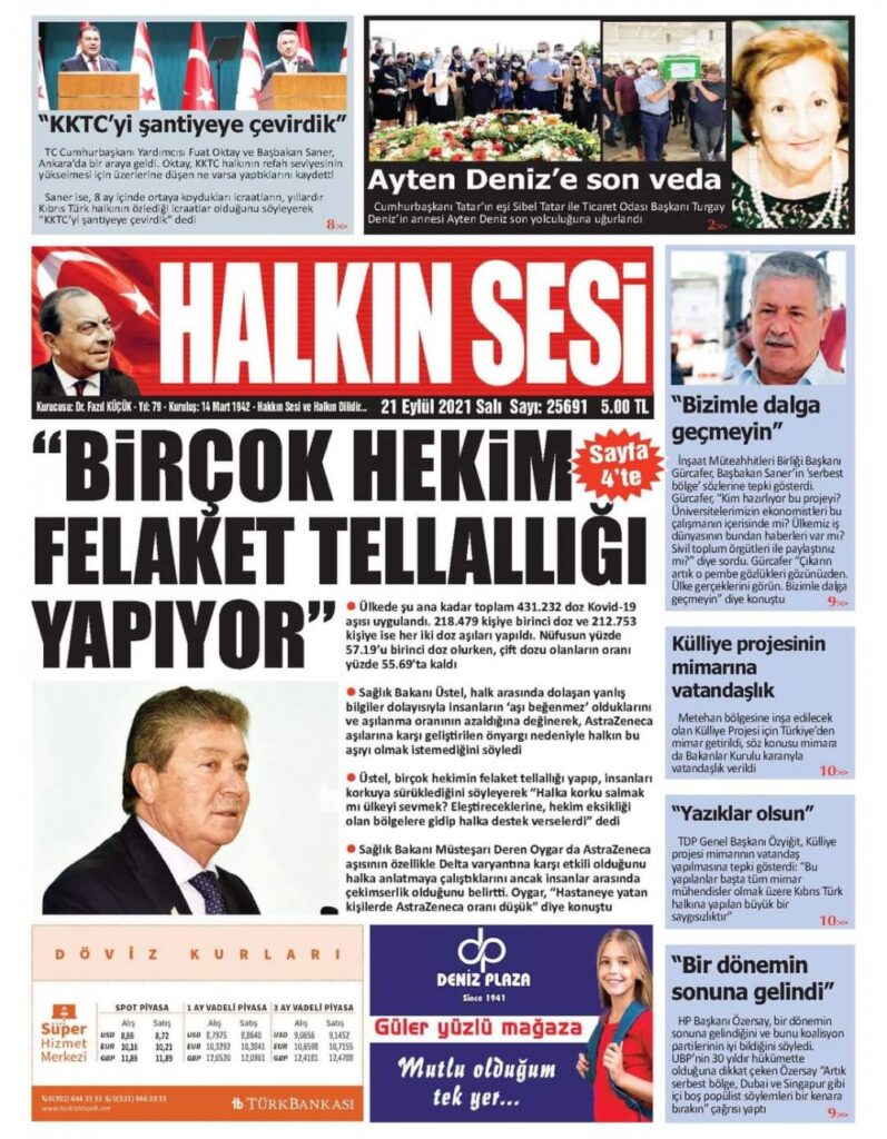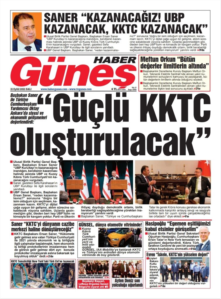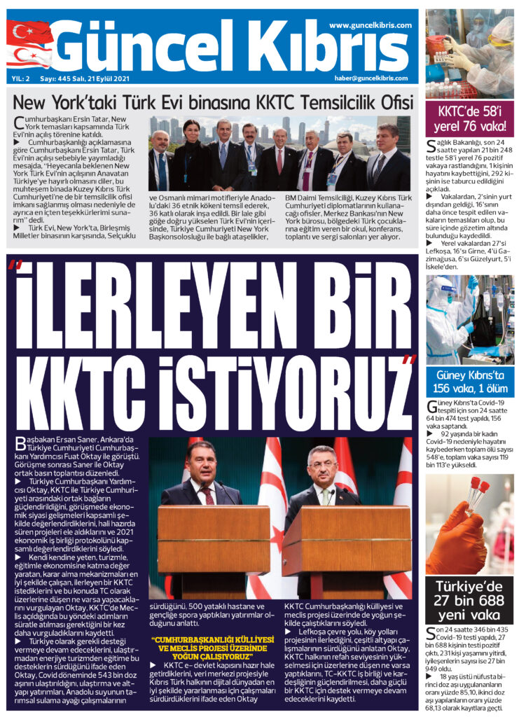 21 Eylül 2021’de KKTC’de yayınlanan gazete manşetleri