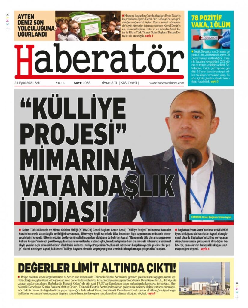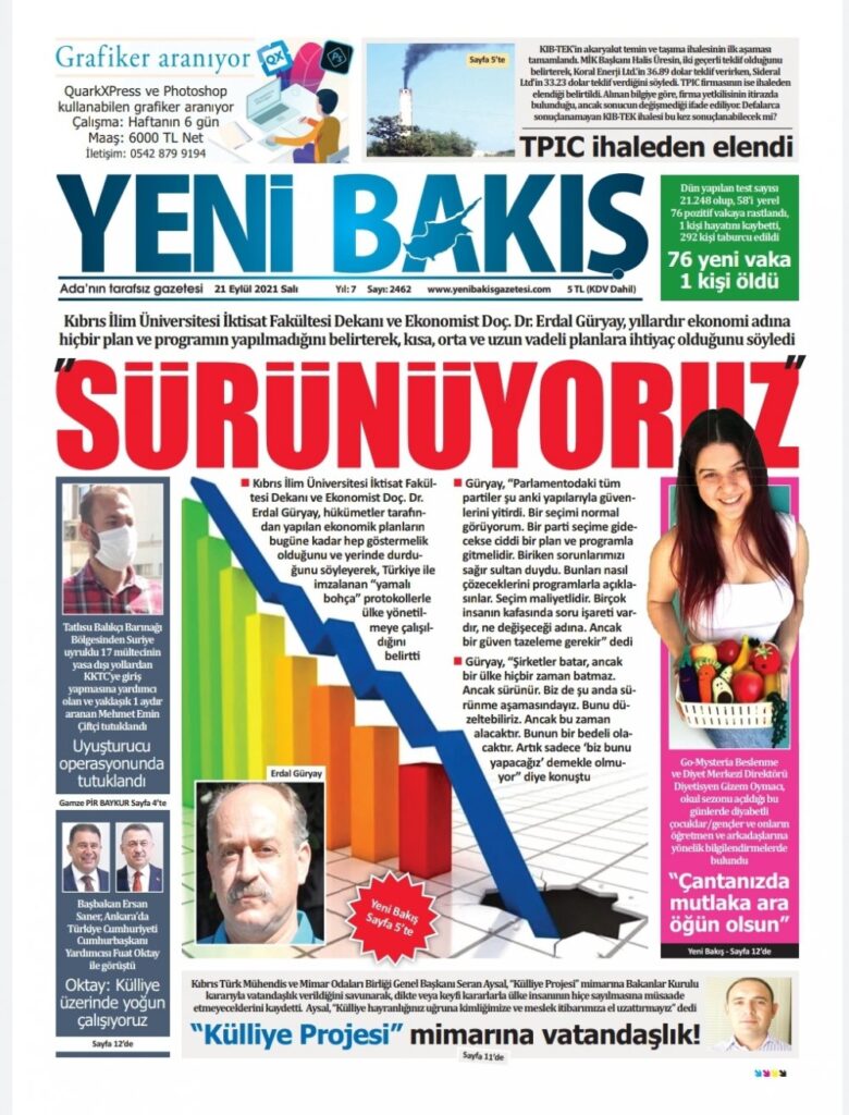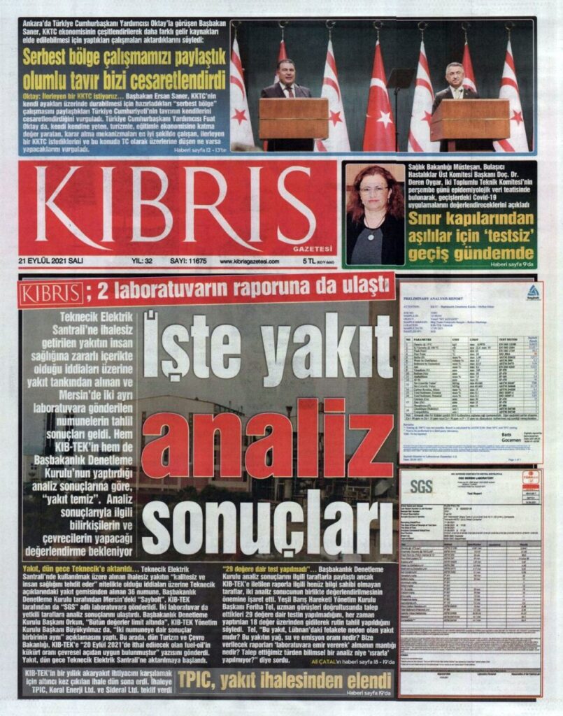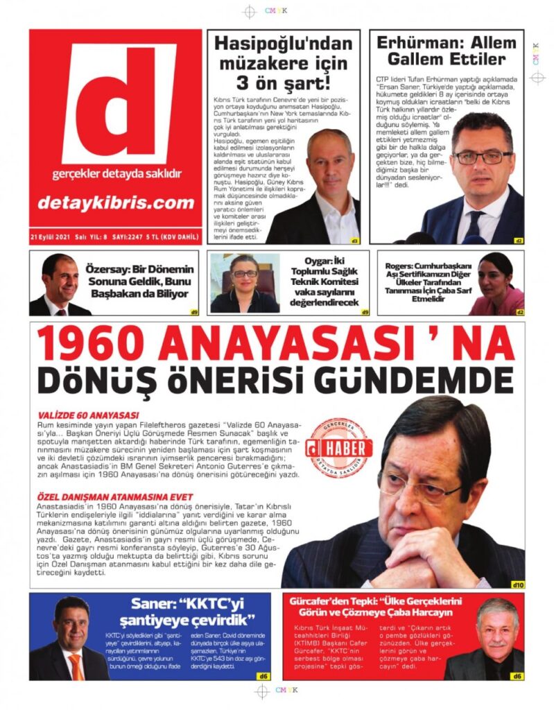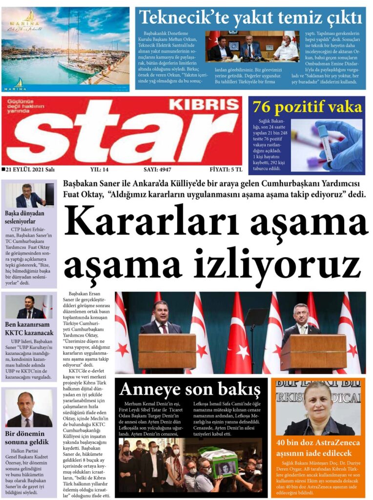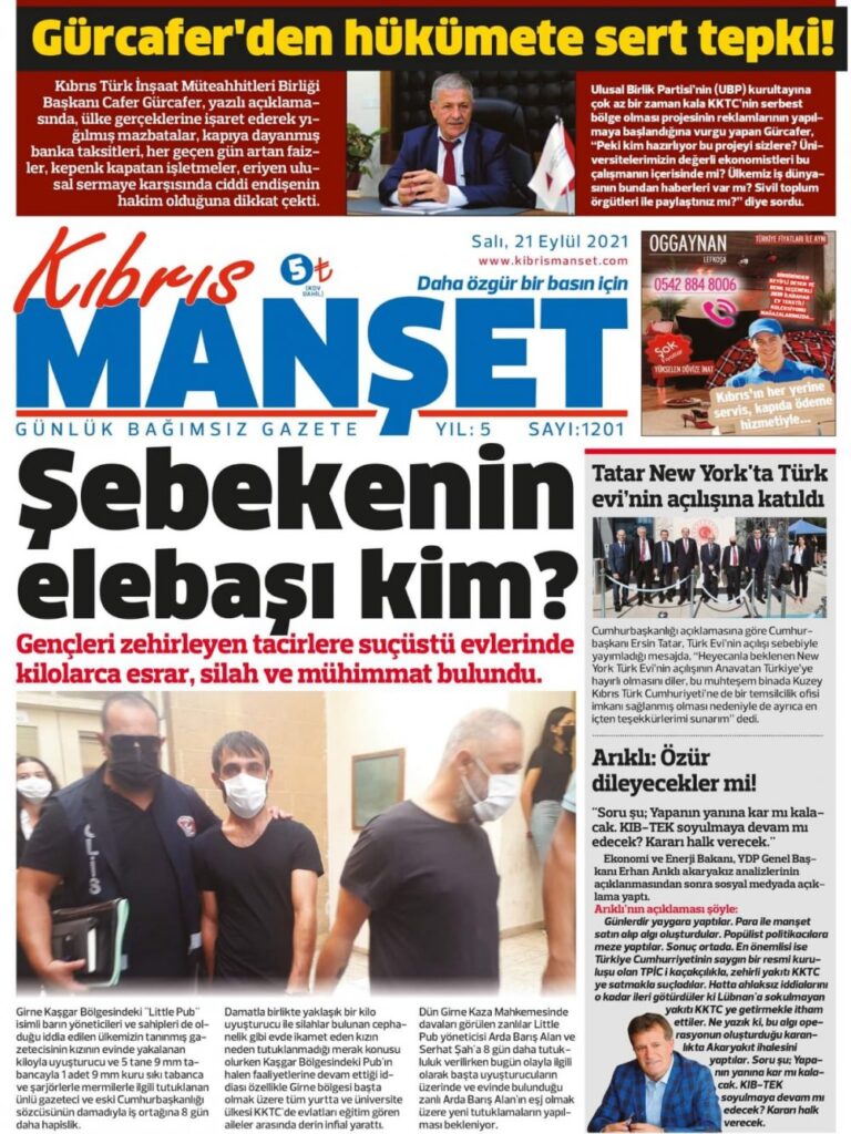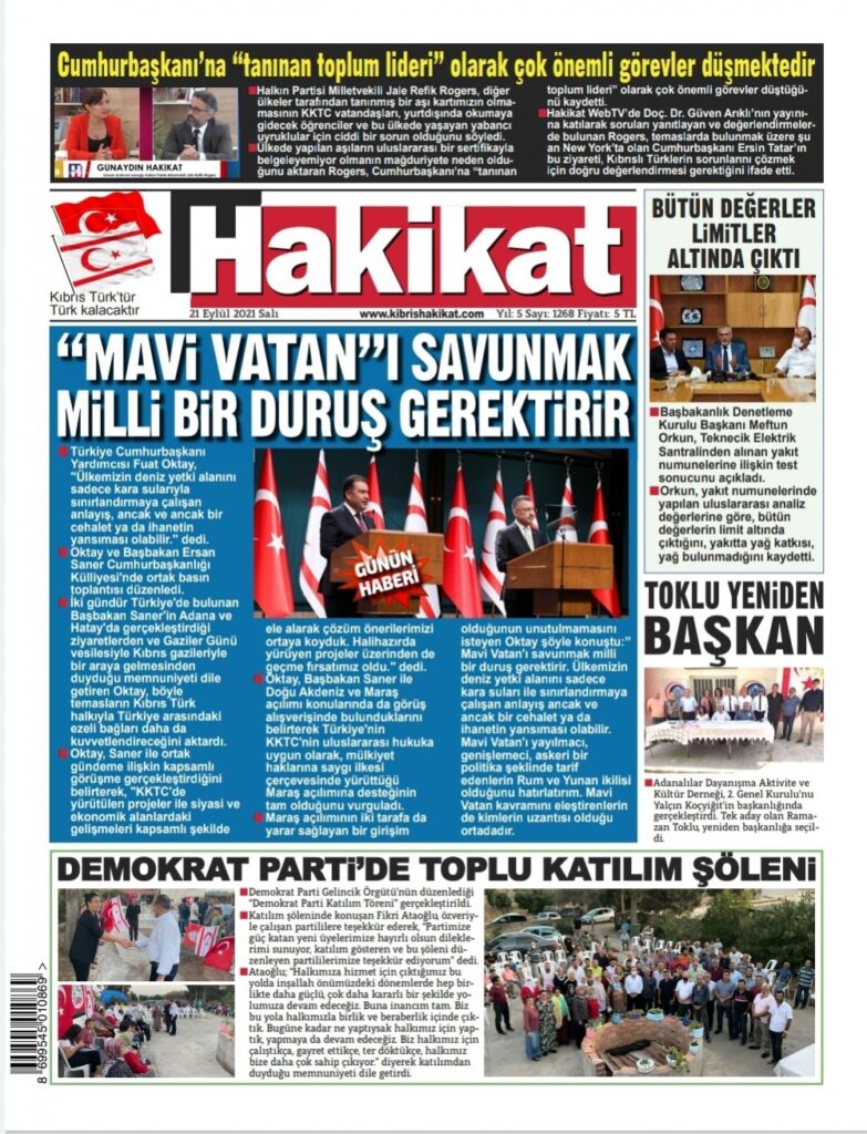 21 Eylül 2021’de KKTC’de yayınlanan gazete manşetleri