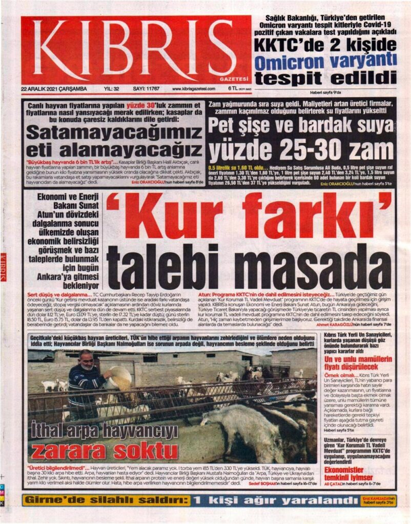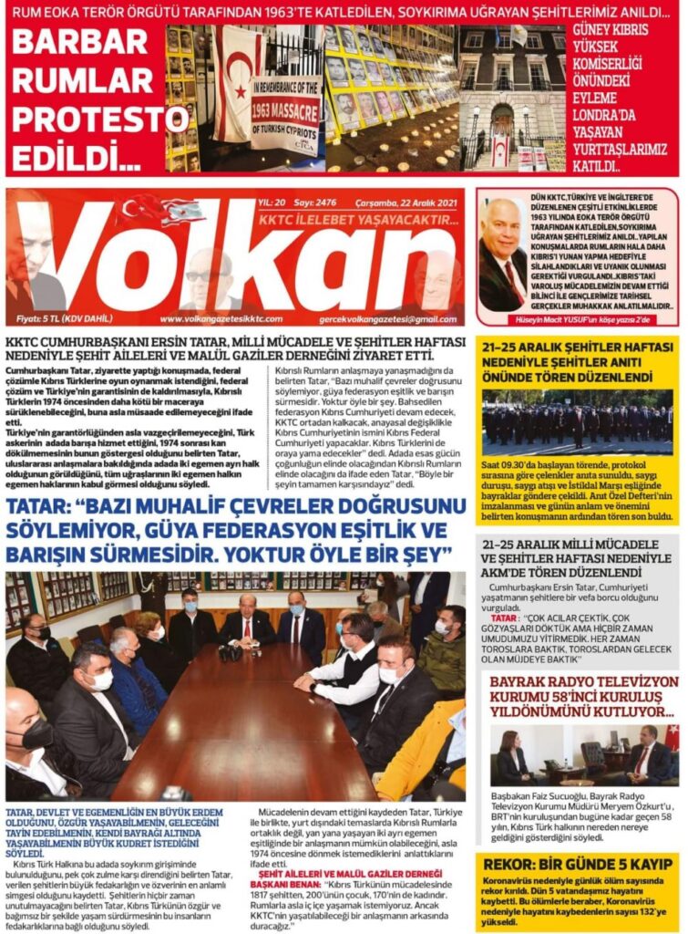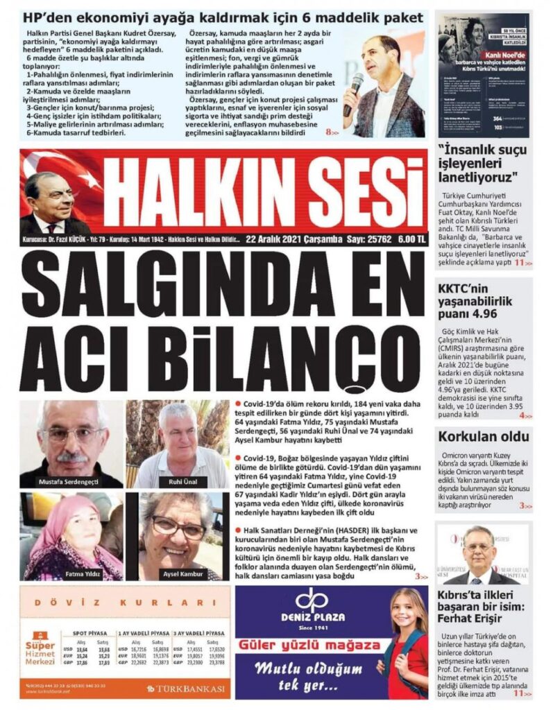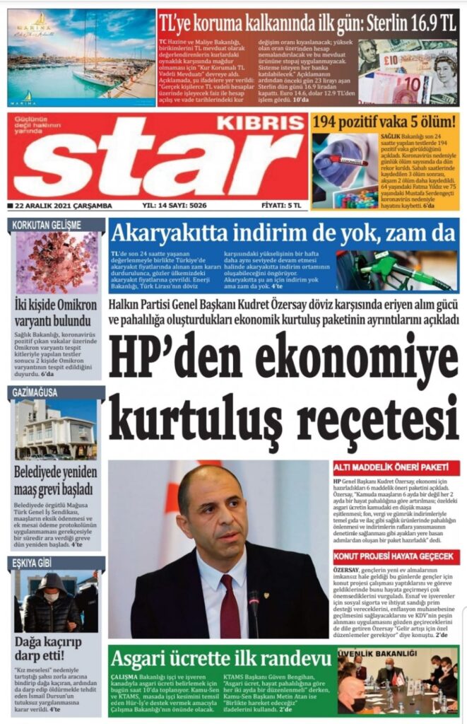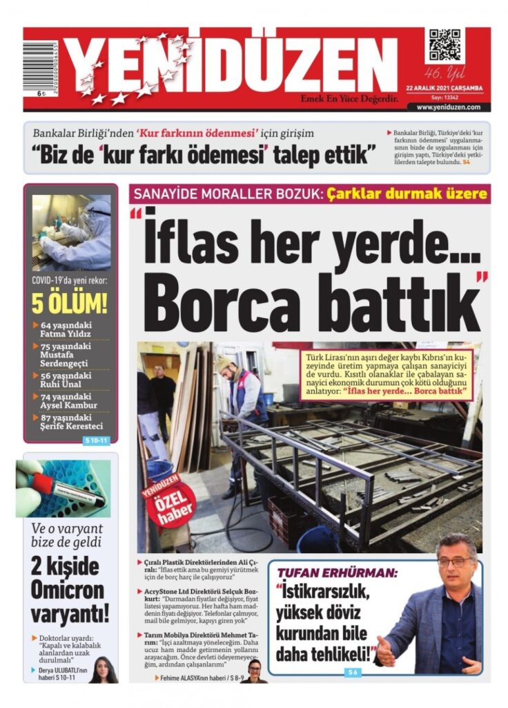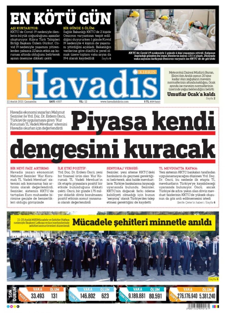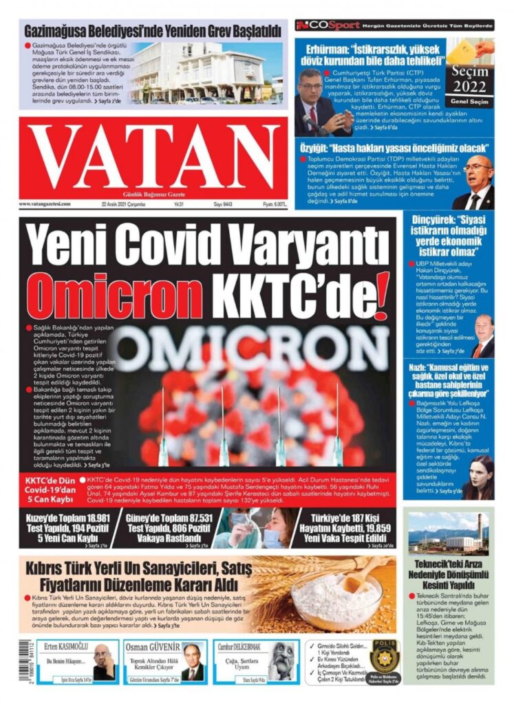 22 Aralık 2021’de KKTC’de yayınlanan gazete manşetleri