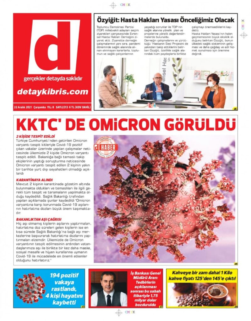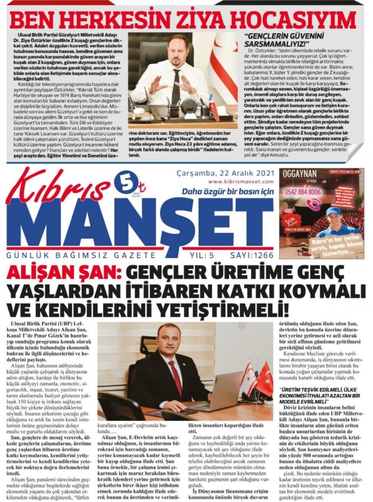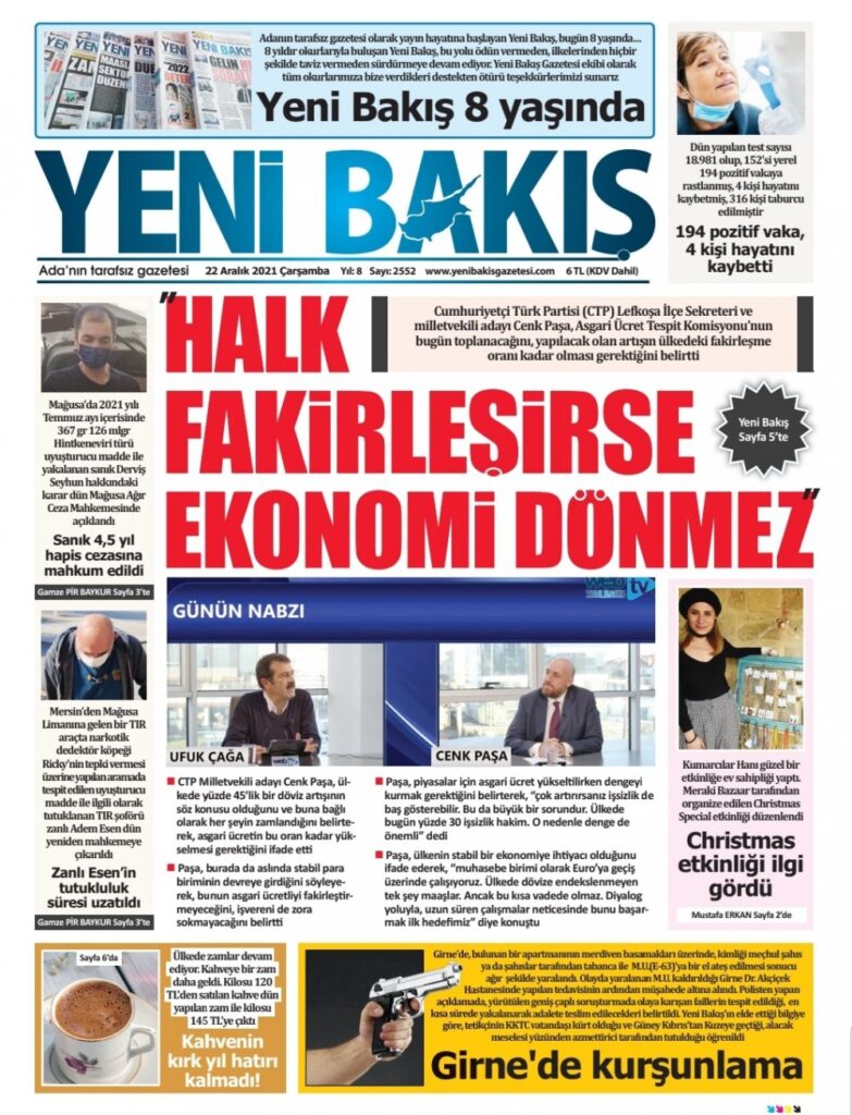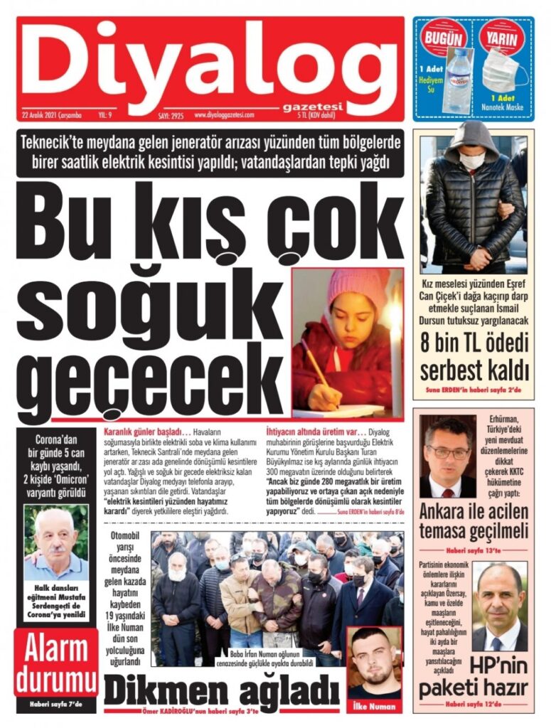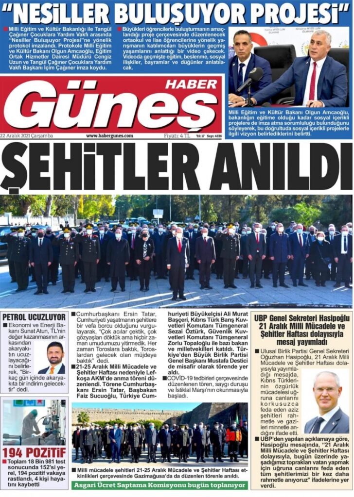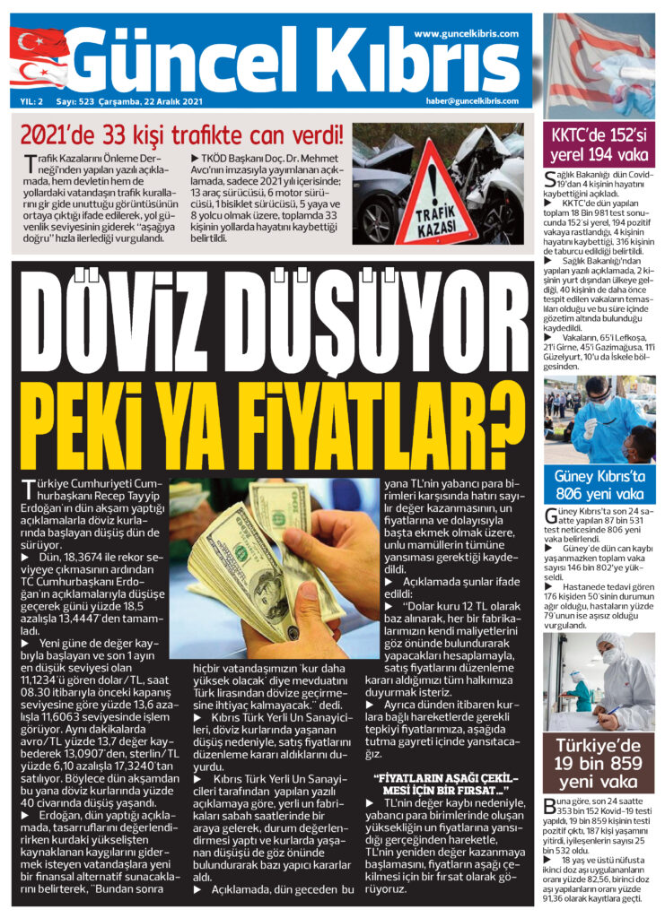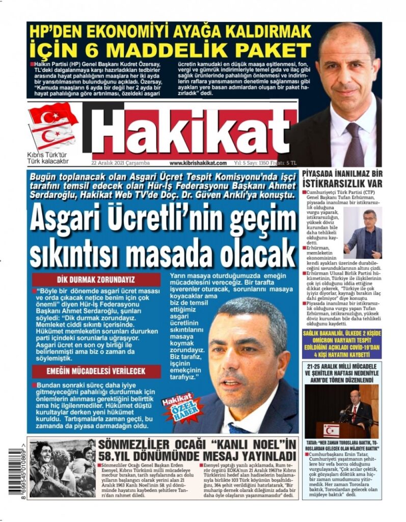 22 Aralık 2021’de KKTC’de yayınlanan gazete manşetleri