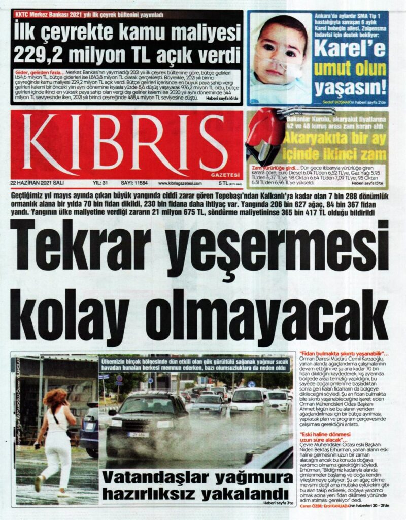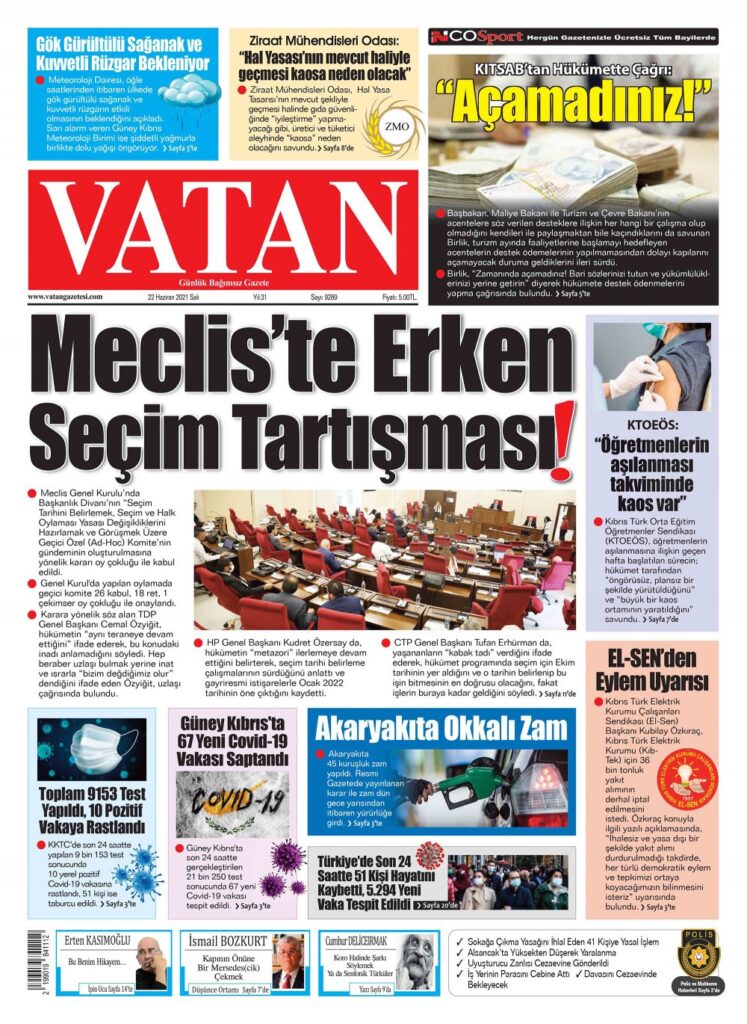 22 Haziran 2021’de KKTC’de yayınlanan gazete manşetleri