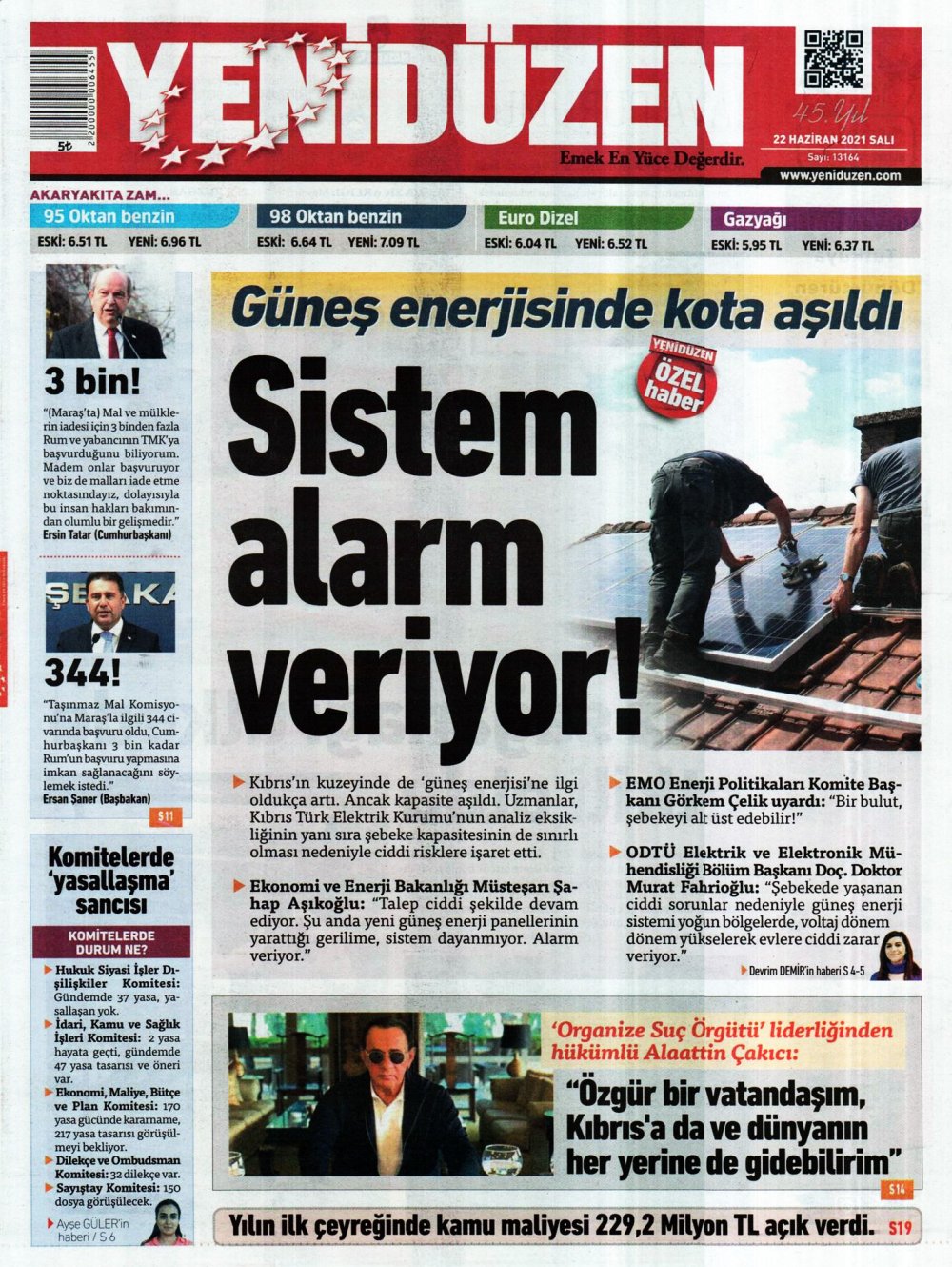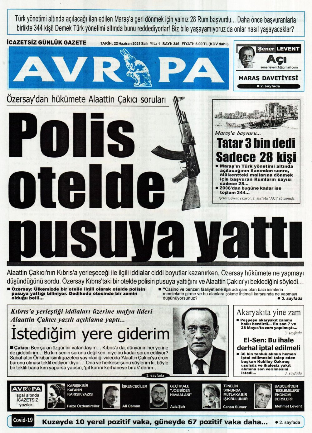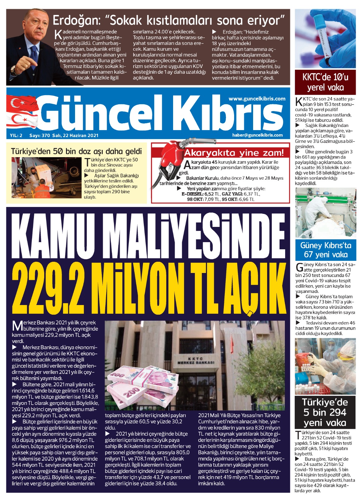 22 Haziran 2021’de KKTC’de yayınlanan gazete manşetleri