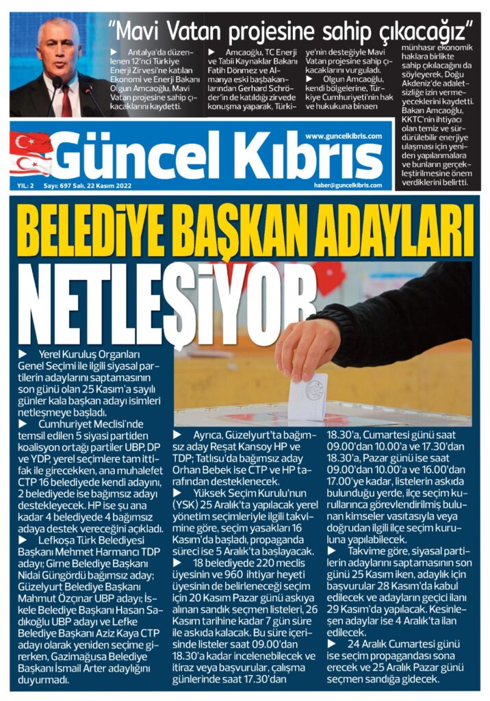 22 Kasım 2022’de KKTC’de yayınlanan gazete manşetleri
