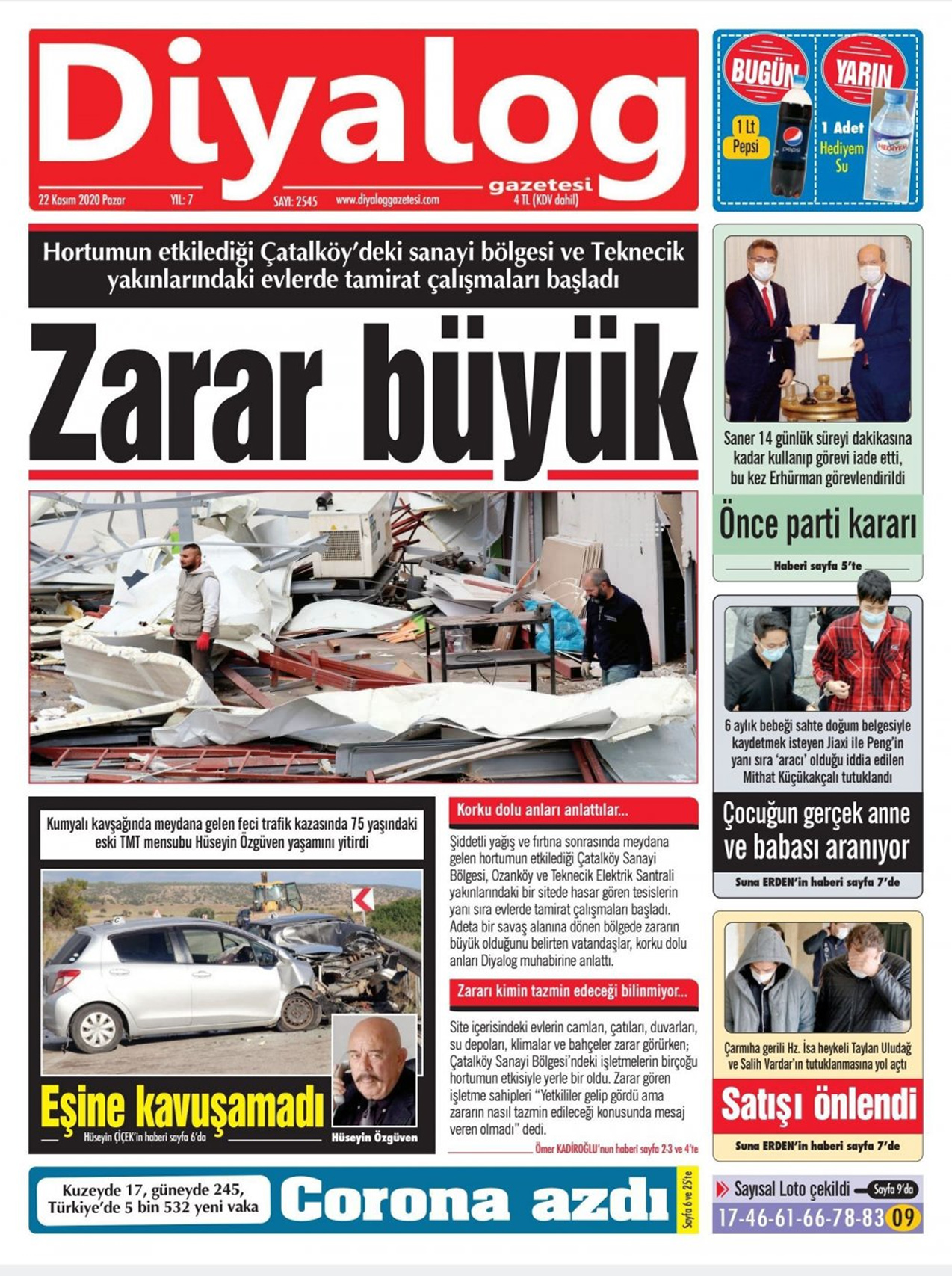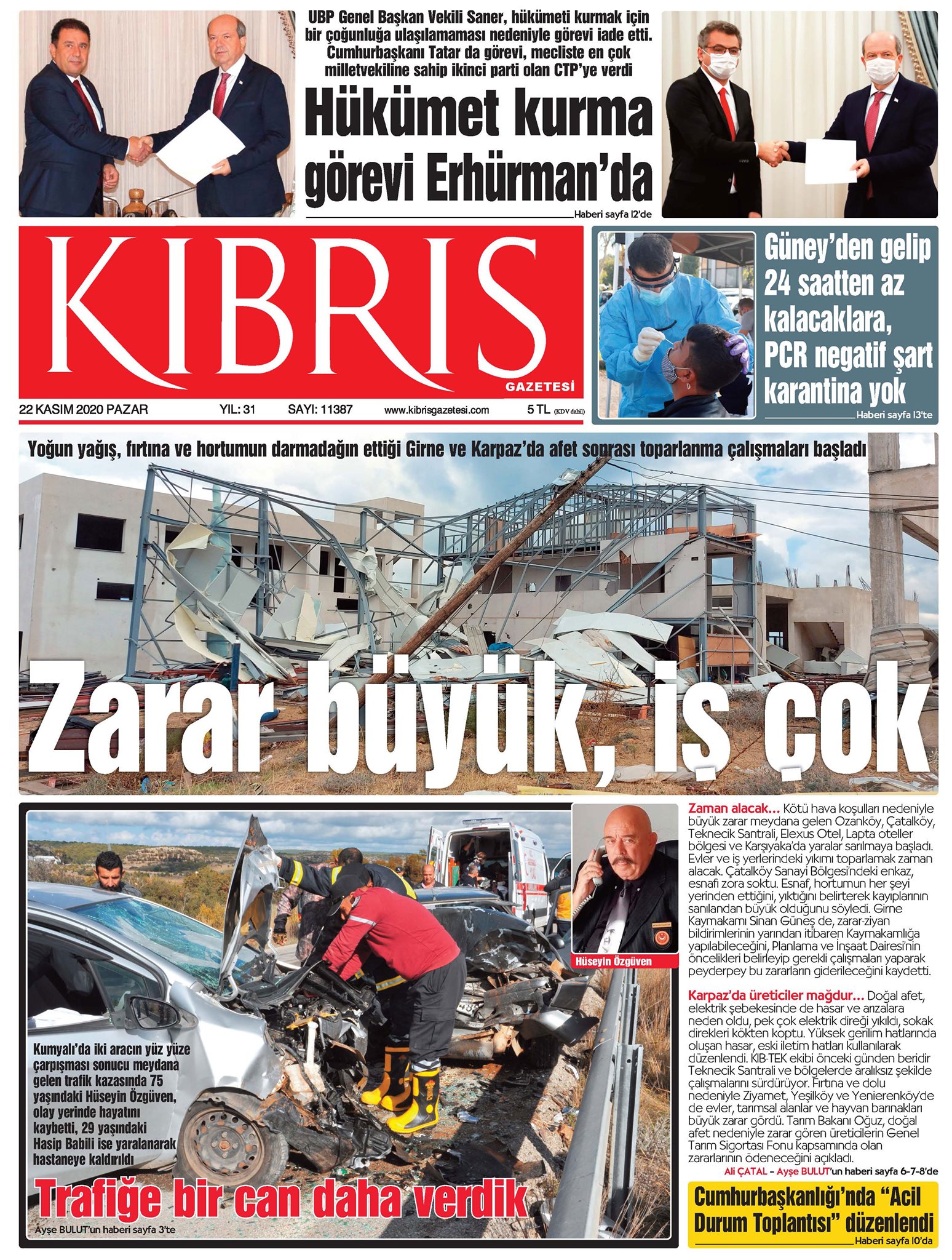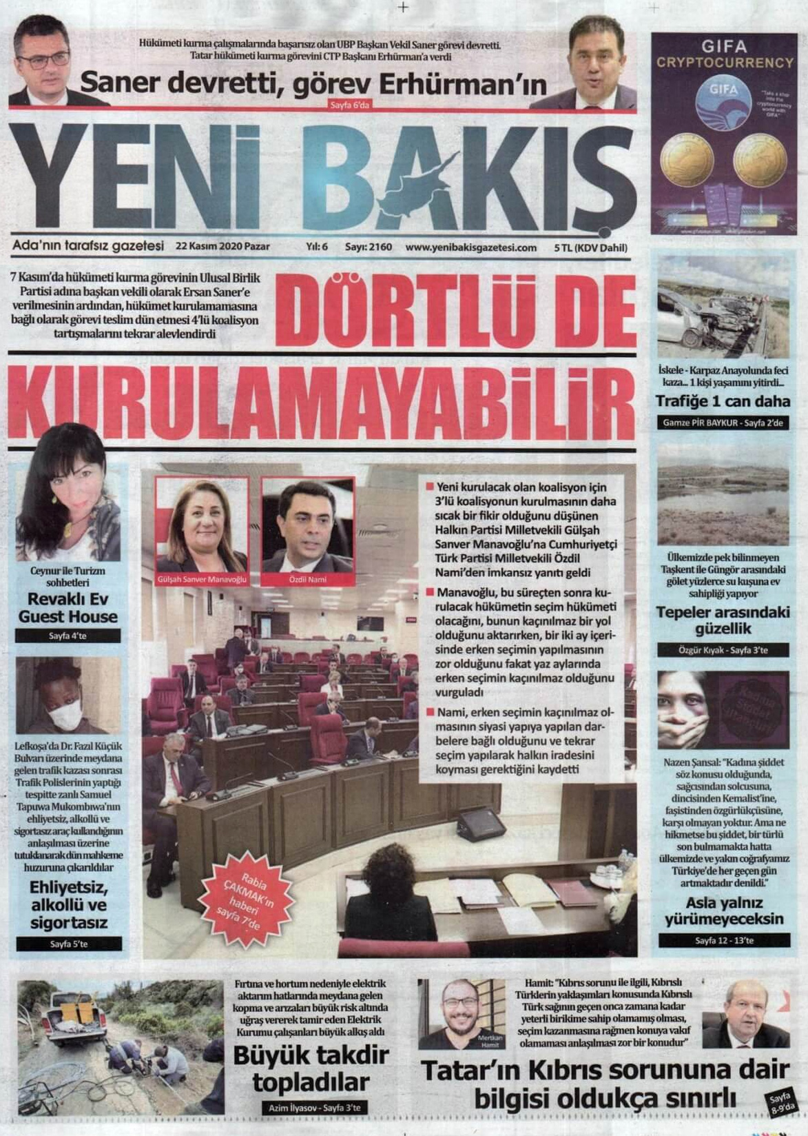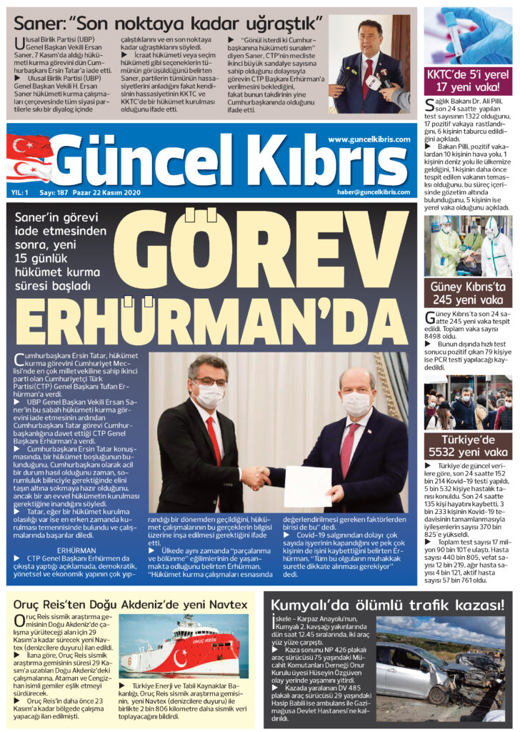22 Kasım 2020 tarihinde KKTC’de yayınlanan gazete manşetleri