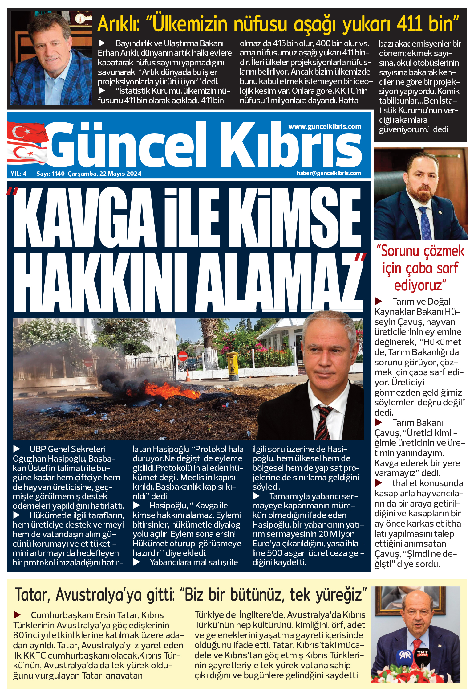 22 Mayıs 2024’te KKTC’de yayınlanan gazete manşetleri