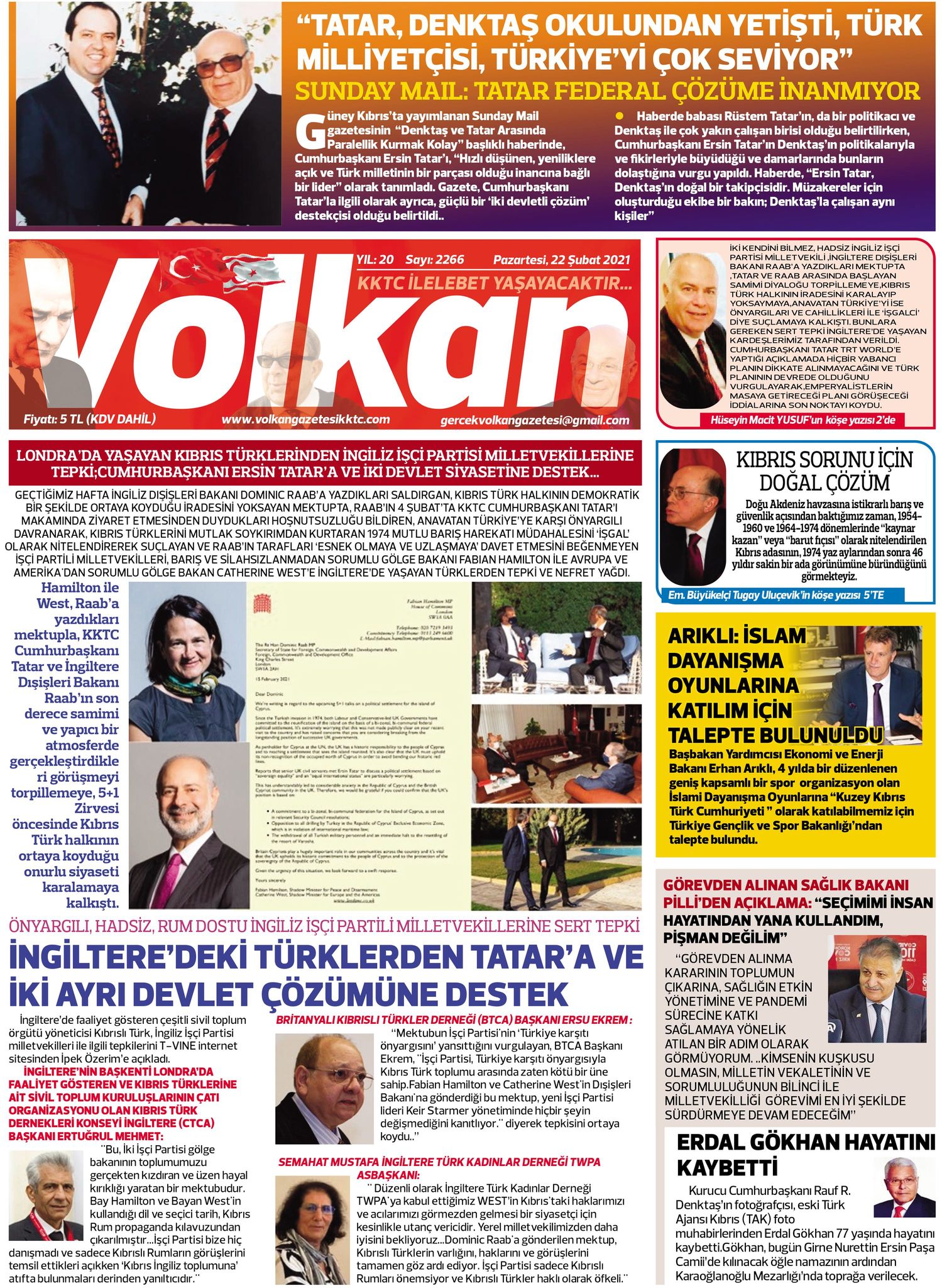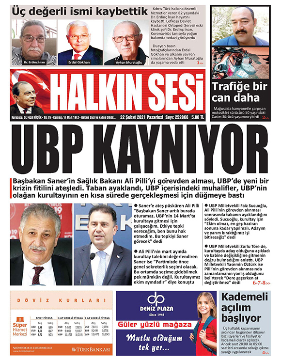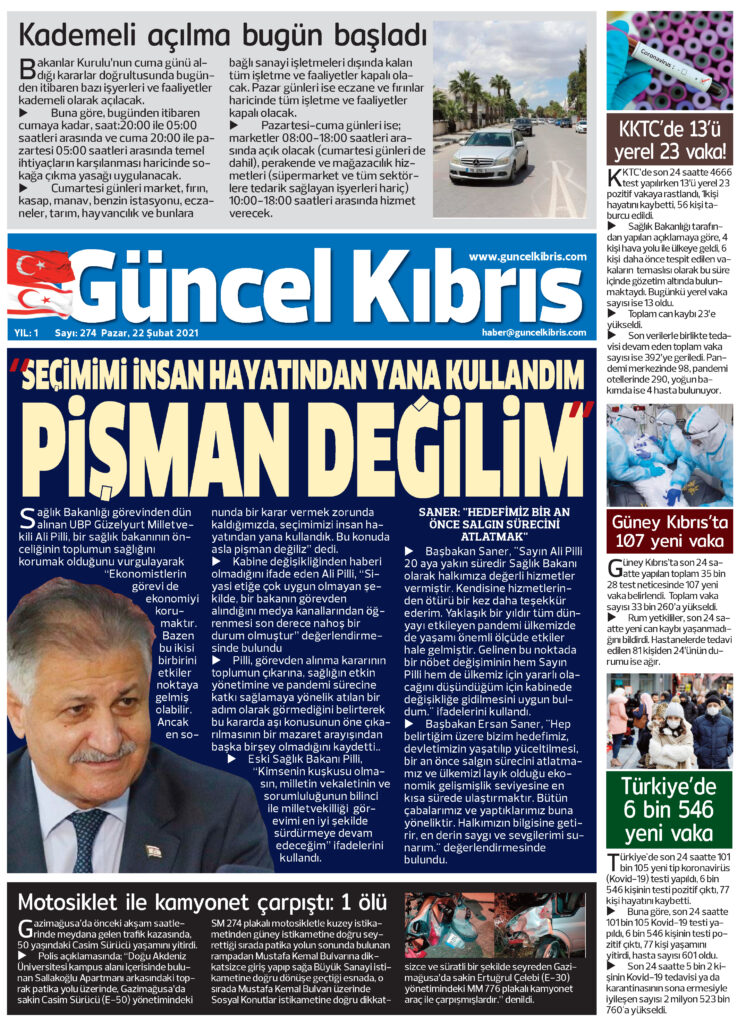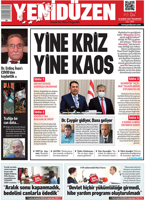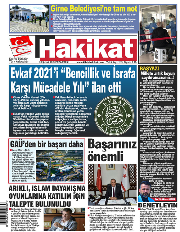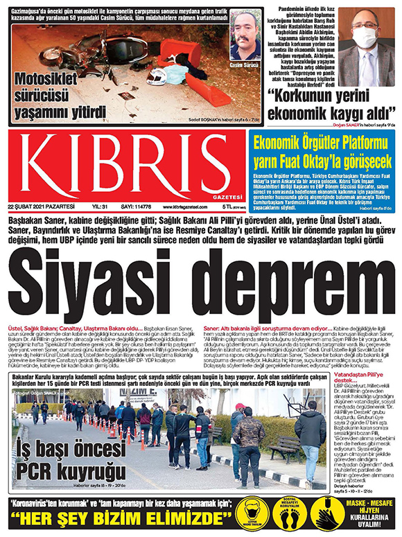 22 Şubat 2021 tarihinde KKTC’de yayınlanan gazete manşetleri