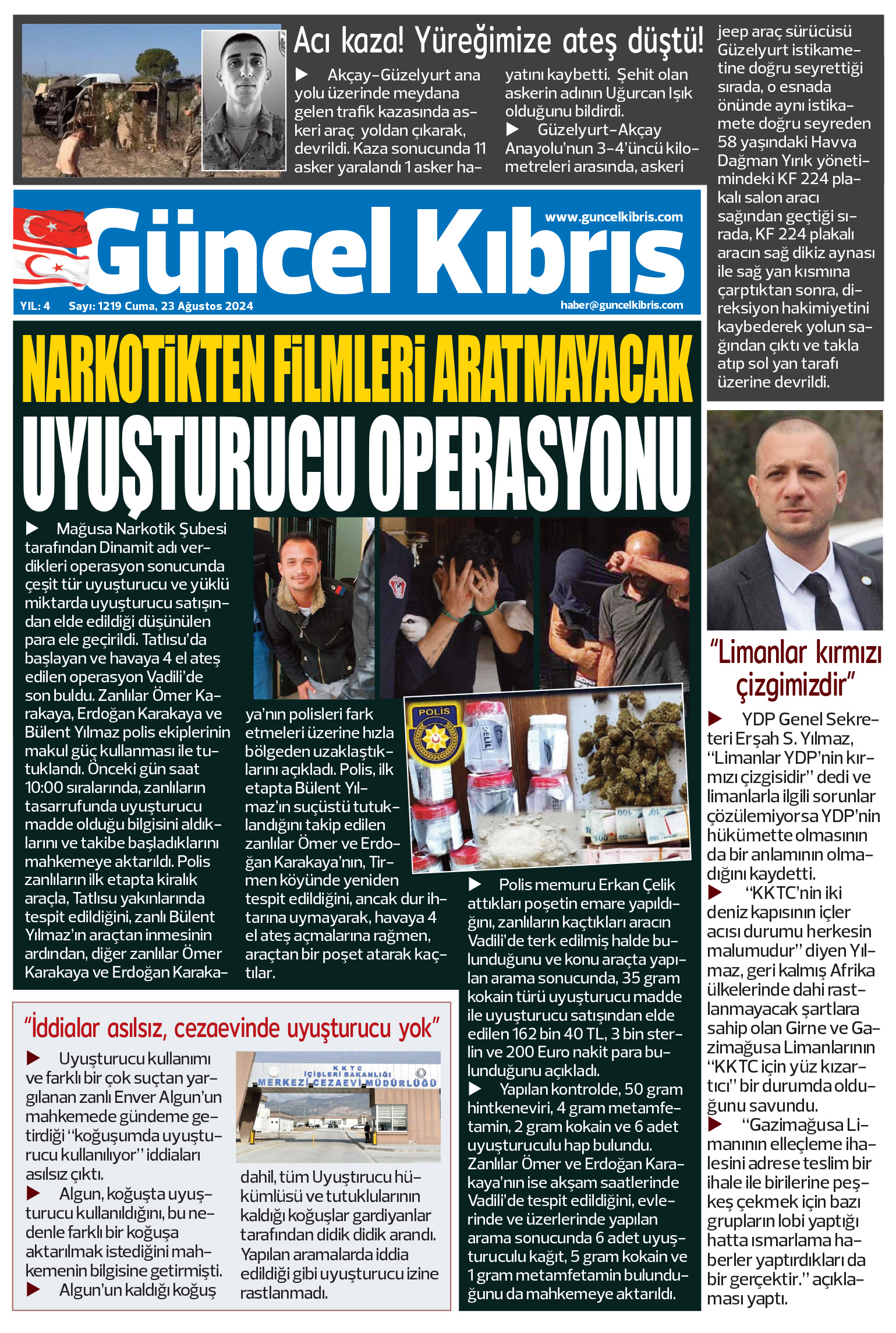 23 Ağustos 2024’te KKTC’de yayınlanan gazete manşetleri