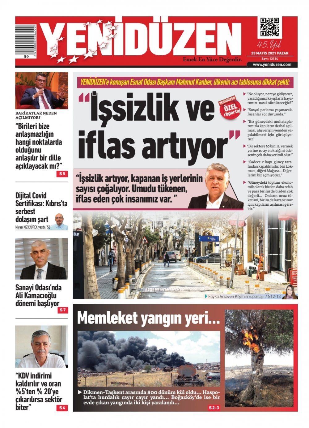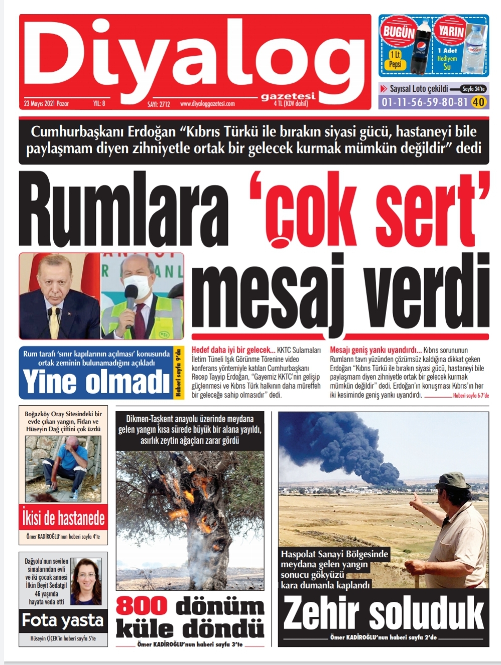 23 Mayıs 2021’de KKTC’de yayınlanan gazete manşetleri