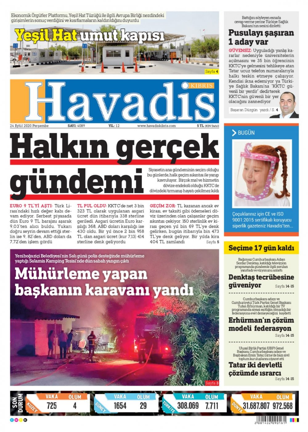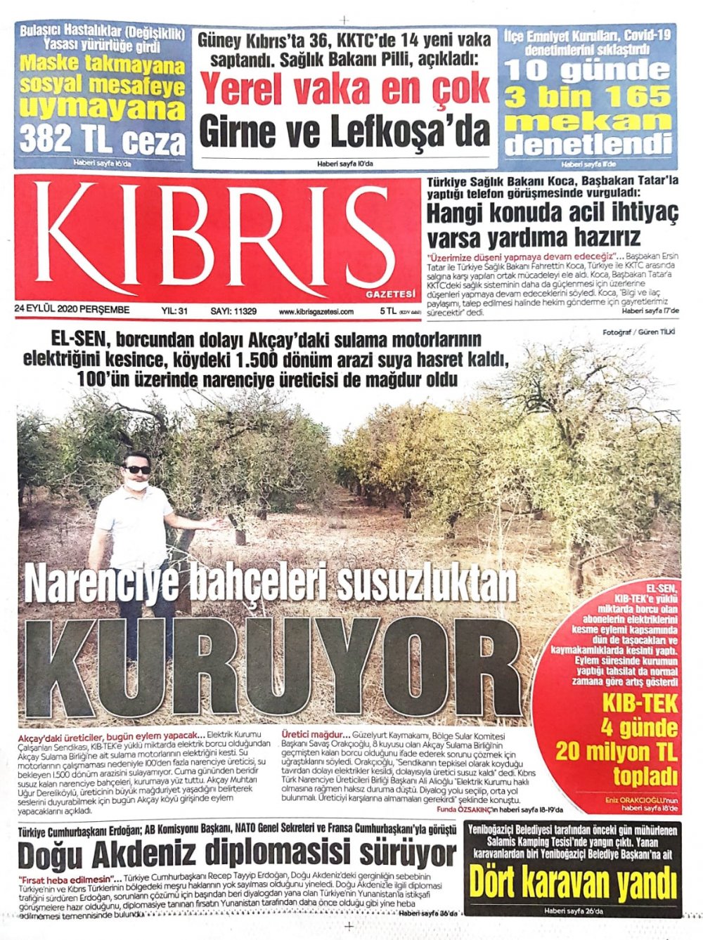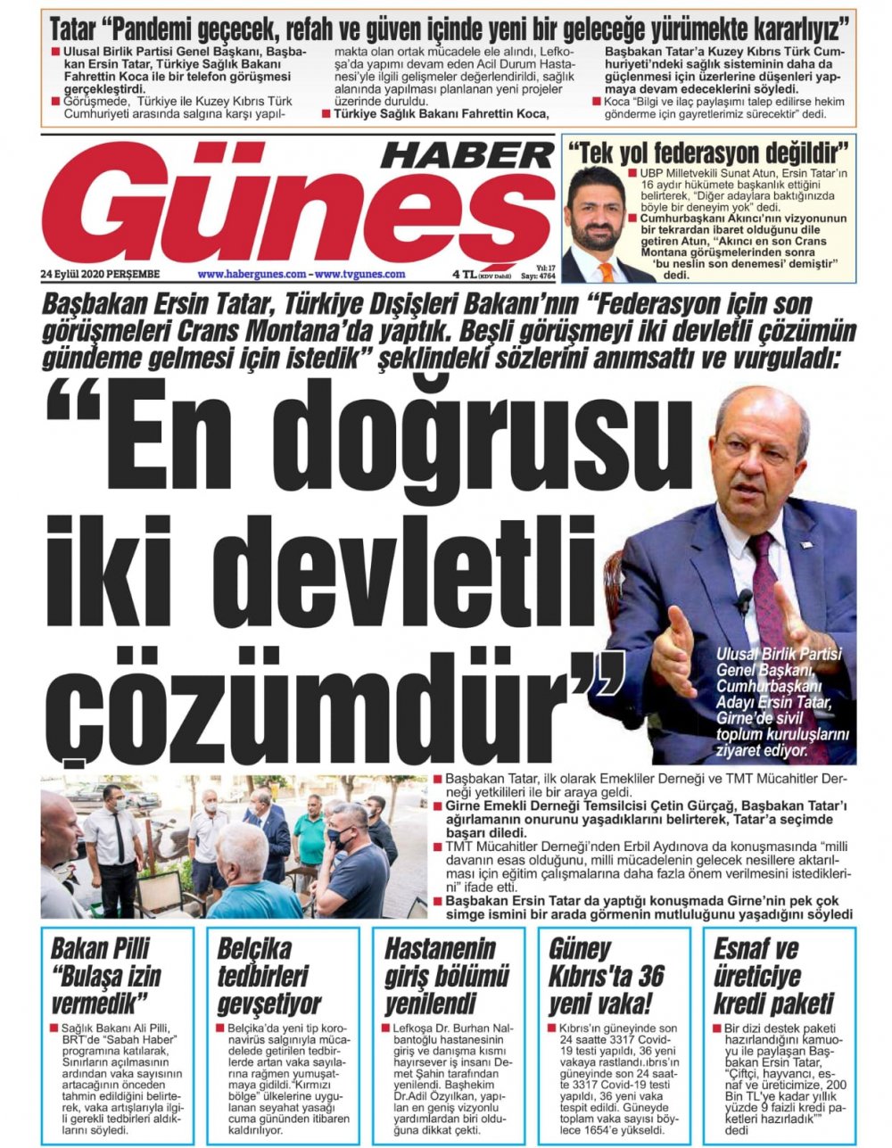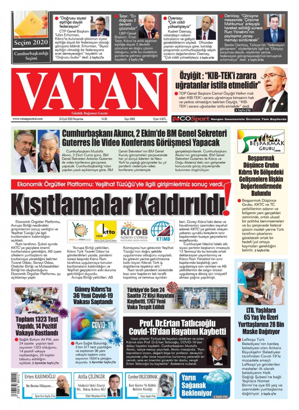 24 Eylül 2020 tarihinde KKTC’de yayınlanan gazete manşetleri