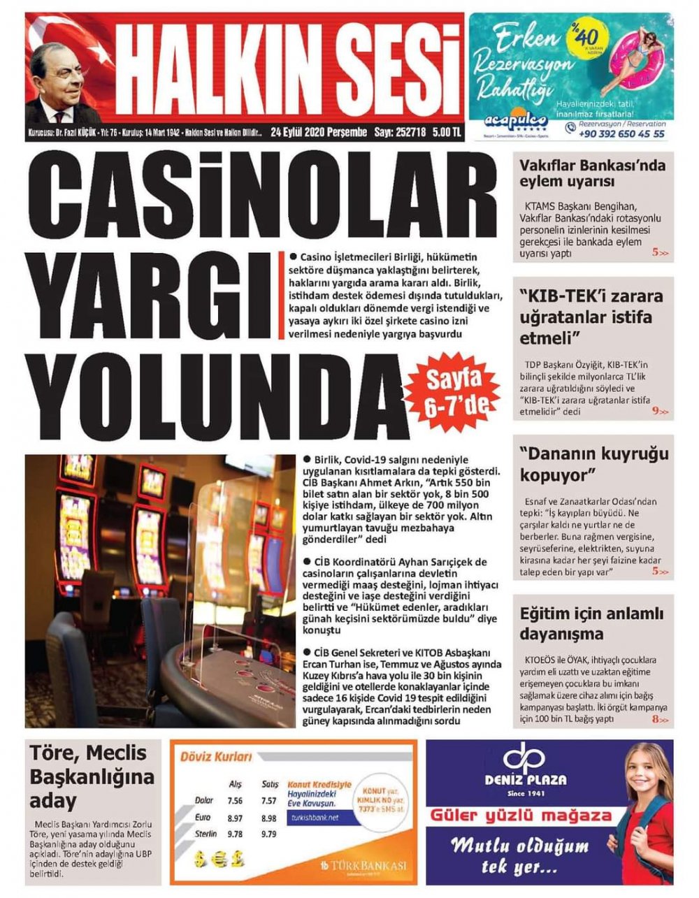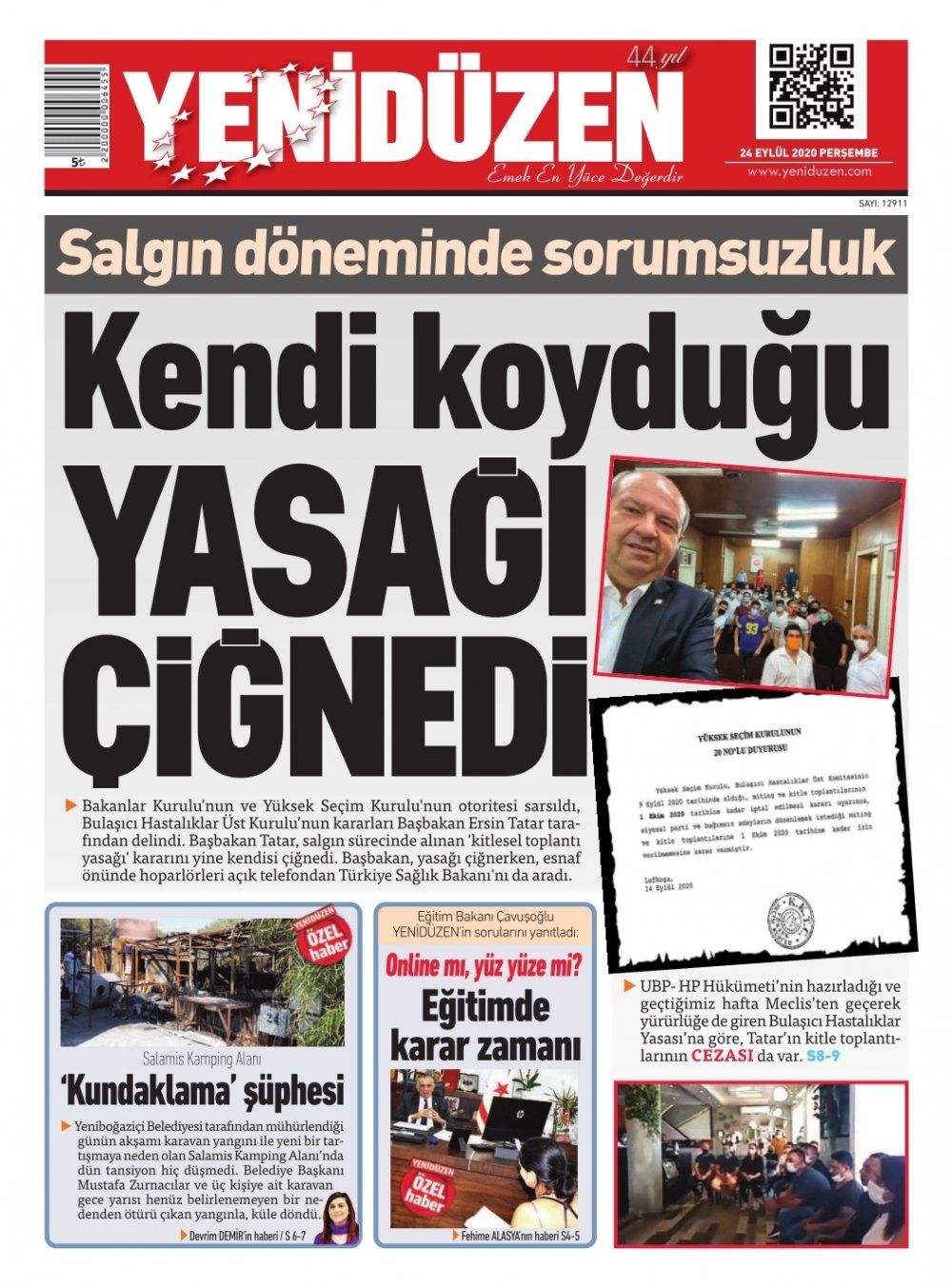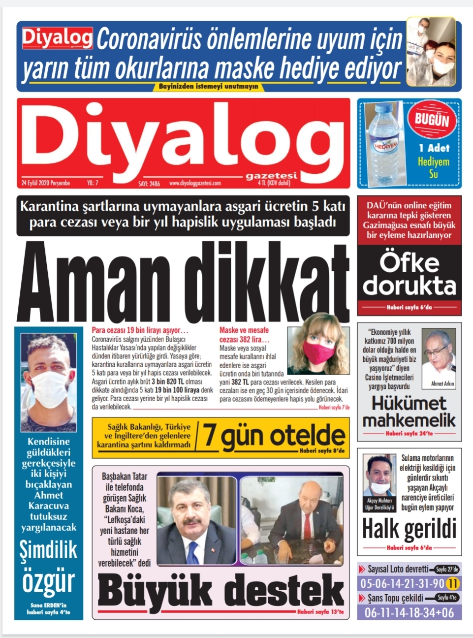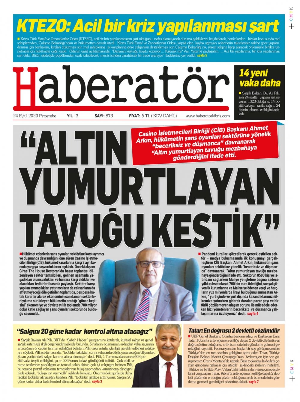 24 Eylül 2020 tarihinde KKTC’de yayınlanan gazete manşetleri