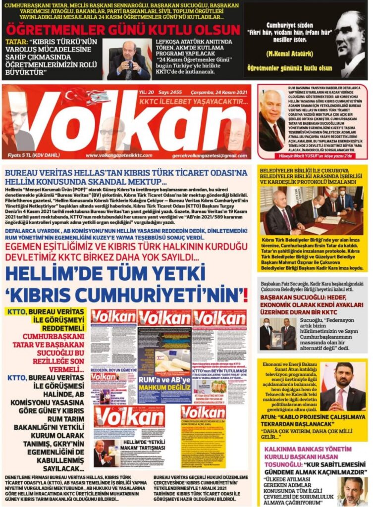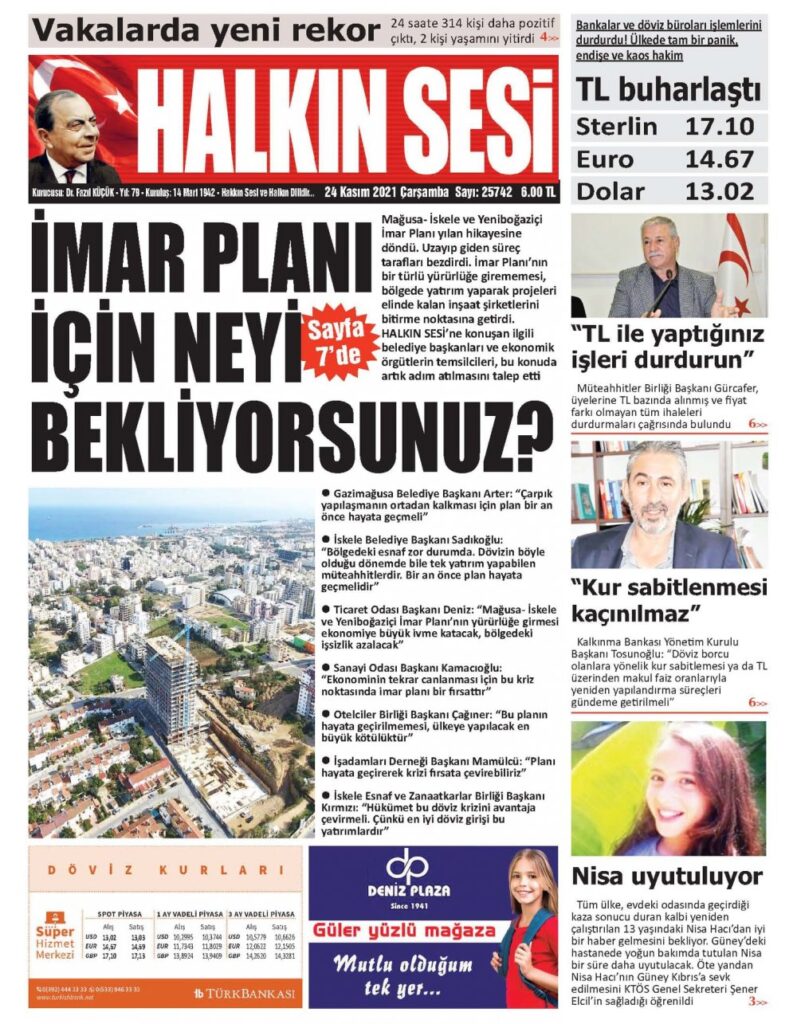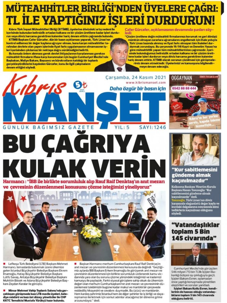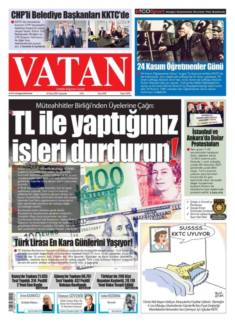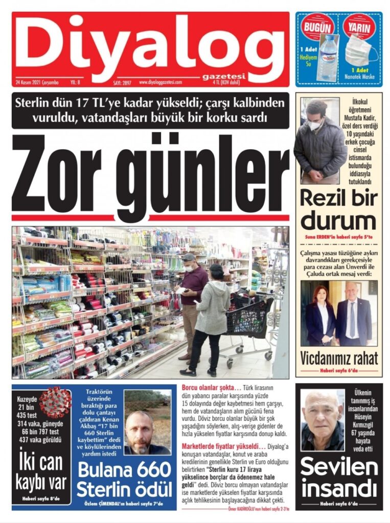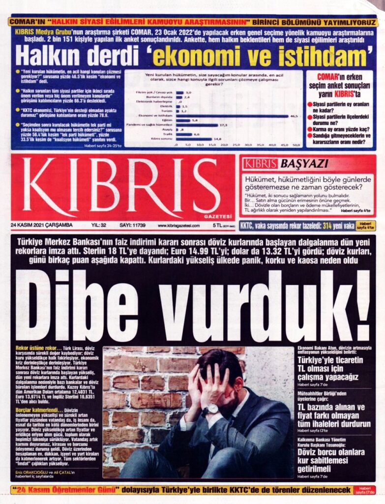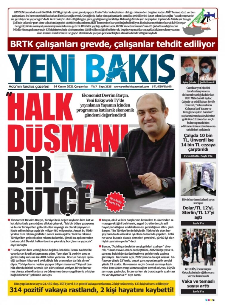 24 Kasım 2021’de KKTC’de yayınlanan gazete manşetleri