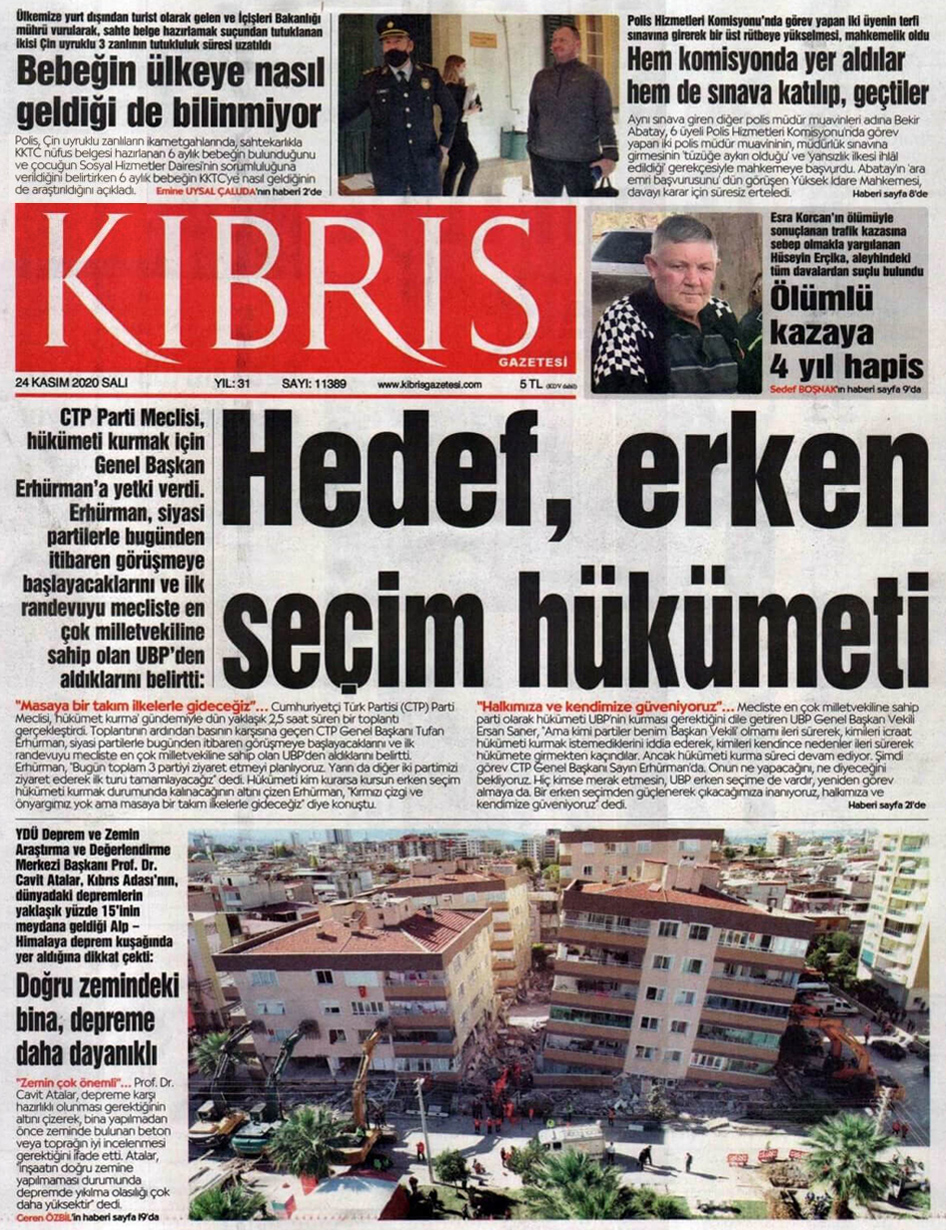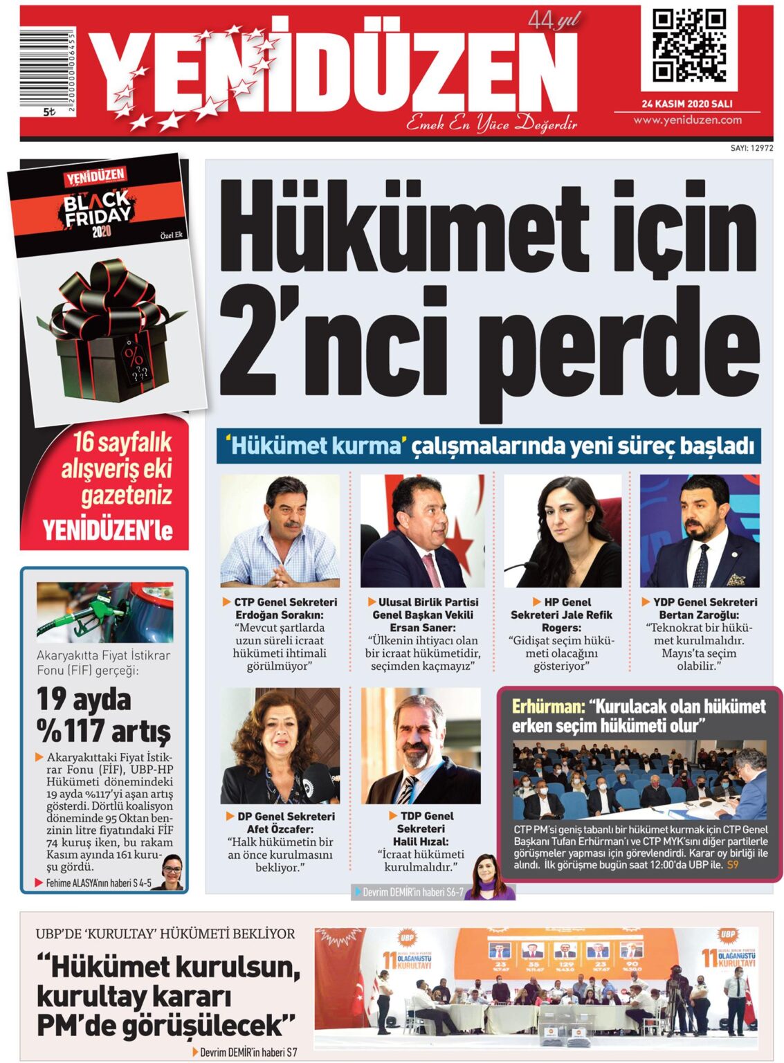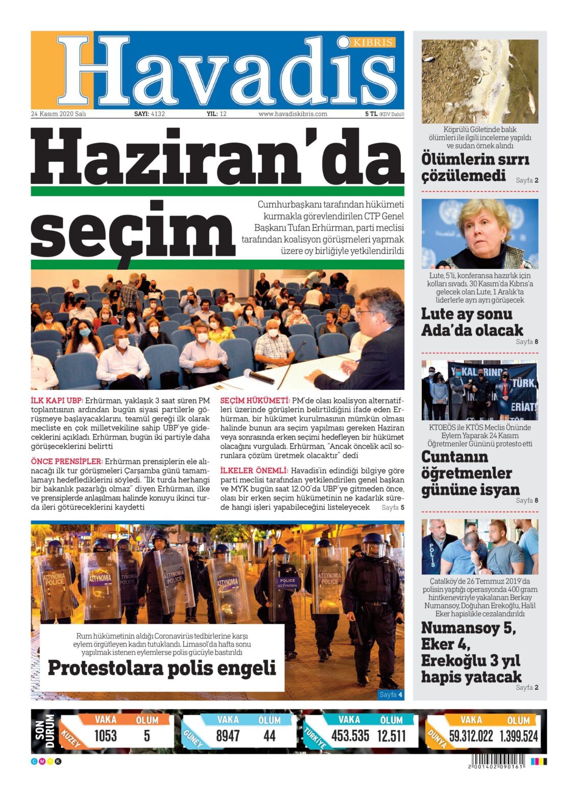24 Kasım 2020 tarihinde KKTC’de yayınlanan gazete manşetleri