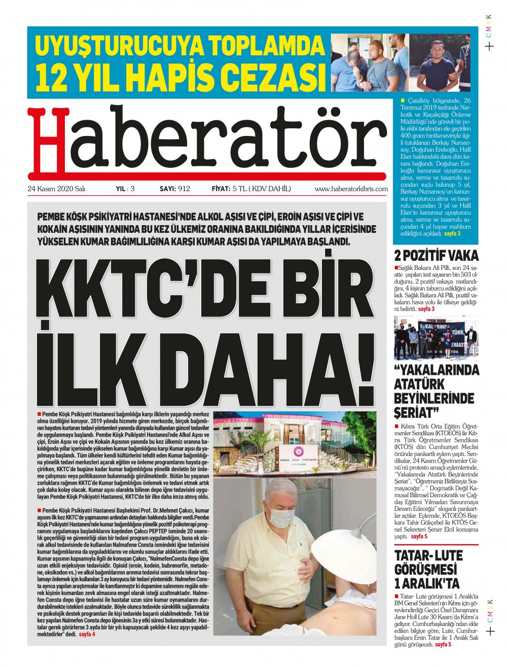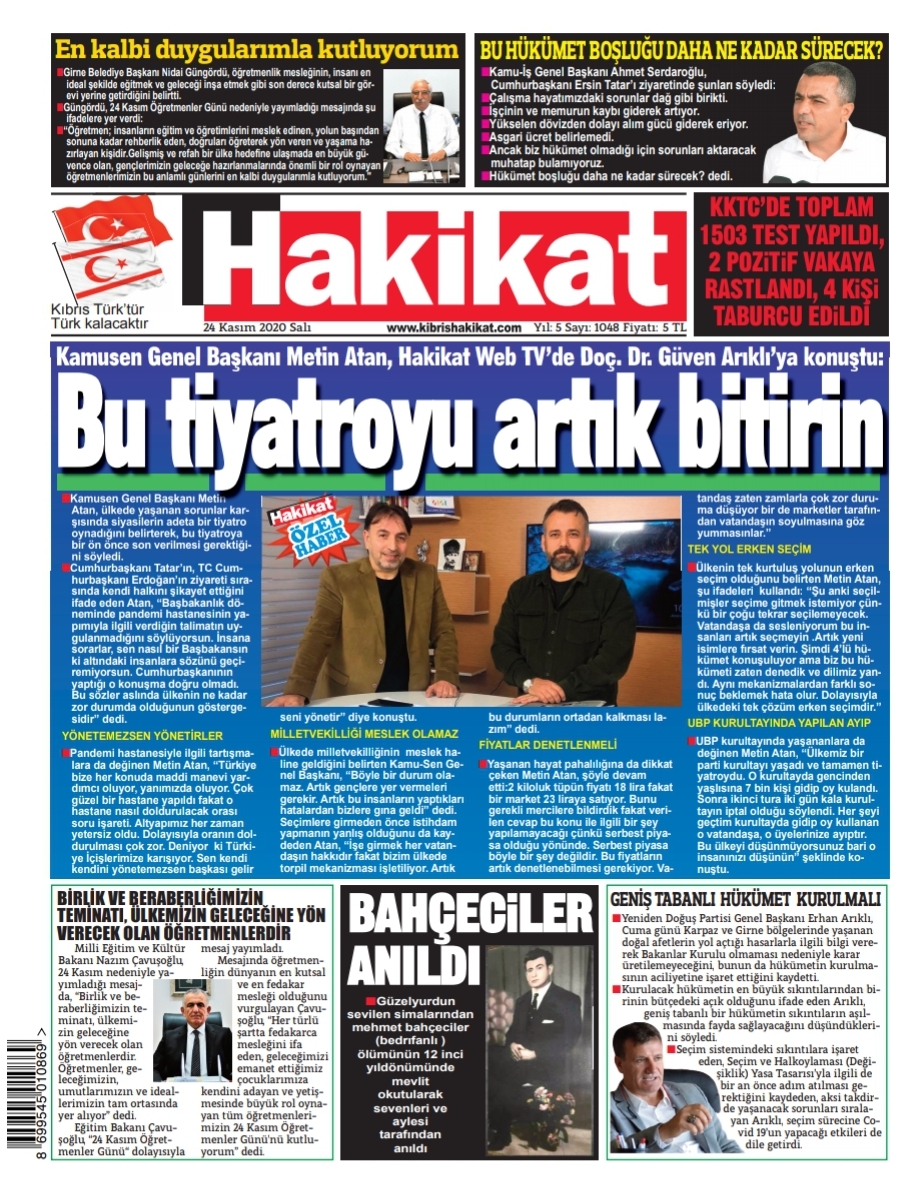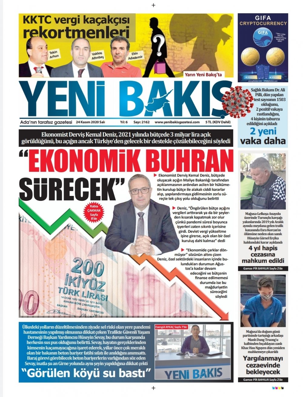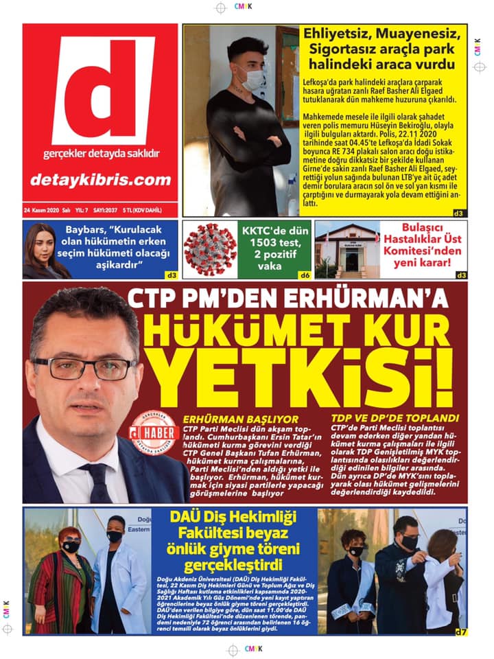 24 Kasım 2020 tarihinde KKTC’de yayınlanan gazete manşetleri