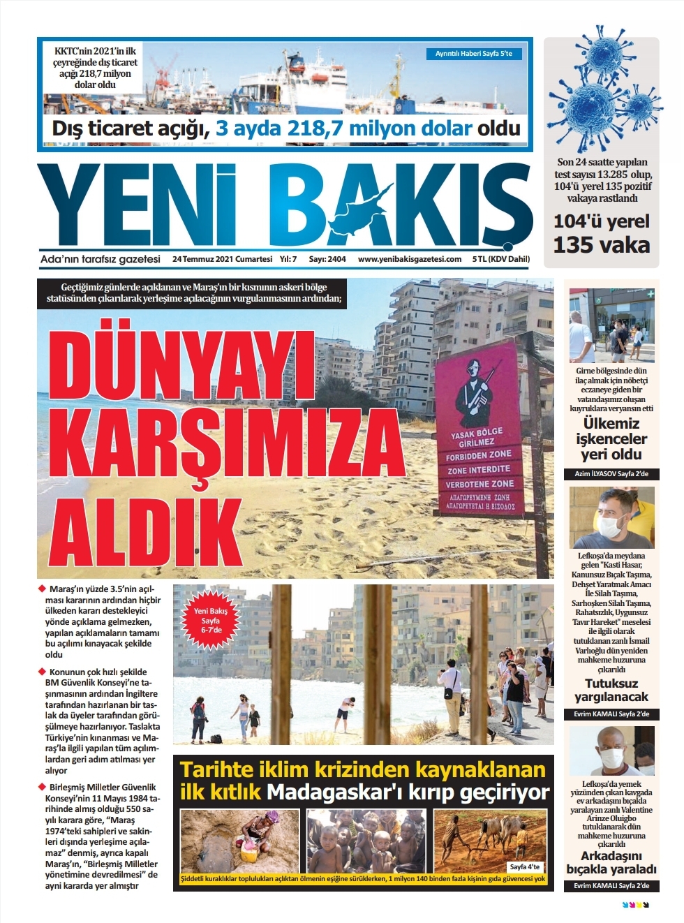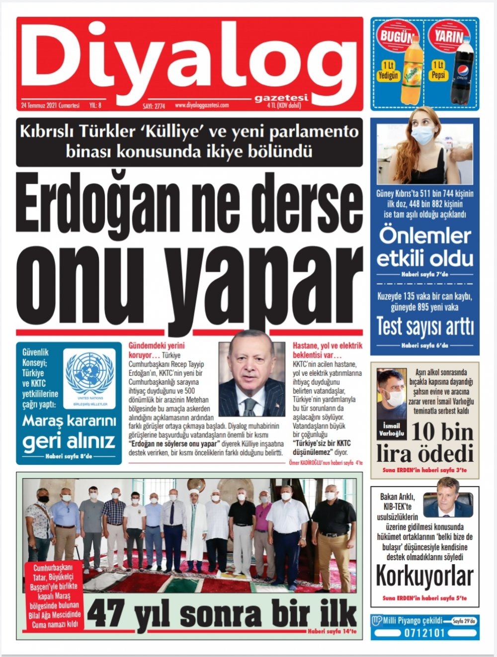 24 Temmuz 2021’de KKTC’de yayınlanan gazete manşetleri