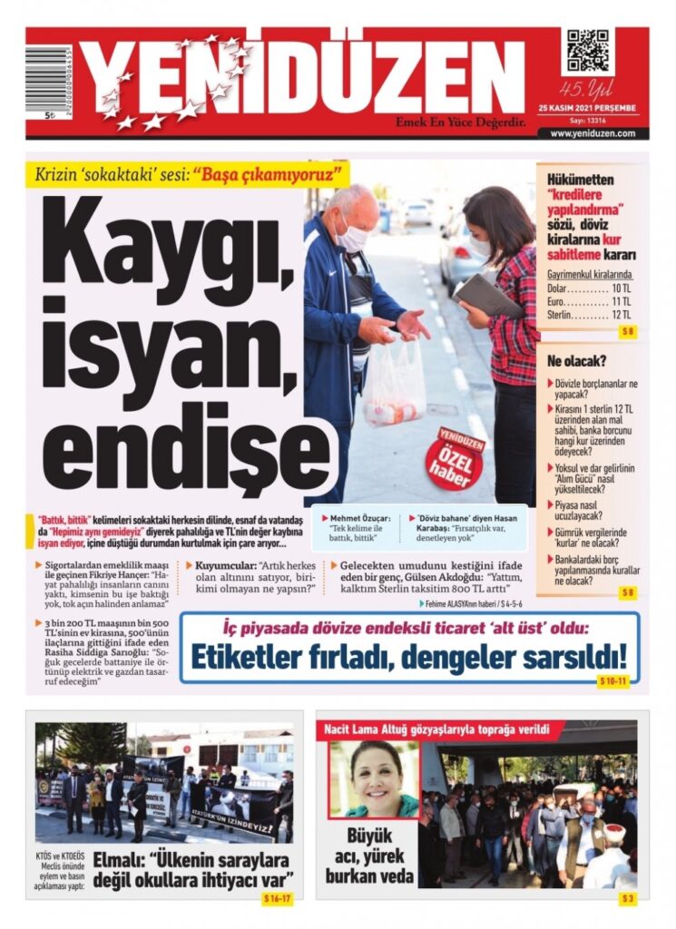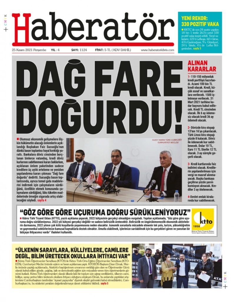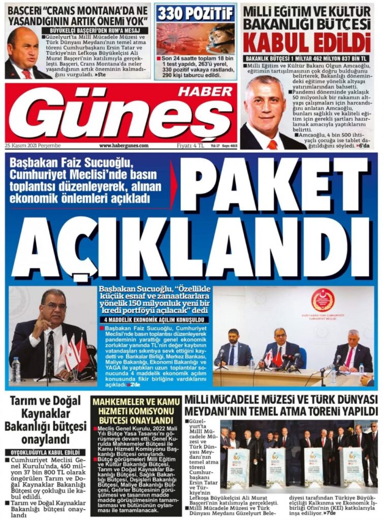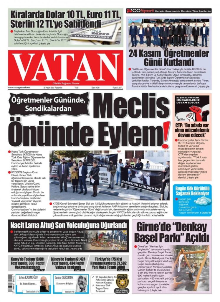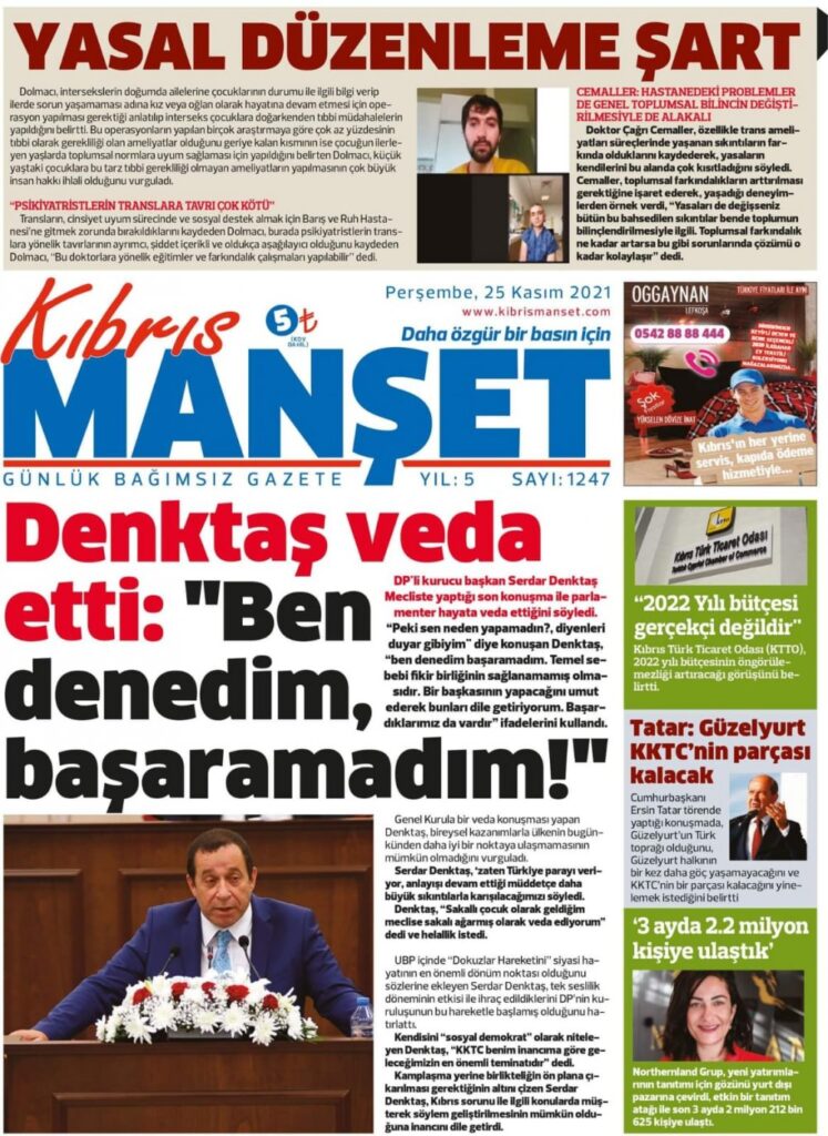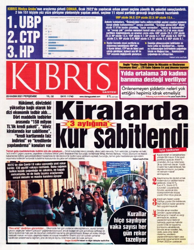 25 Kasım 2021’de KKTC’de yayınlanan gazete manşetleri