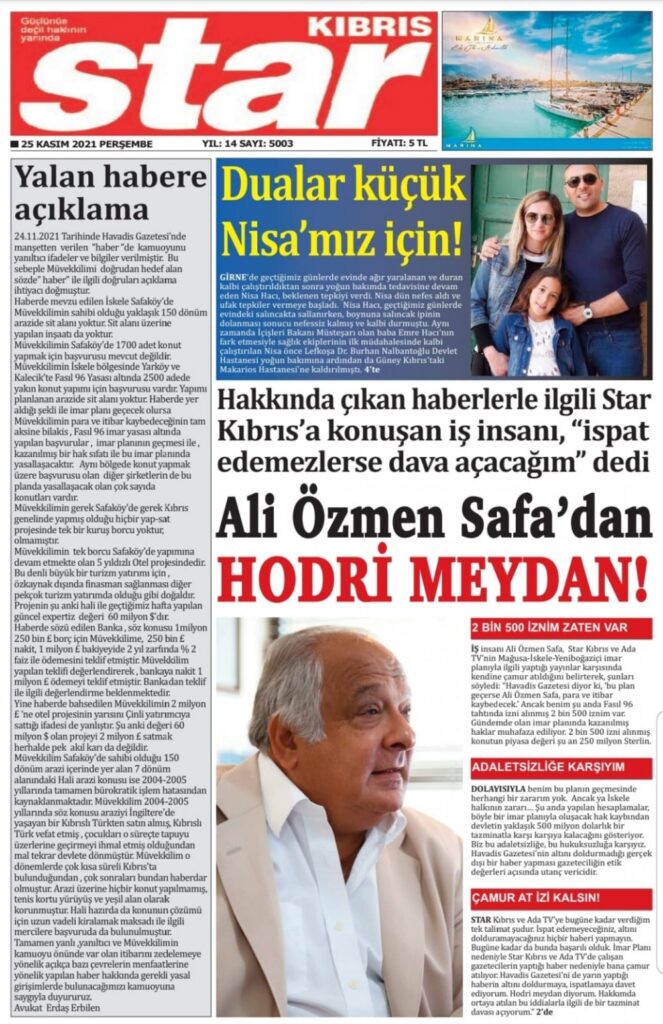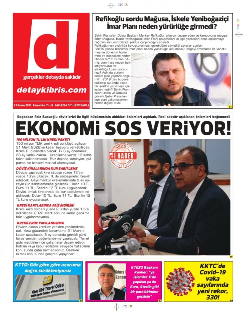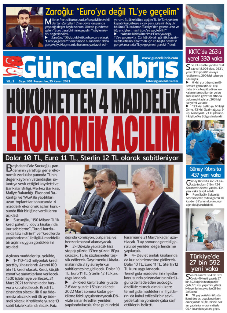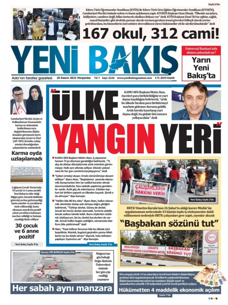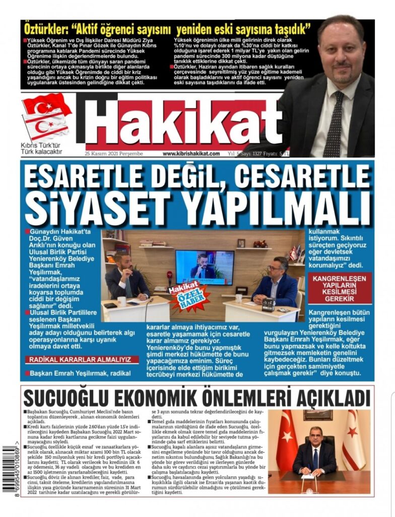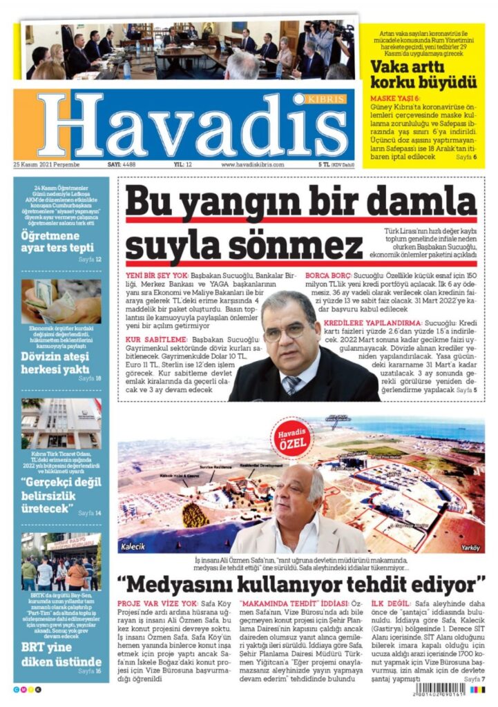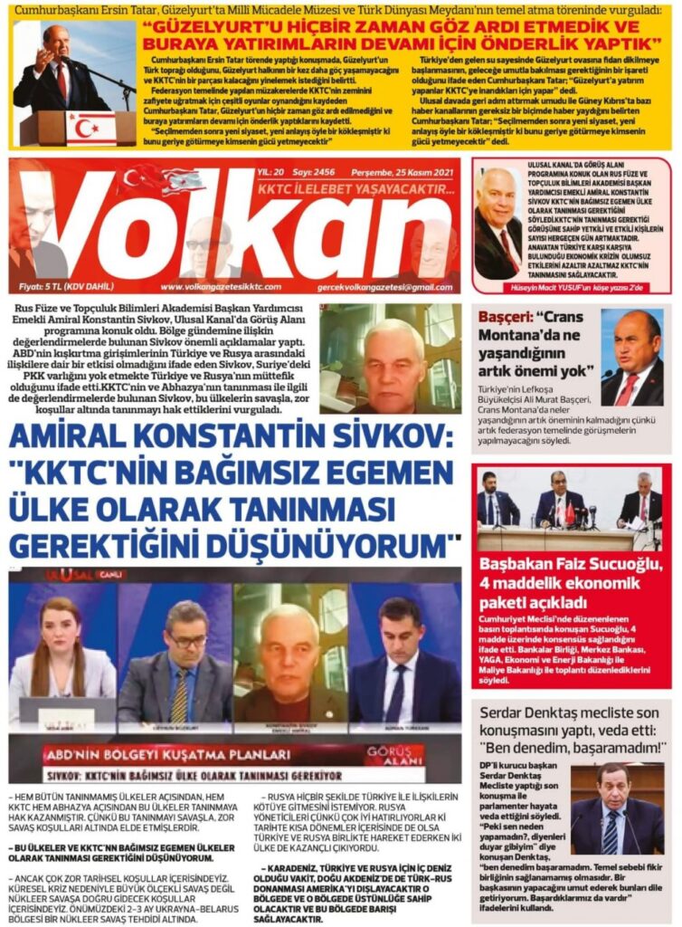 25 Kasım 2021’de KKTC’de yayınlanan gazete manşetleri