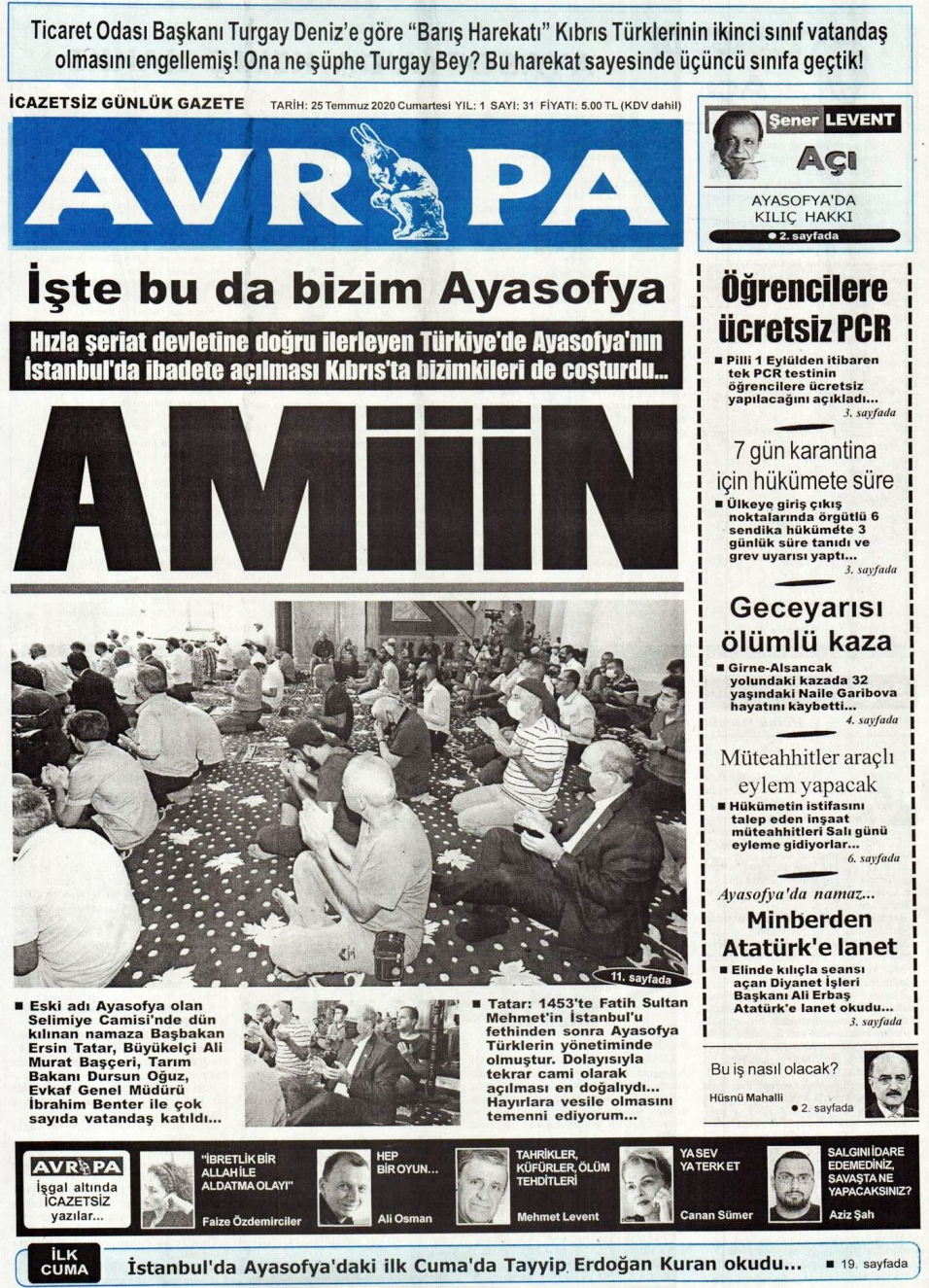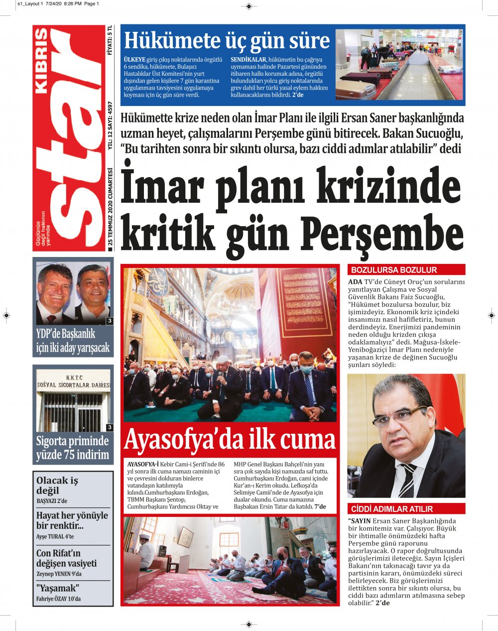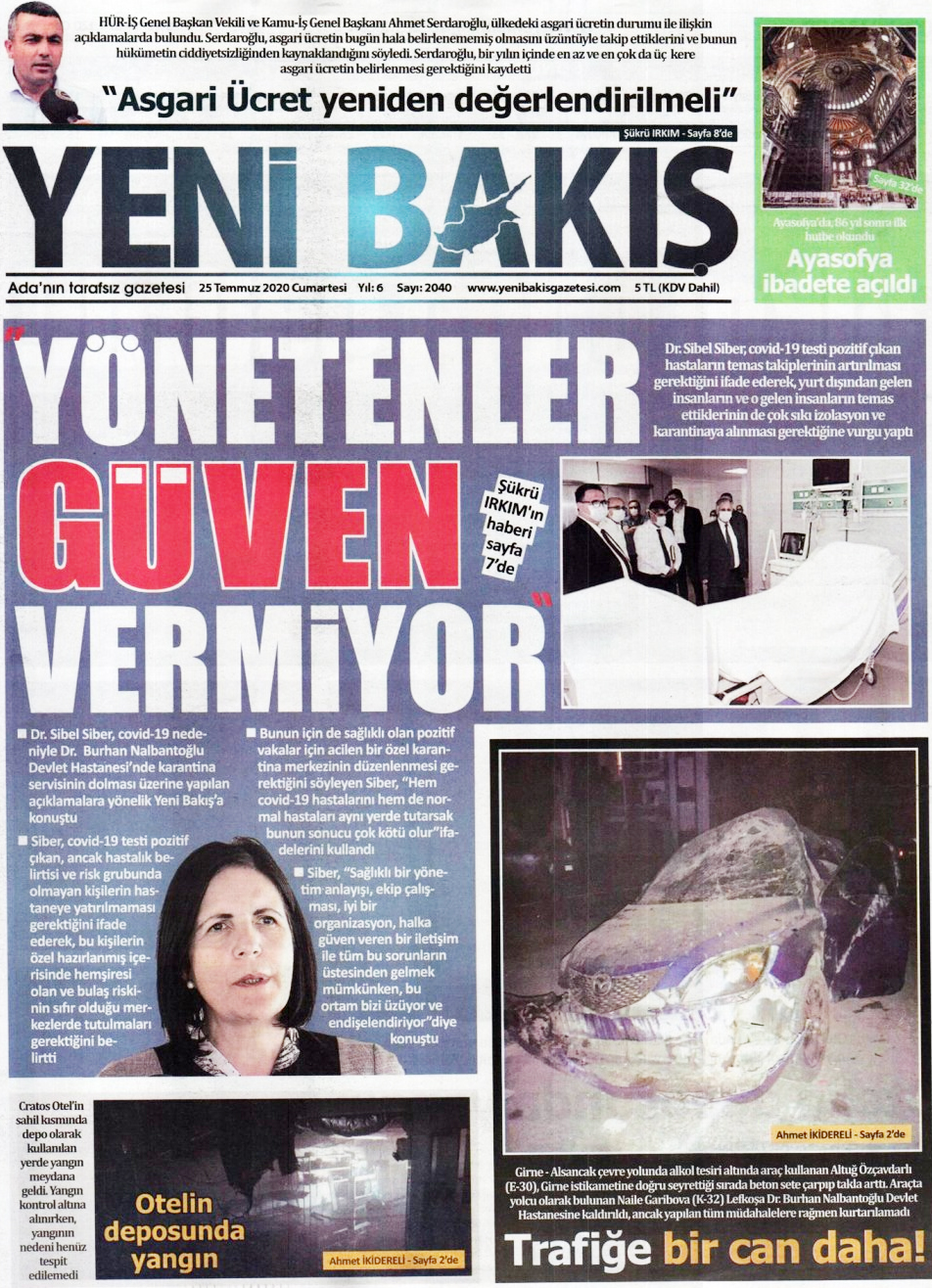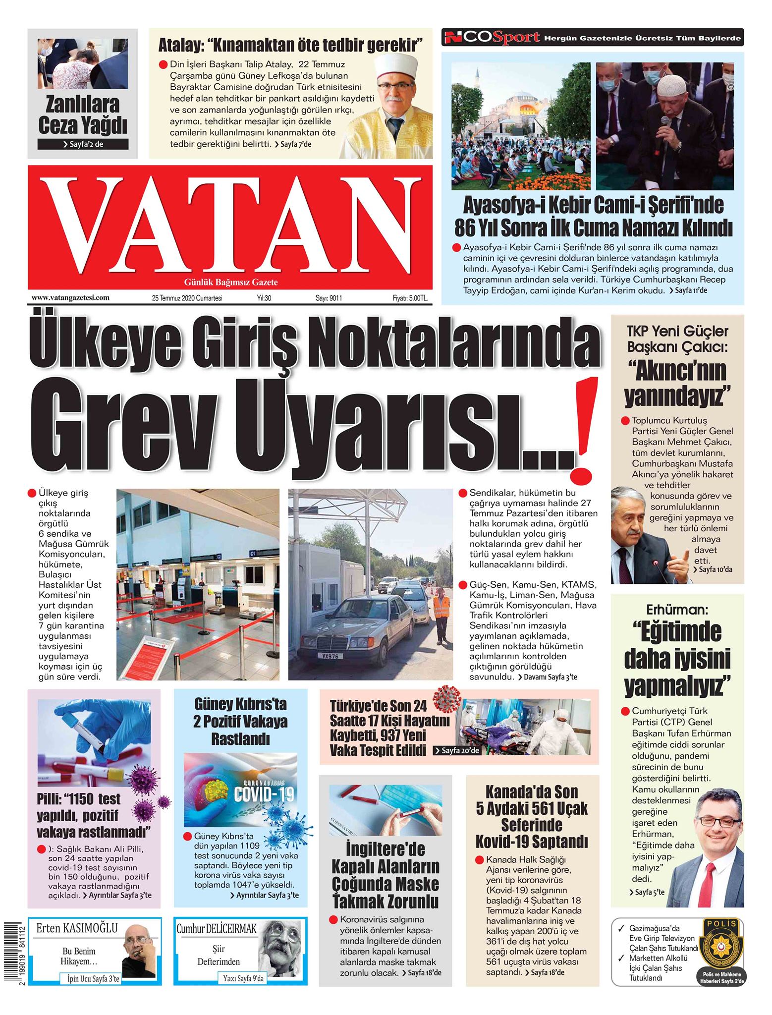 25 Temmuz 2020 tarihinde KKTC yayınlanan gazete manşetleri
