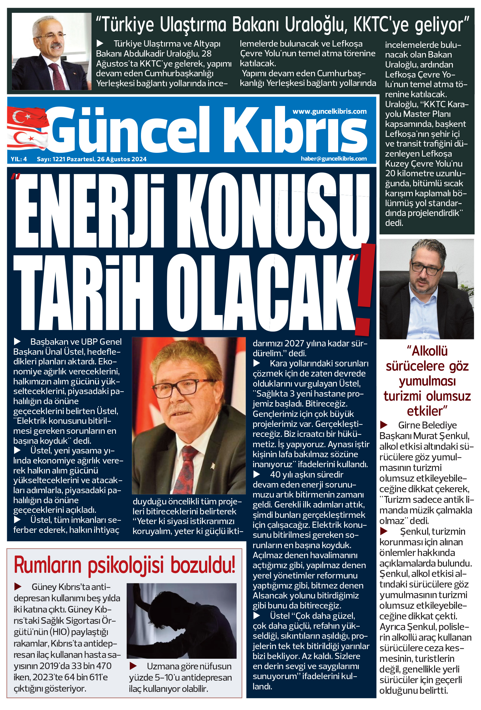 26 Ağustos 2024’te KKTC’de yayınlanan gazete manşetleri