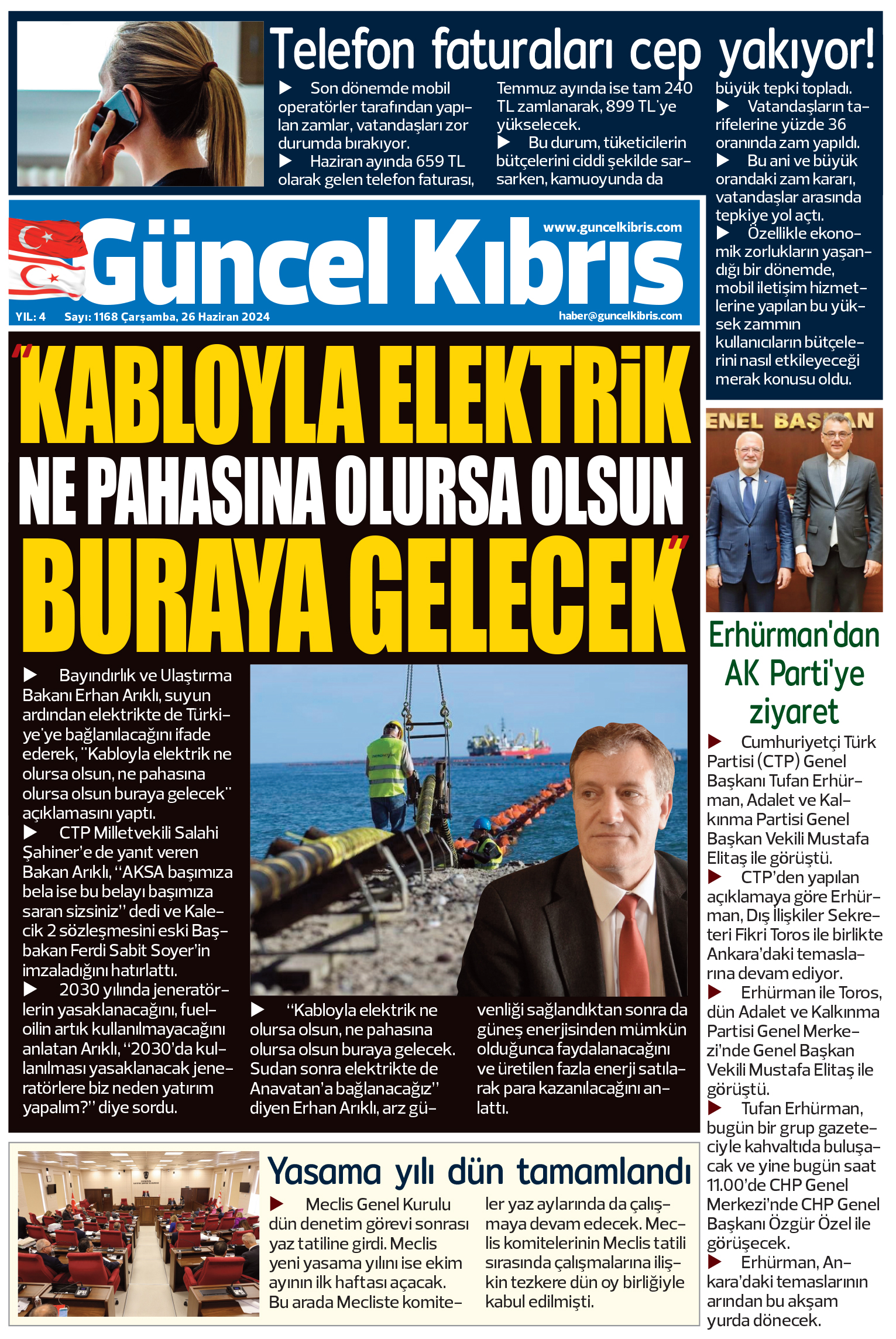 26 Haziran 2024’te KKTC’de yayınlanan gazete manşetleri