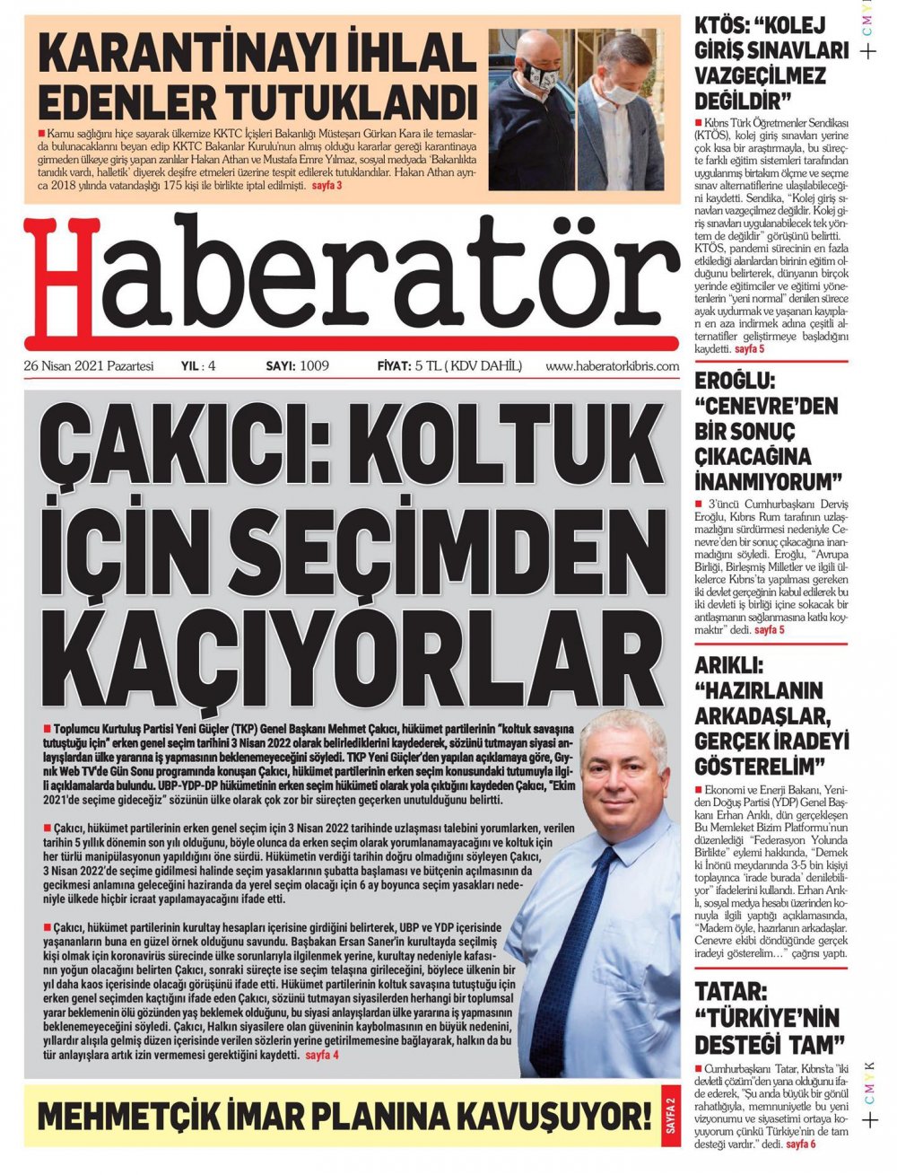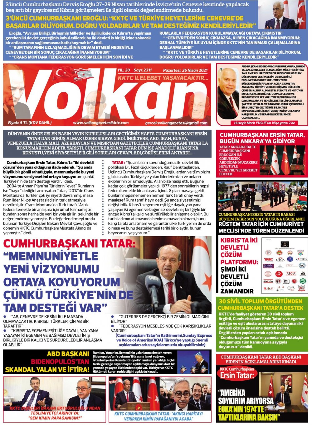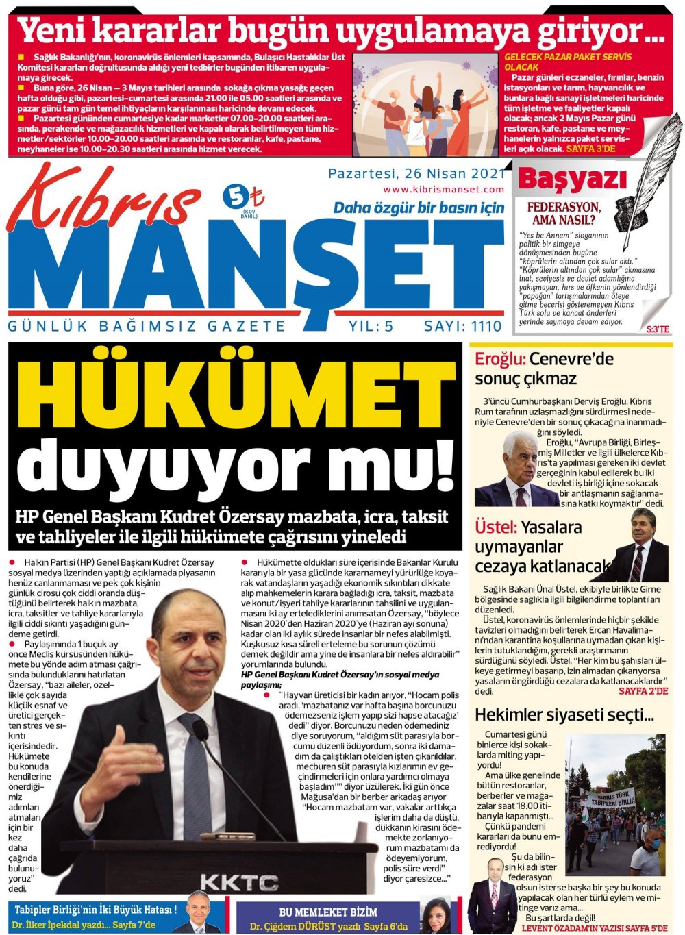 26 Nisan 2021’de KKTC’de yayınlanan gazete manşetleri
