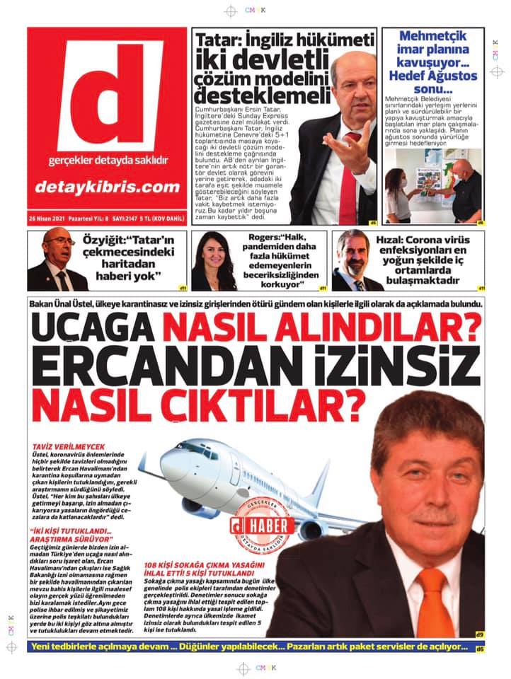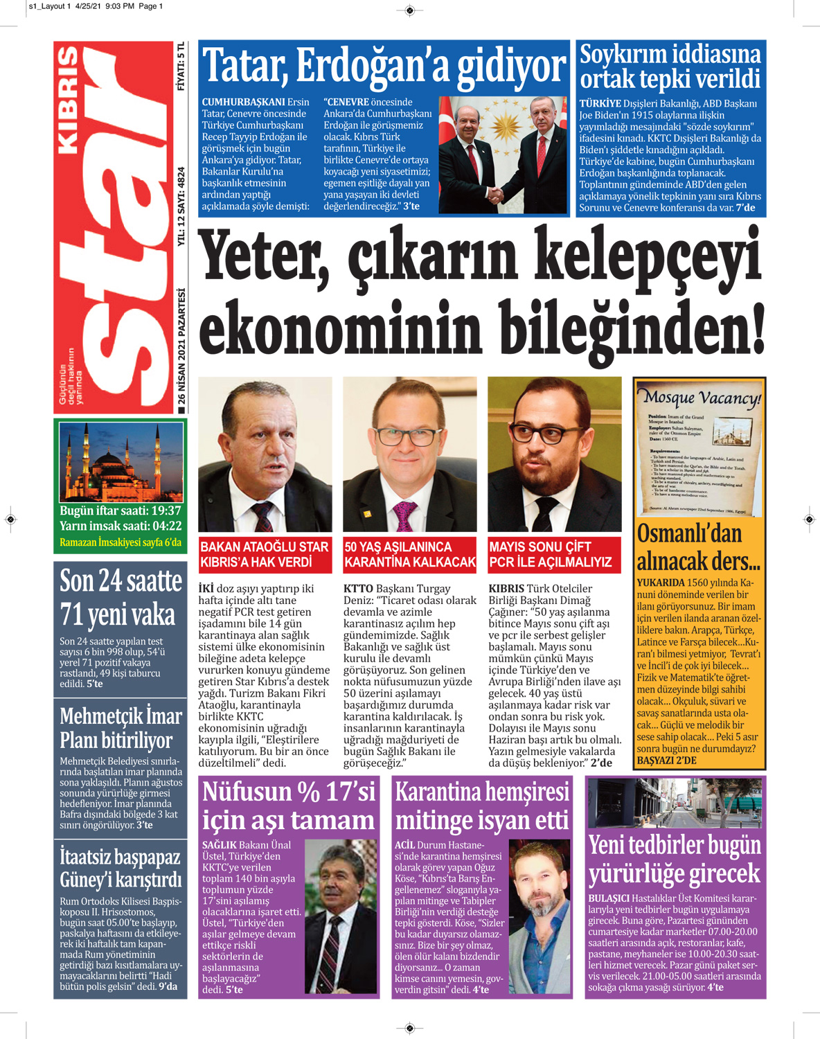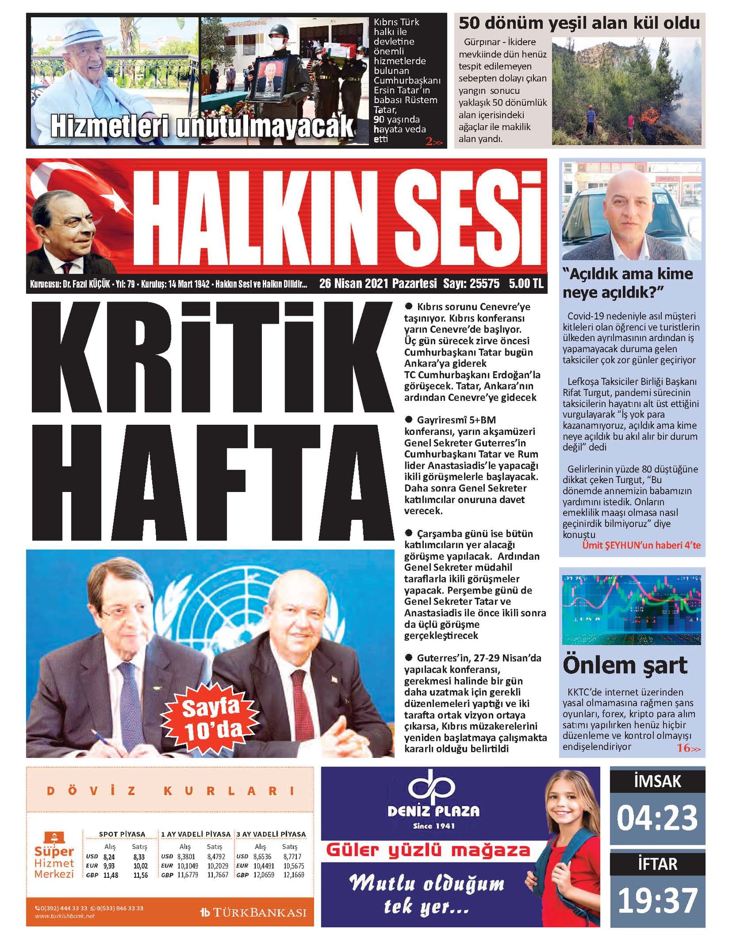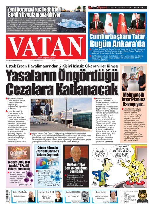 26 Nisan 2021’de KKTC’de yayınlanan gazete manşetleri
