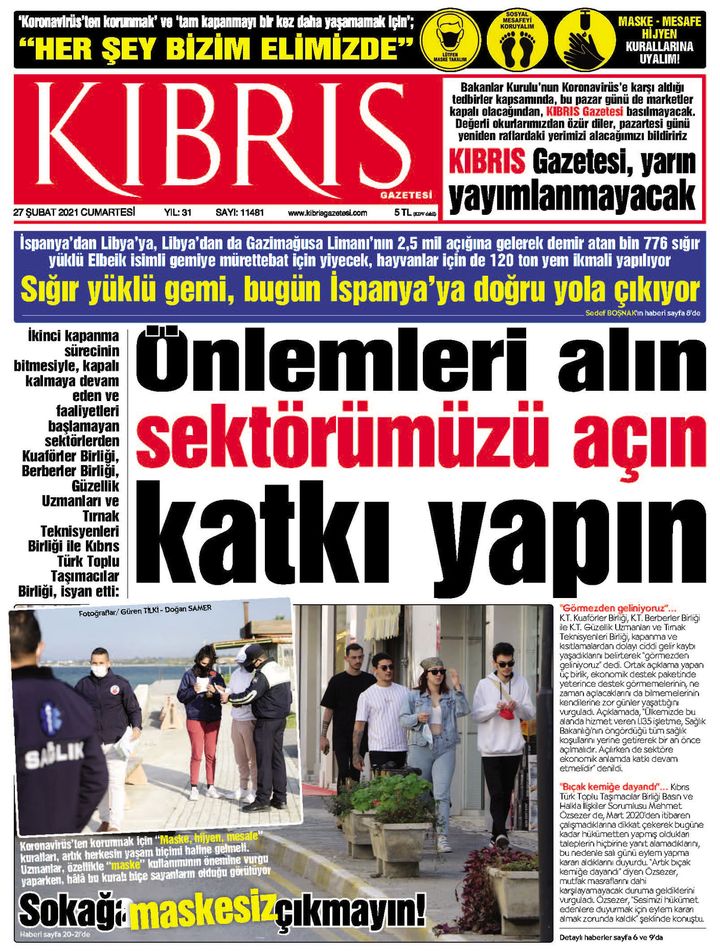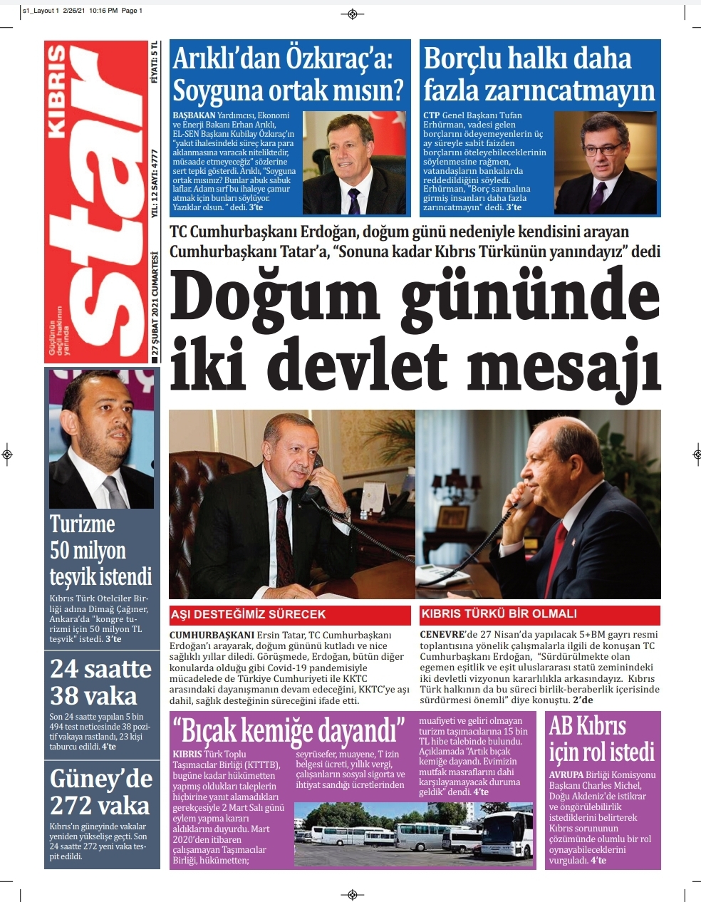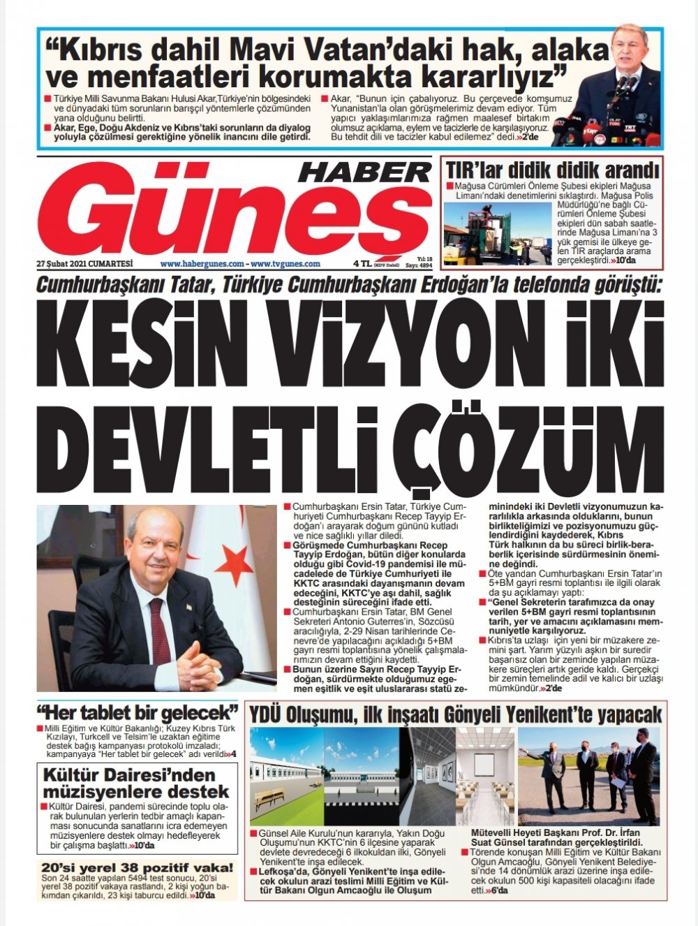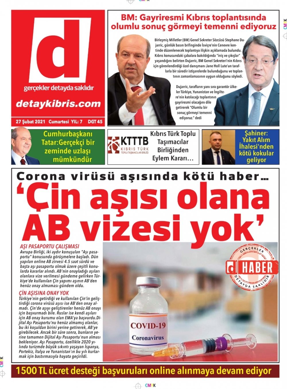 27 Ocak 2021 tarihinde KKTC’de yayınlanan gazete manşetleri