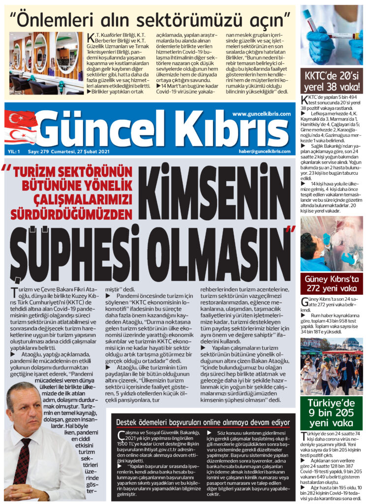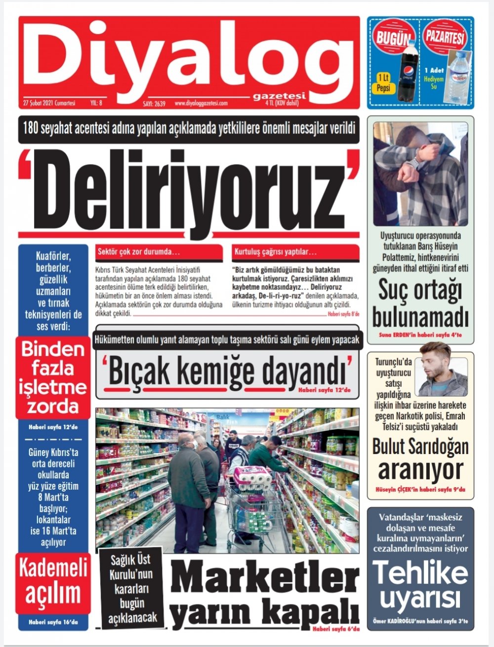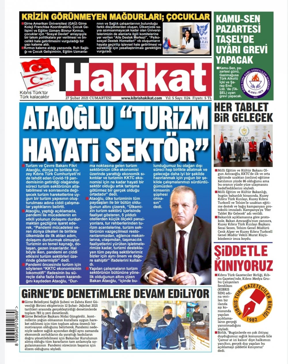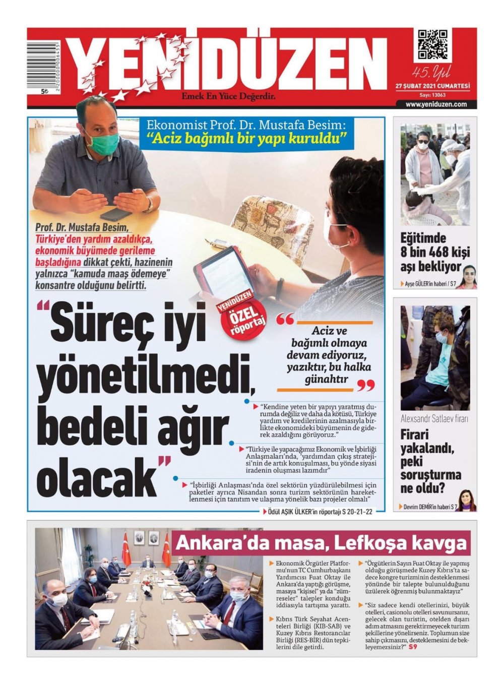 27 Ocak 2021 tarihinde KKTC’de yayınlanan gazete manşetleri
