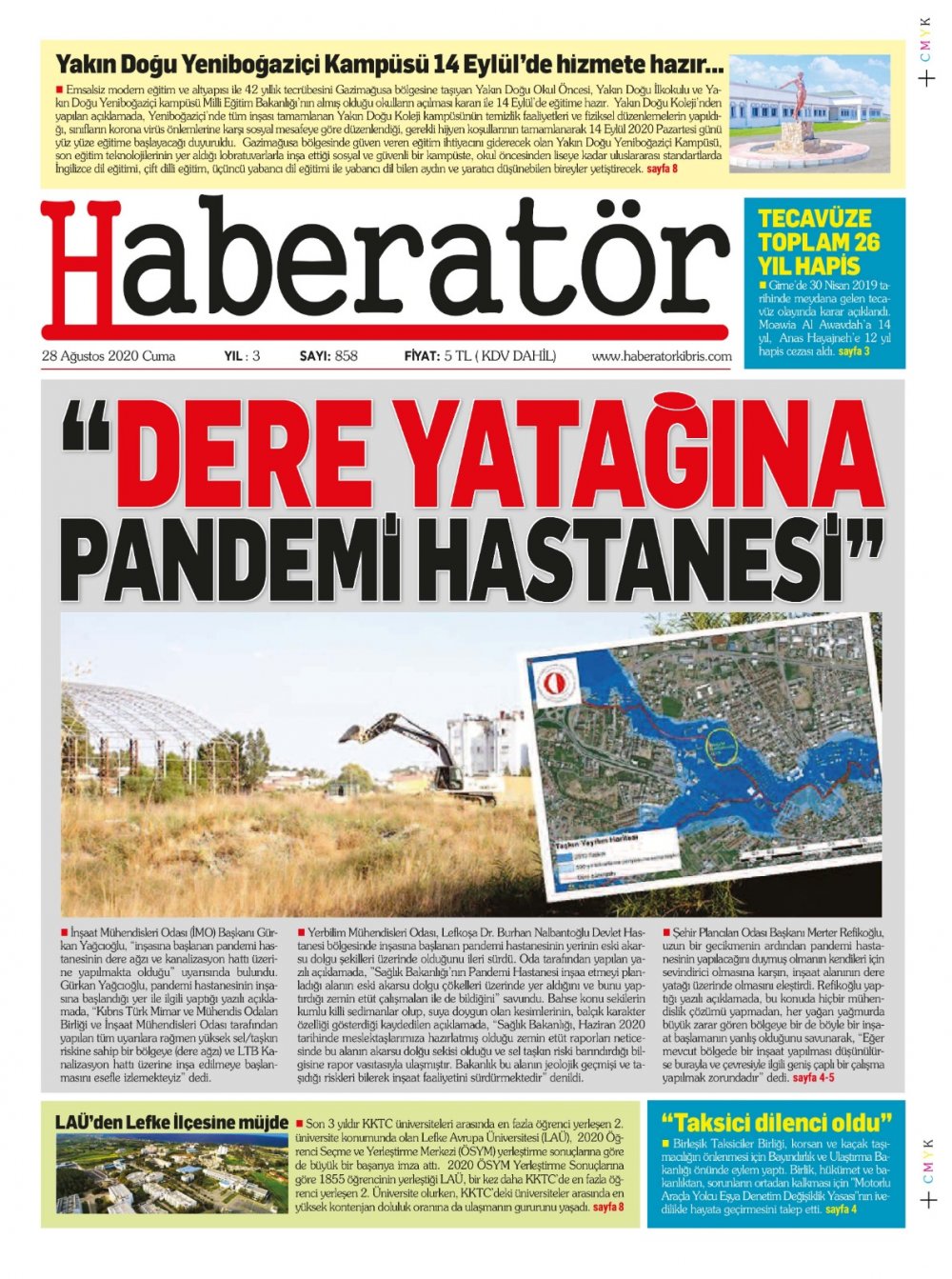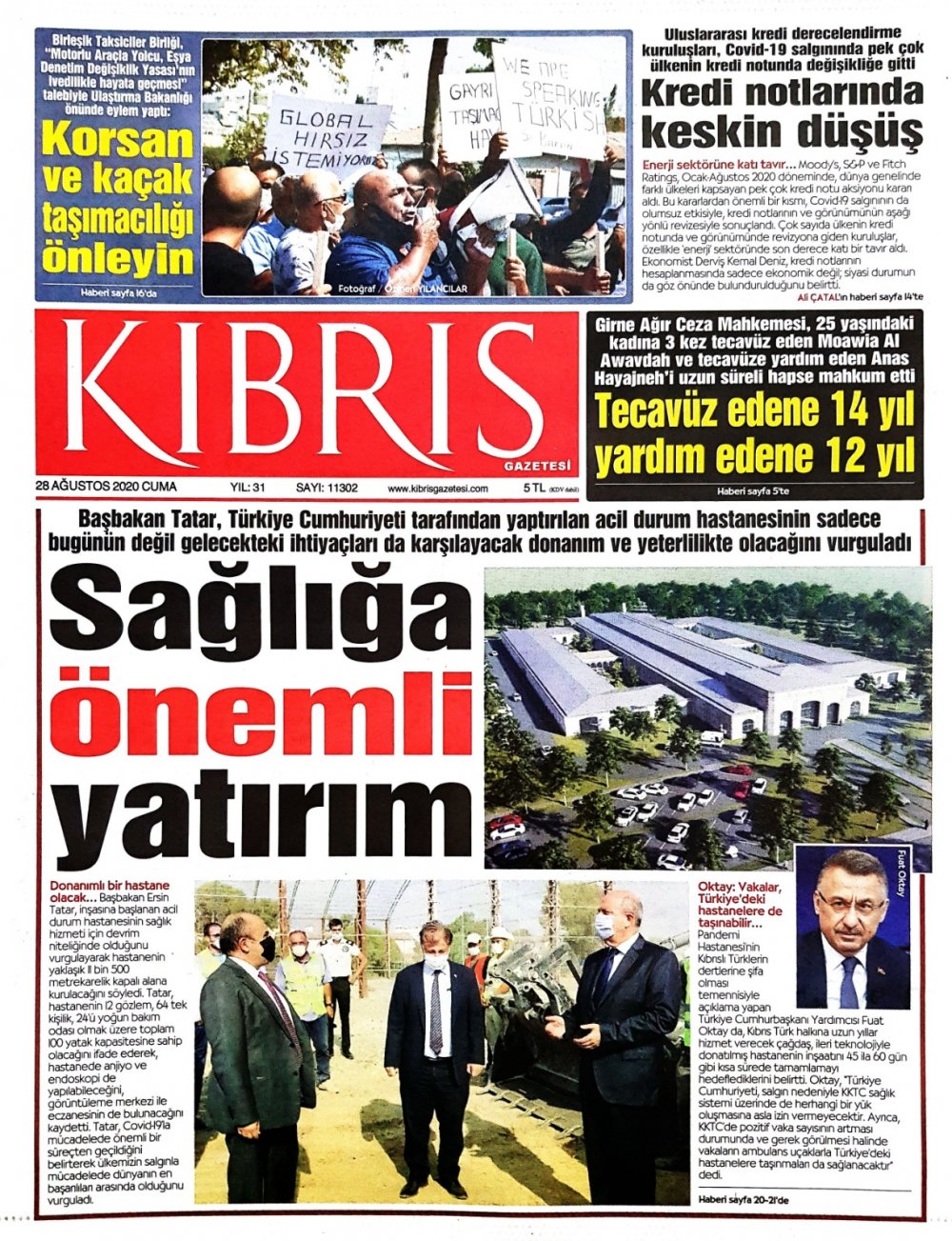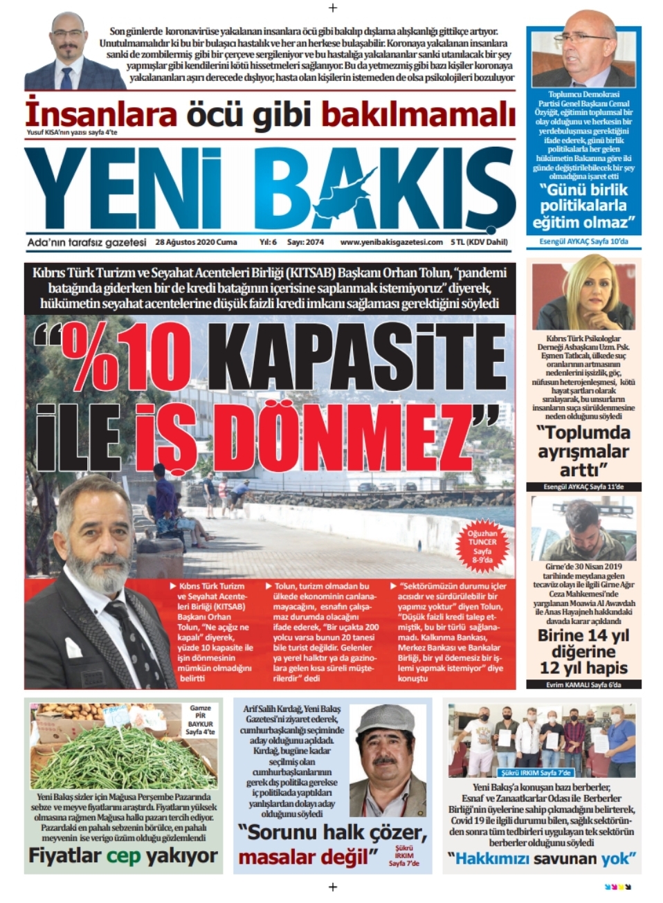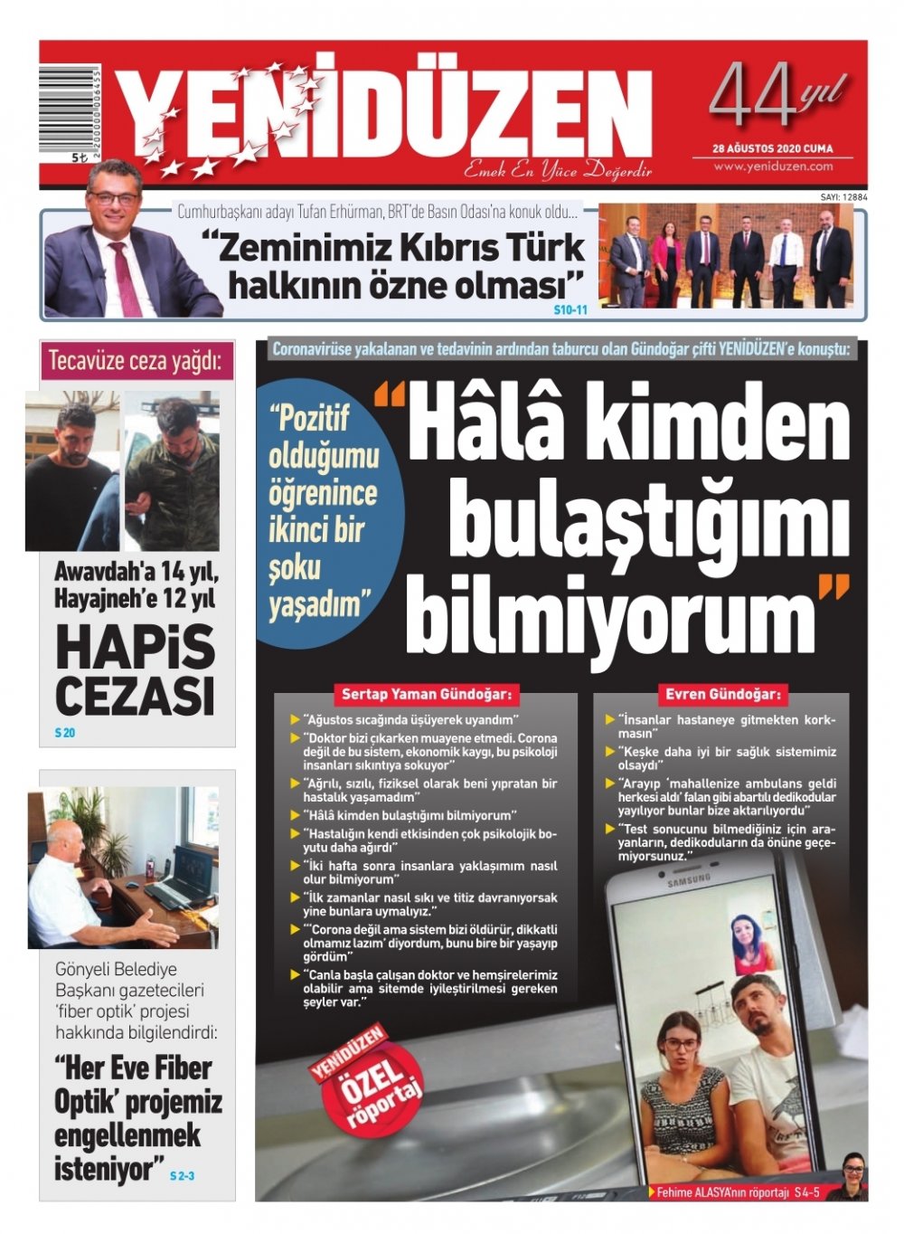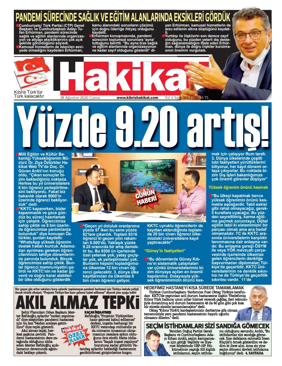 28 Ağustos 2020 tarihinde KKTC yayınlanan gazete manşetleri