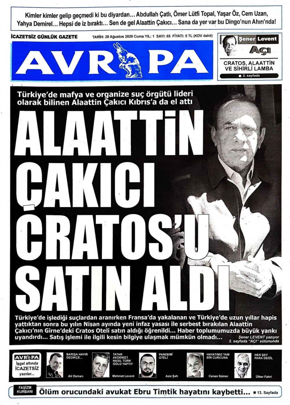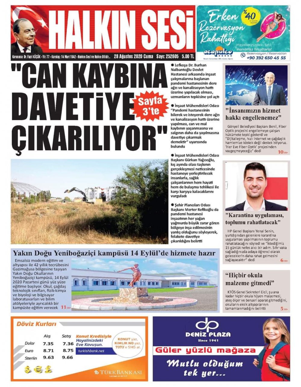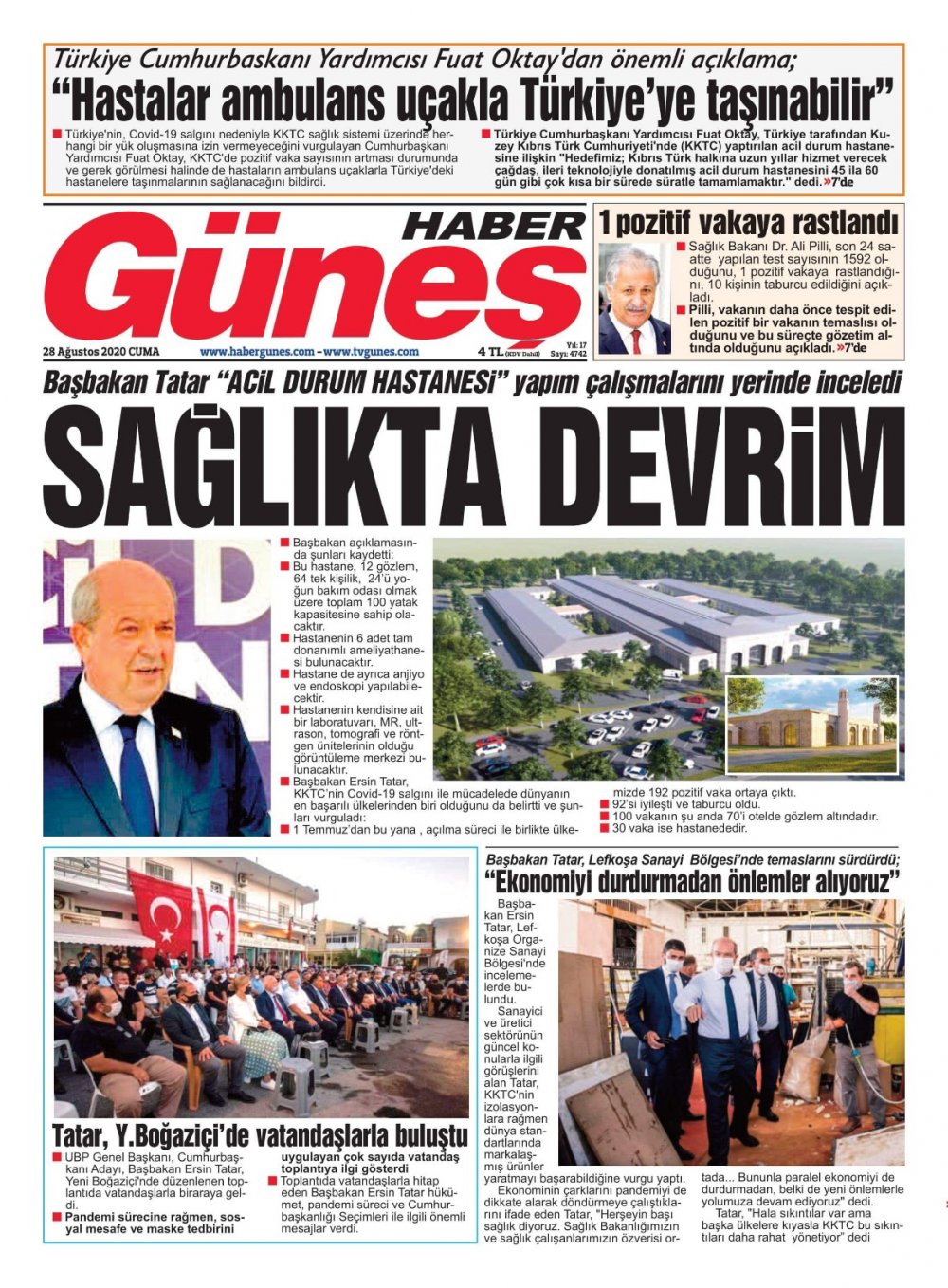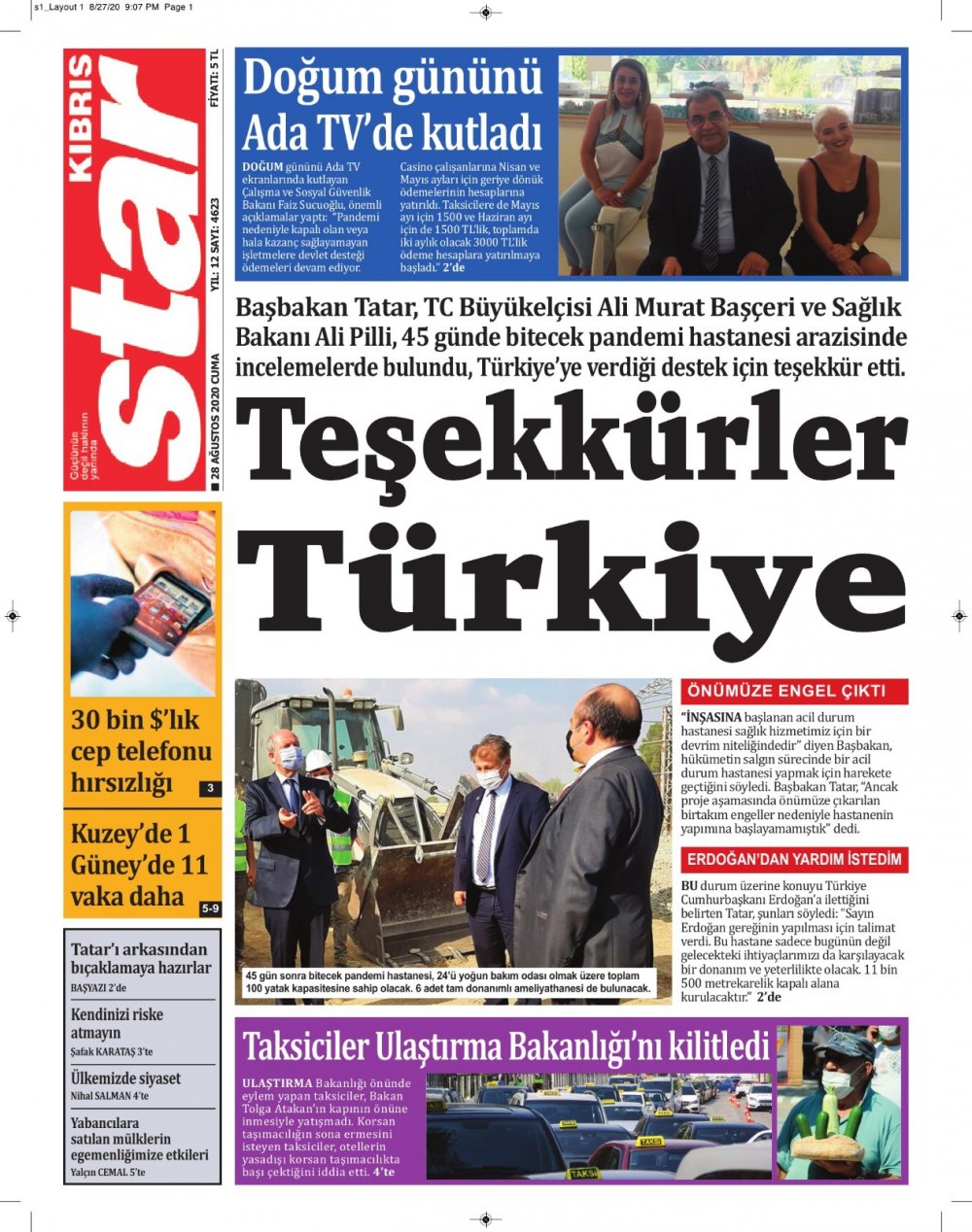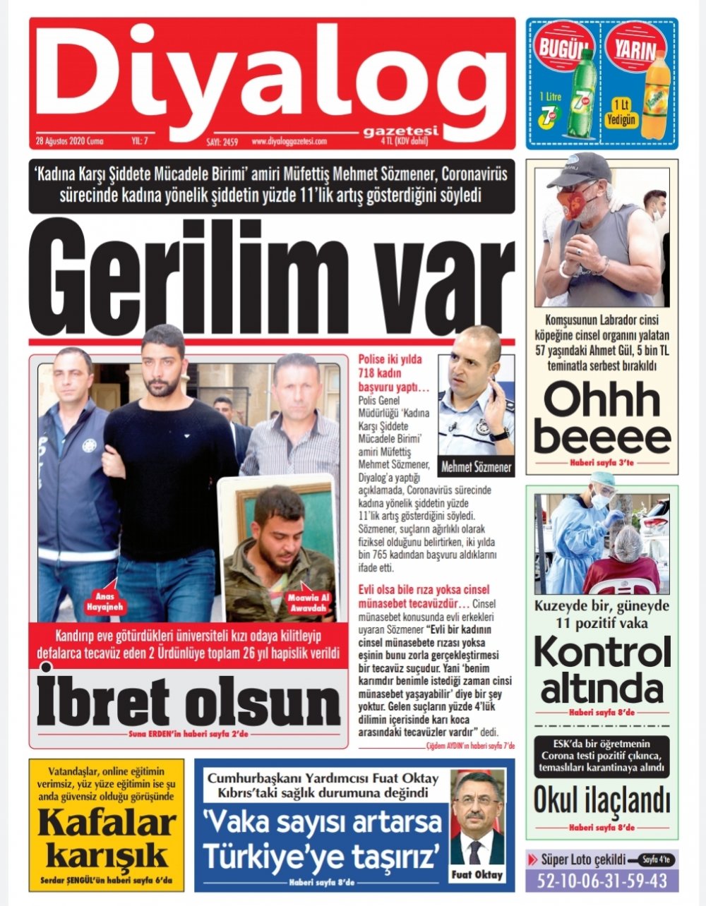 28 Ağustos 2020 tarihinde KKTC yayınlanan gazete manşetleri