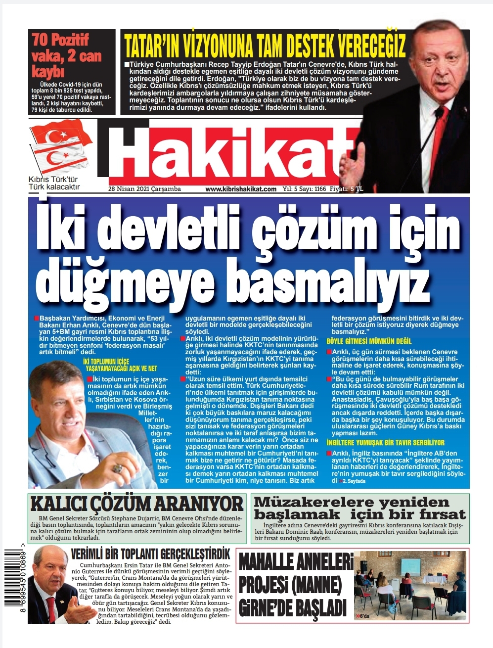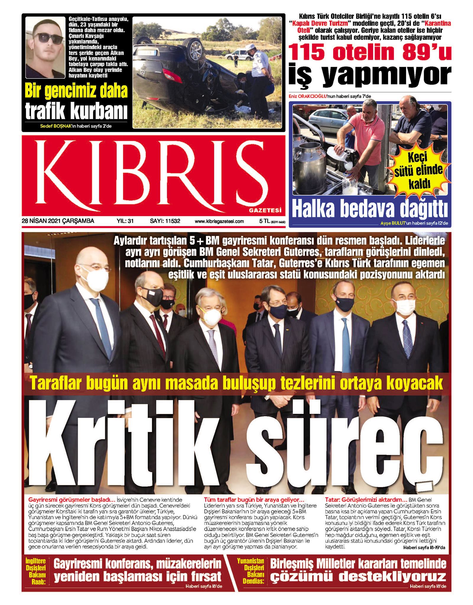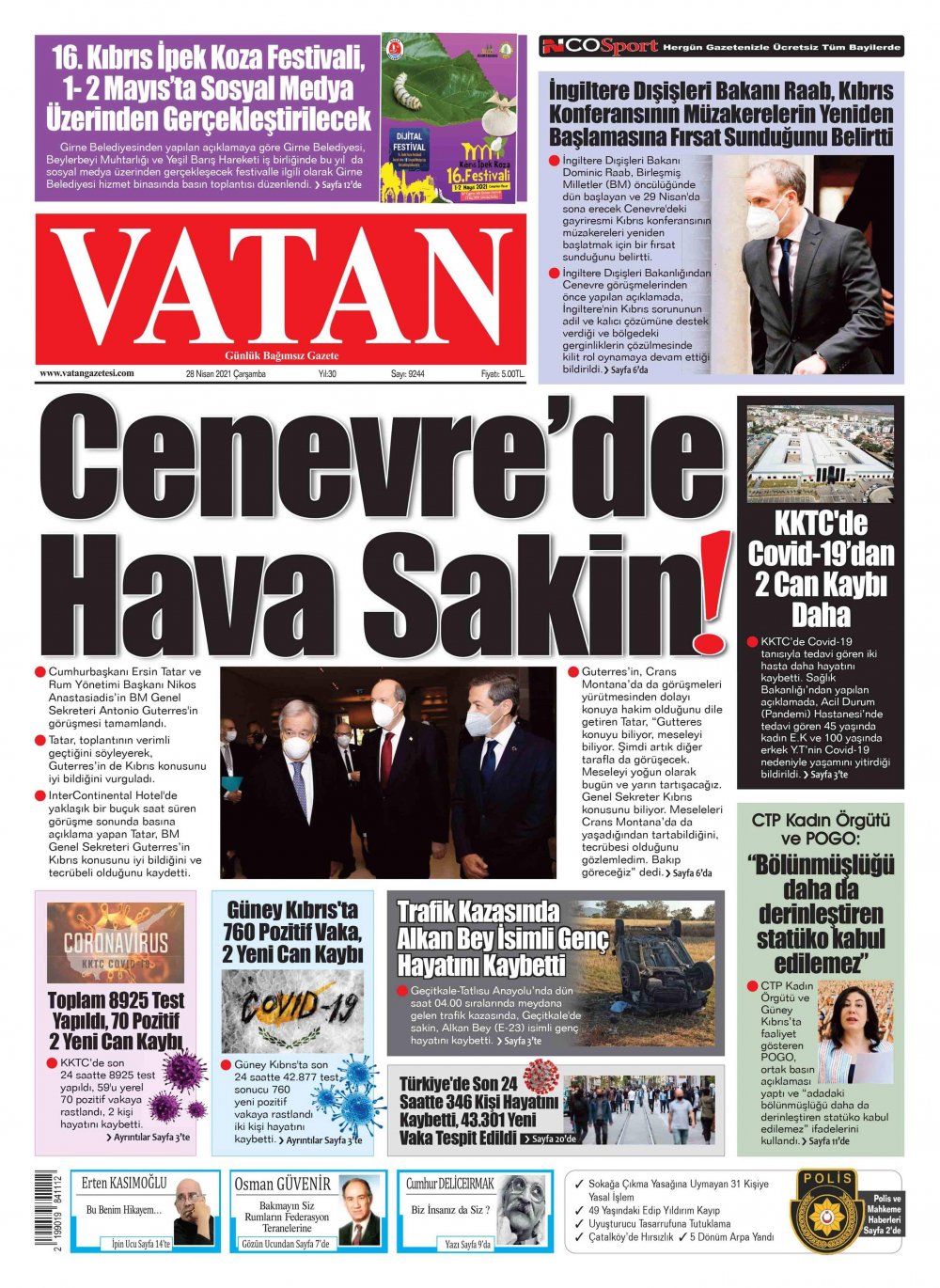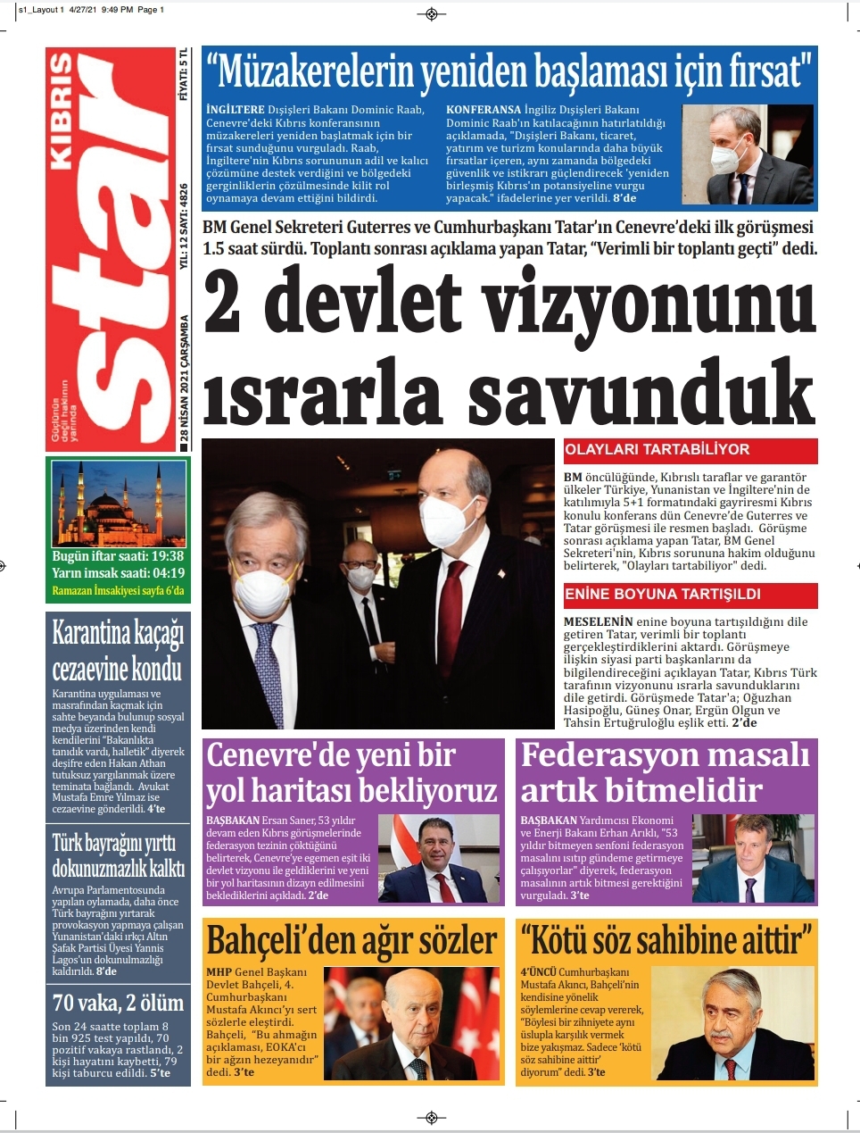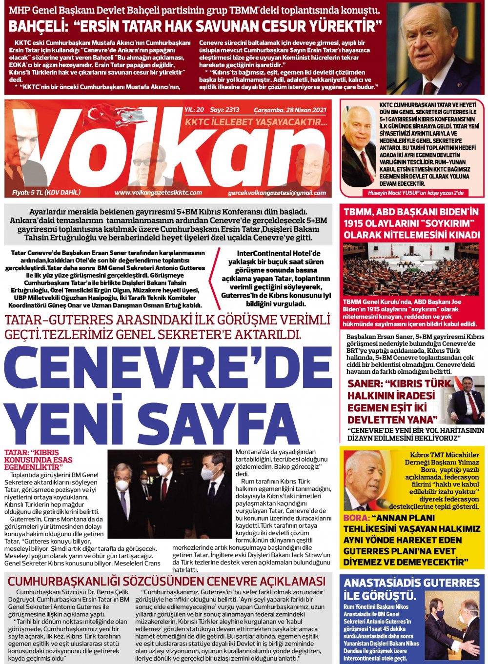 28 Nisan 2021’de KKTC’de yayınlanan gazete manşetleri