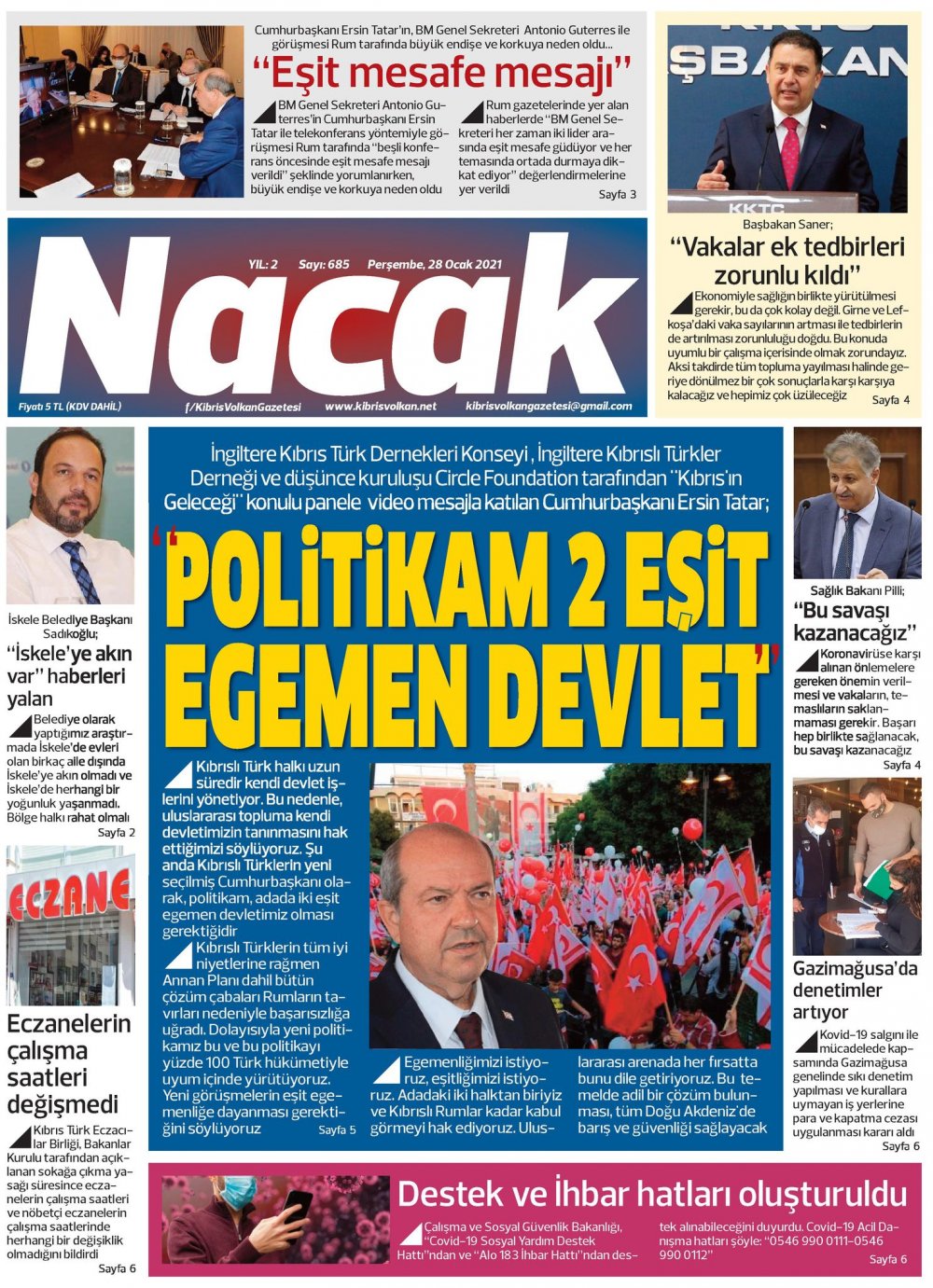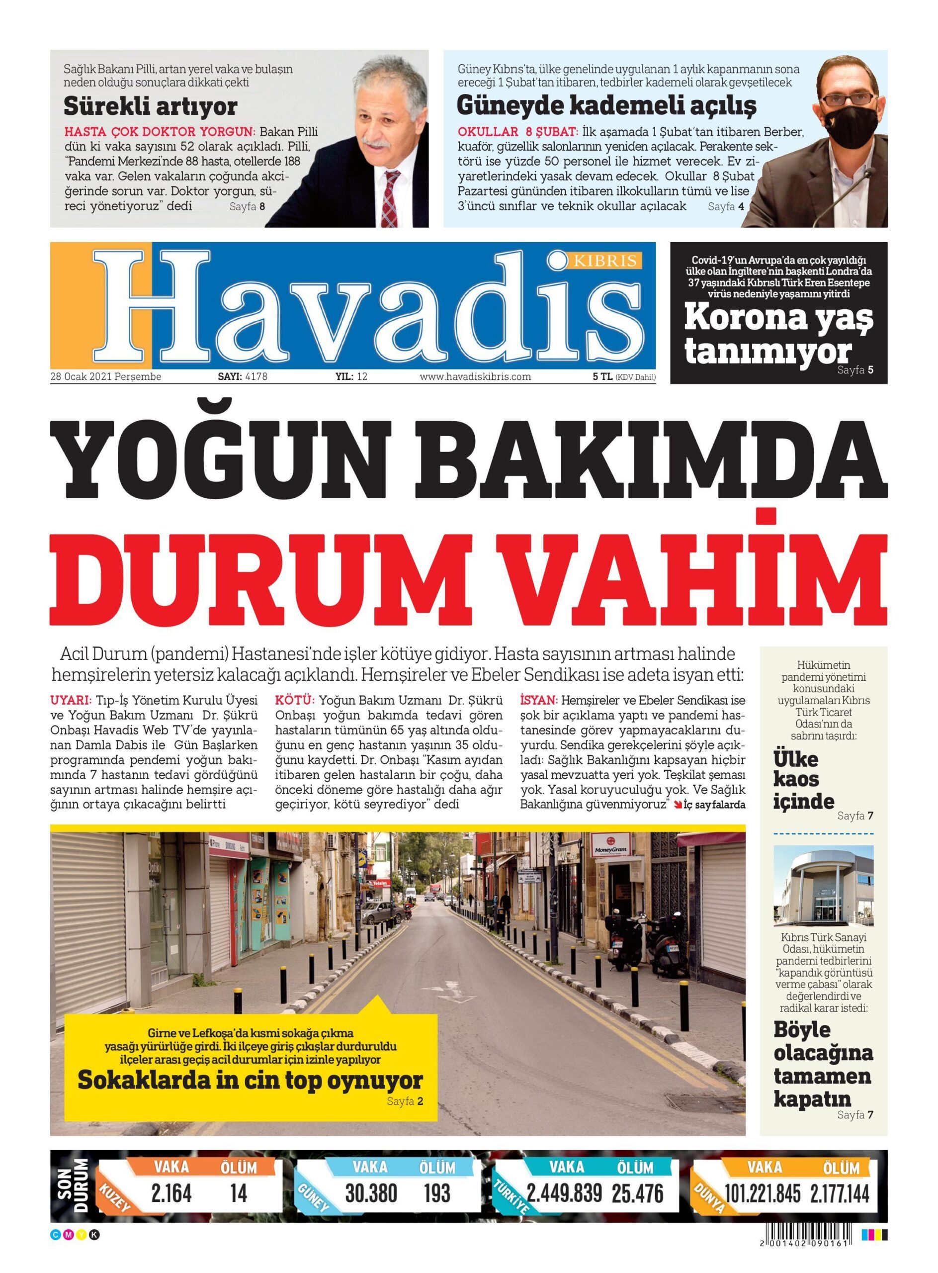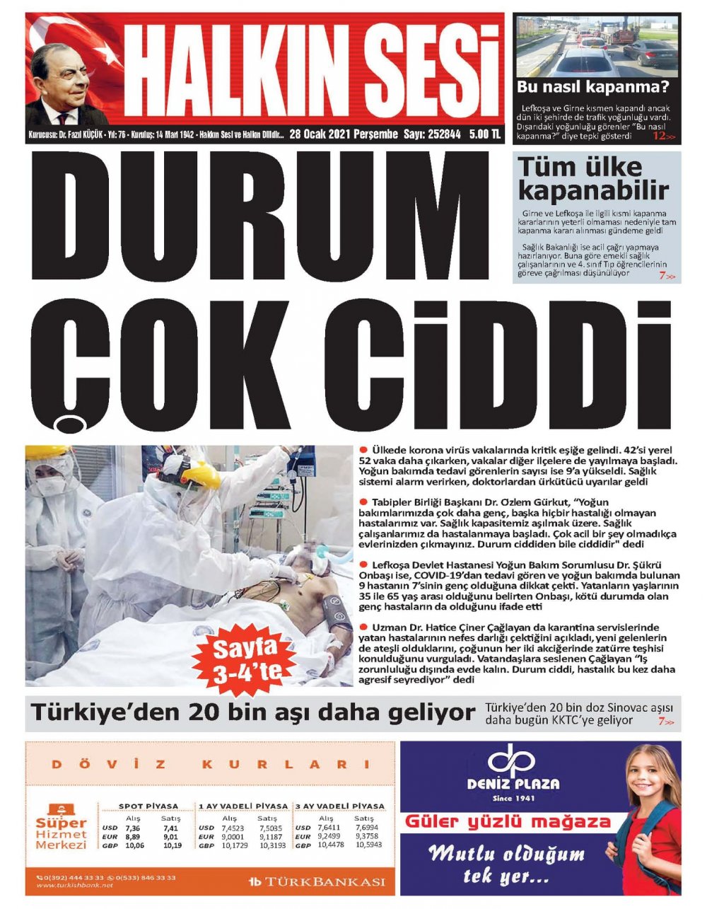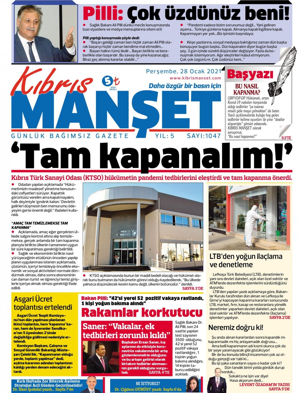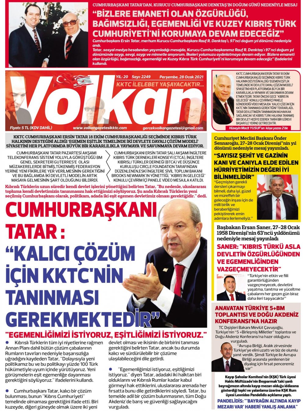28 Ocak 2021 tarihinde KKTC’de yayınlanan gazete manşetleri